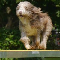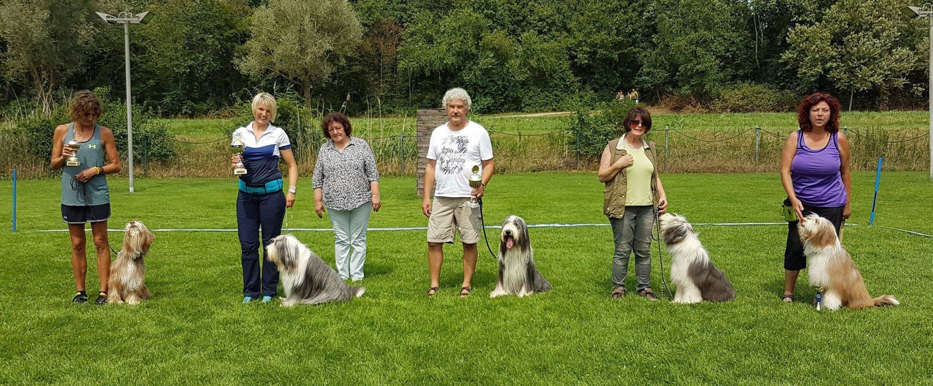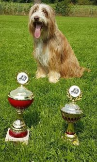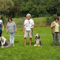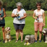 Schatzi Anthony hat den Senior Working Test bestanden. Sein Fanclub stand geschlossen hinter ihm, hat mitgefiebert, mitgelitten und mitgefreut. Wir sind so stolz auf das Chaoten-Team Heike und Anthony :-) Tja und mit was wir gar nicht gerechnet hätten... Easy wurde nicht nur "Best Veteran in Show" sondern auch schnellster Beardie! Mit ihren 9,5 Jahren hat sie um die 18 Beardies abgezogen. Sie ist und bleibt einfach verrückt, die kleine Maus. Zweiter wurde Aine´s Onkel Duke und dritter Onkel Alistair, der immerhin auch schon 9 Jahre alt ist. Beim Agility-Fun-Turnier konnte Aine den A-Lauf gewinnen, Mama Pebbles wurde Zweite und Tante Maddie gewann den Jumping.