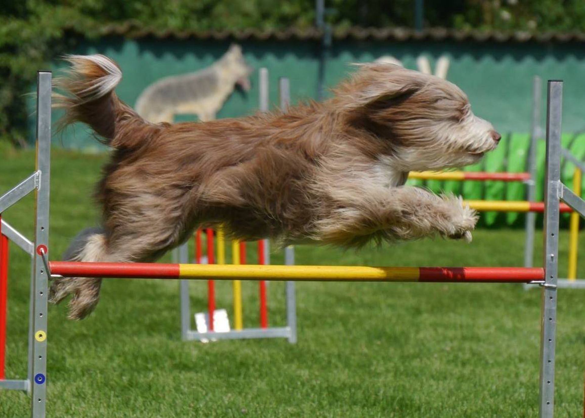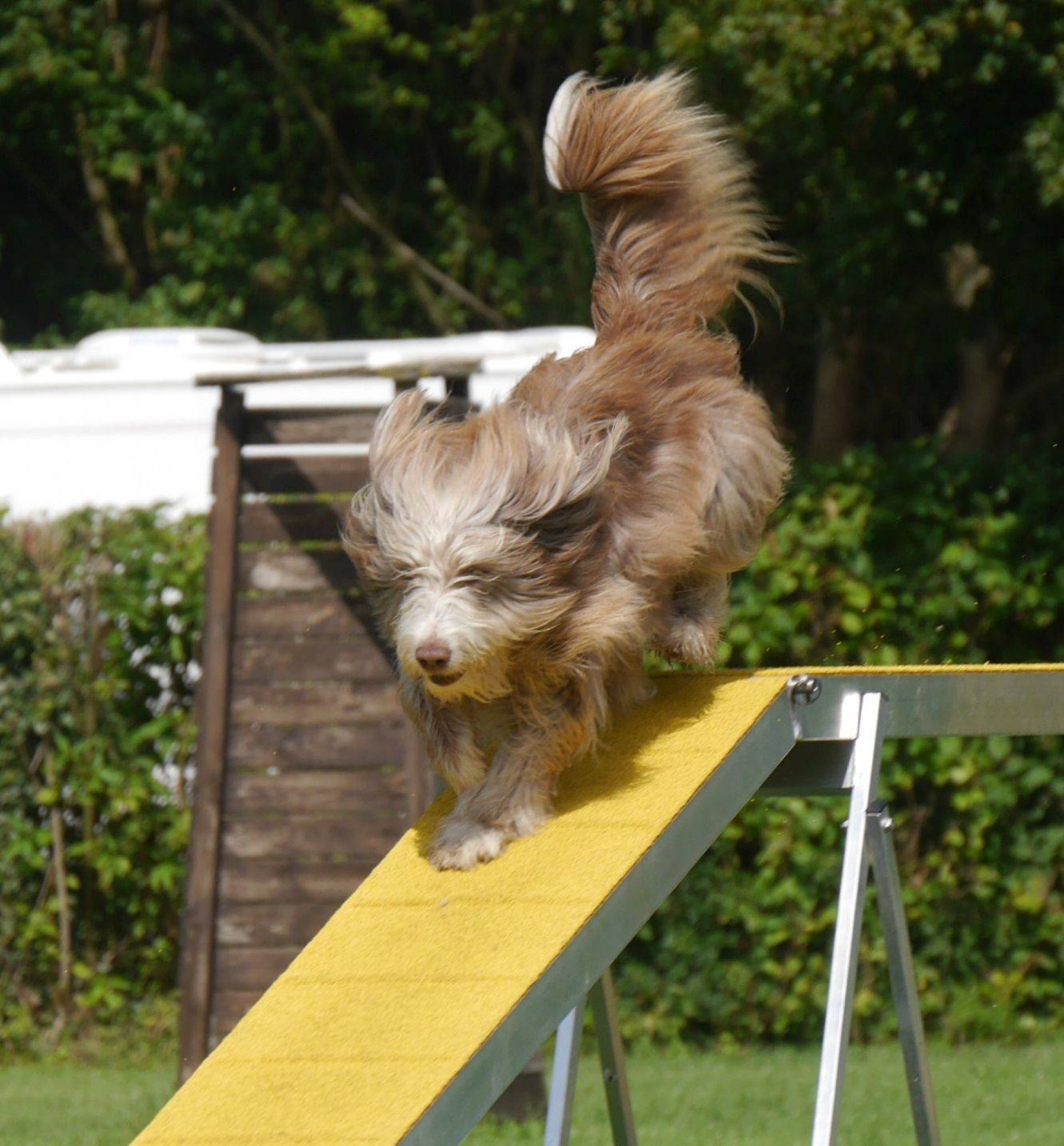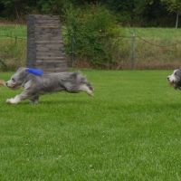 Am Sonntag ging es dann mit dem Agility-Fun-Turnier los. Es waren 15 Hunde gemeldet (!). Ein Wahnsinn, wenn man überlegt, dass ich auf den Turnieren im Umkreis so gut wie keinen Beardie treffe. Danach, erstmals neu im Programm, ging es mit Ralley Obedience und Longieren weiter, was rießigen Anklang fand. Wir überlegen, ob wir dazu nächstes Jahr nicht auch ein Seminar anbieten. Es ist wirklich schön zu sehen, wie vielseitig unsere Beardies sind und mit was für einem Spass sie dabei sind.