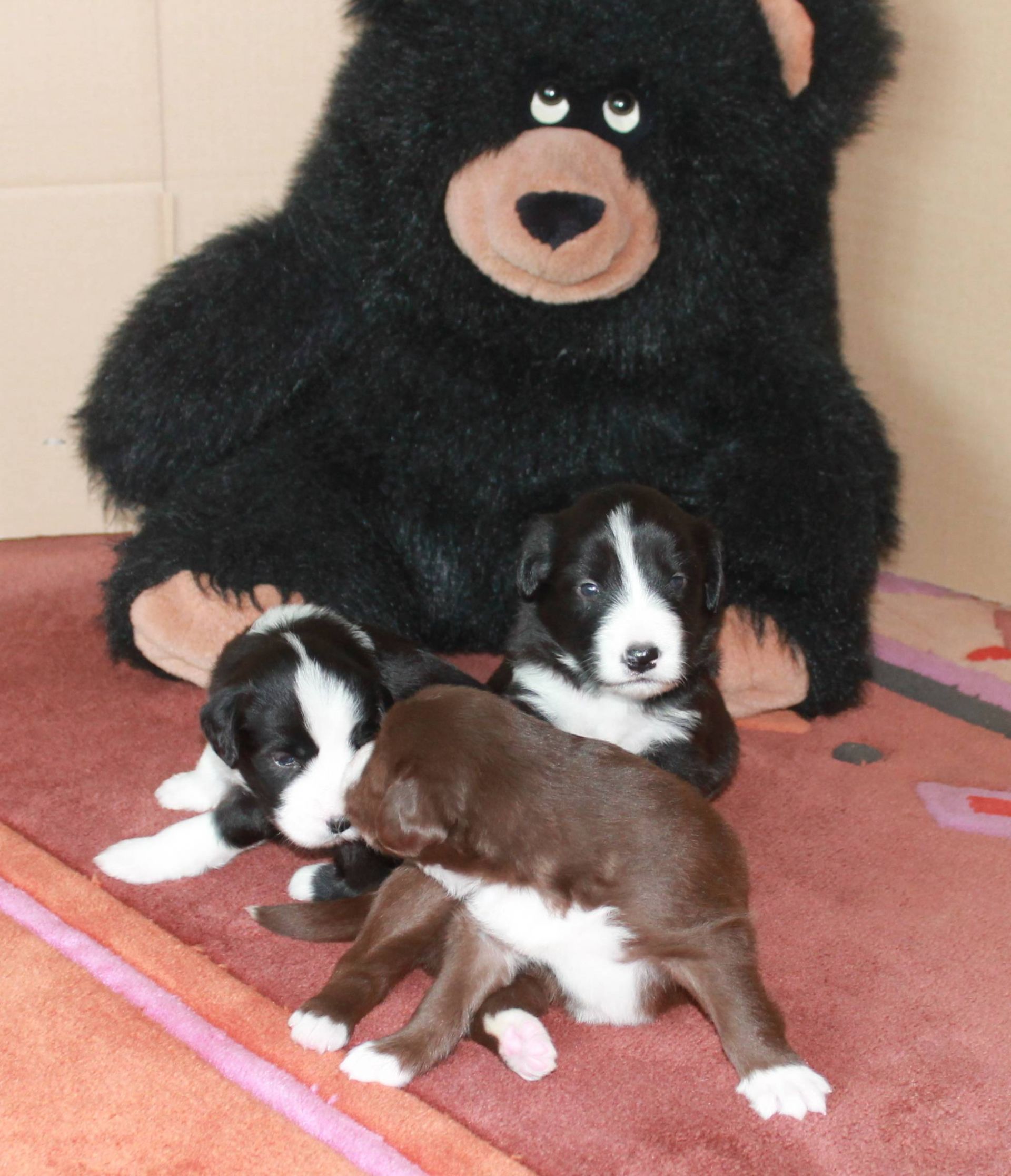 Seit die Augen offen sind, wird es lebhafter in der Kiste. Es geht einem jedes Mal das Herz auf, wenn sie aktiv auf einen zugewackelt kommen :D Das sind alle drei richtige Schmusebären.