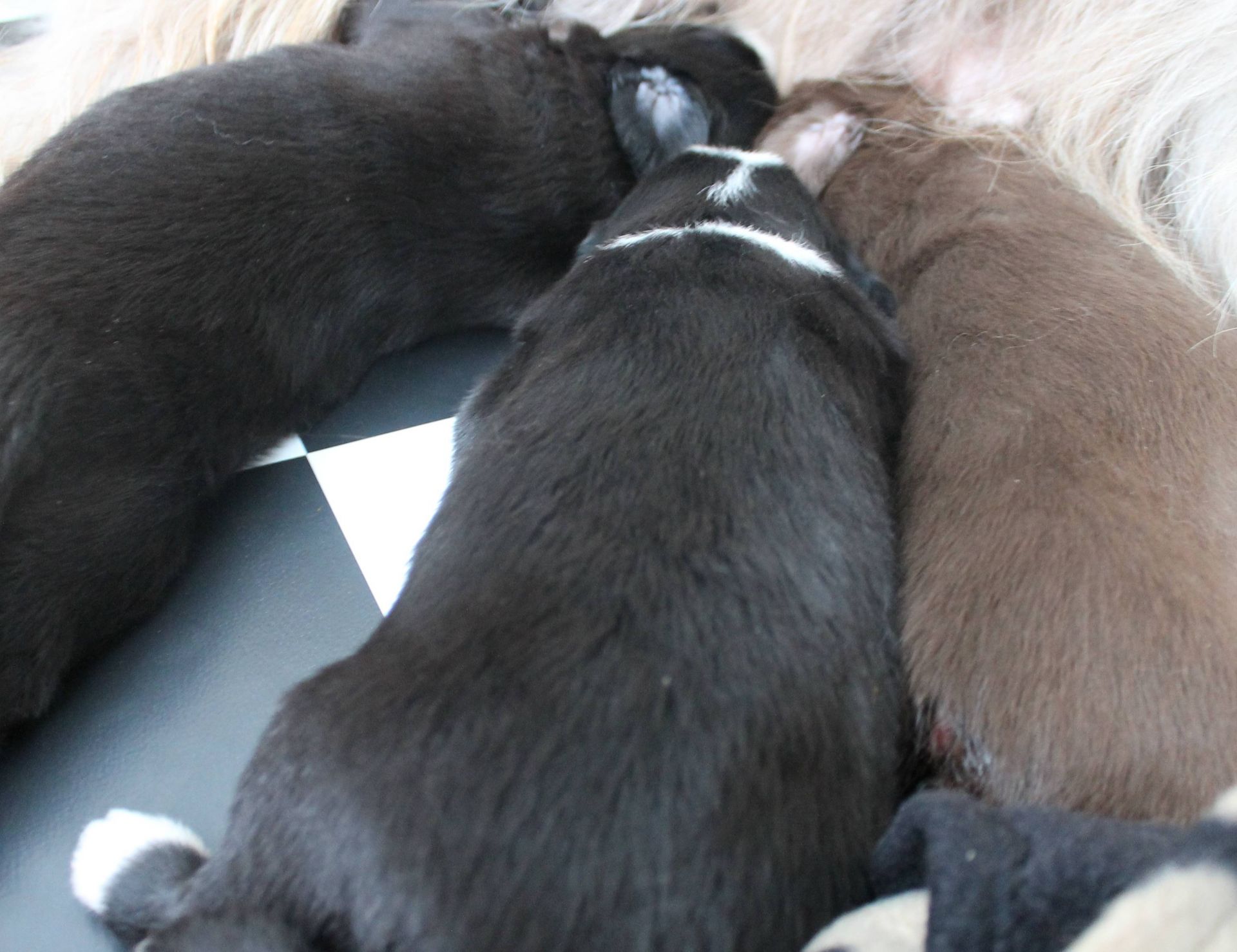 Die Babies haben sich alle mehr als verdreifacht :D Auch die kleine Ylvie hat die 1.000ender Marke geknackt. Momentan nimmt sie am meisten zu aber keine Ahnung, wie sie das macht. Schleicht sich immer heimlich an die Zitze :D
