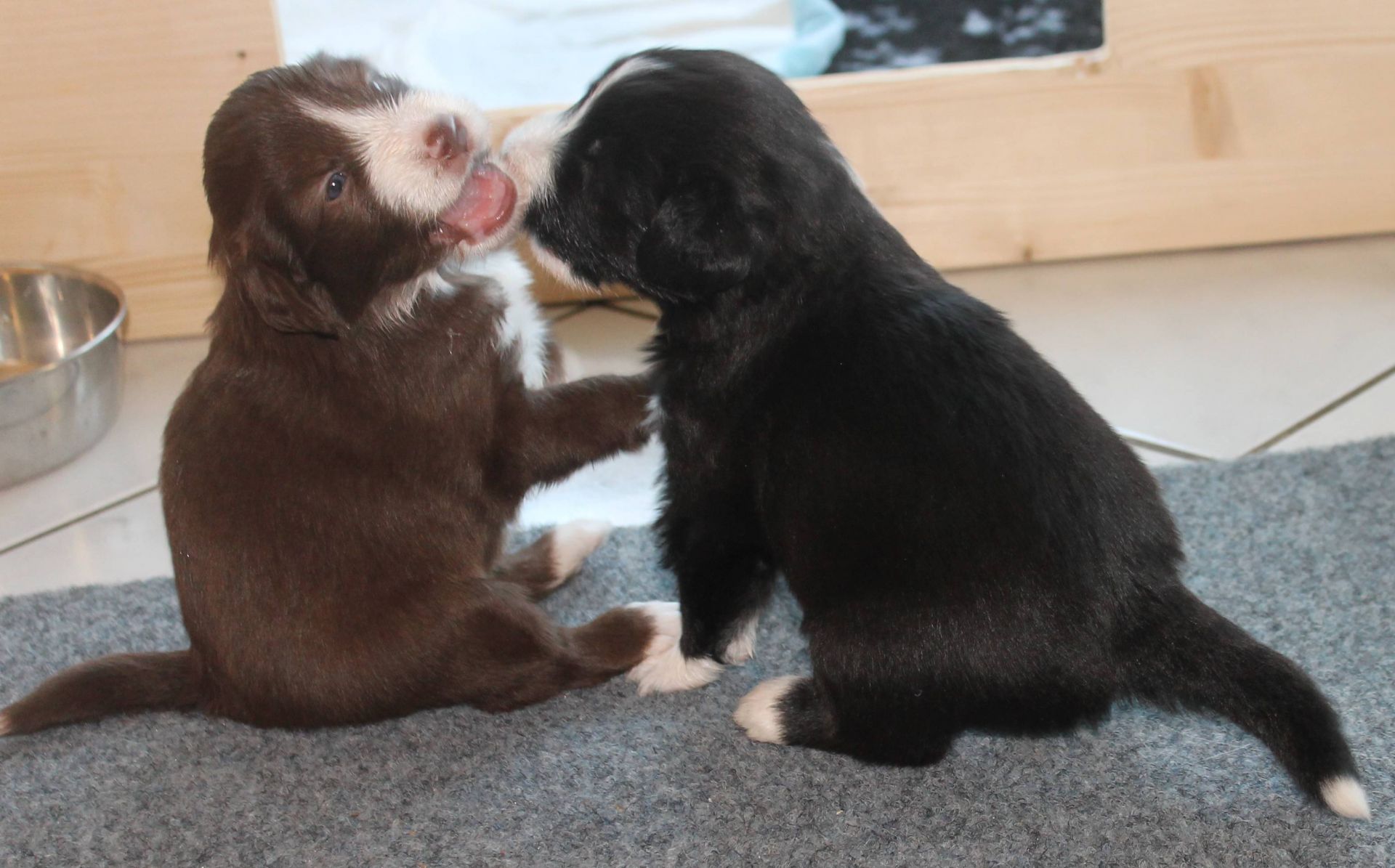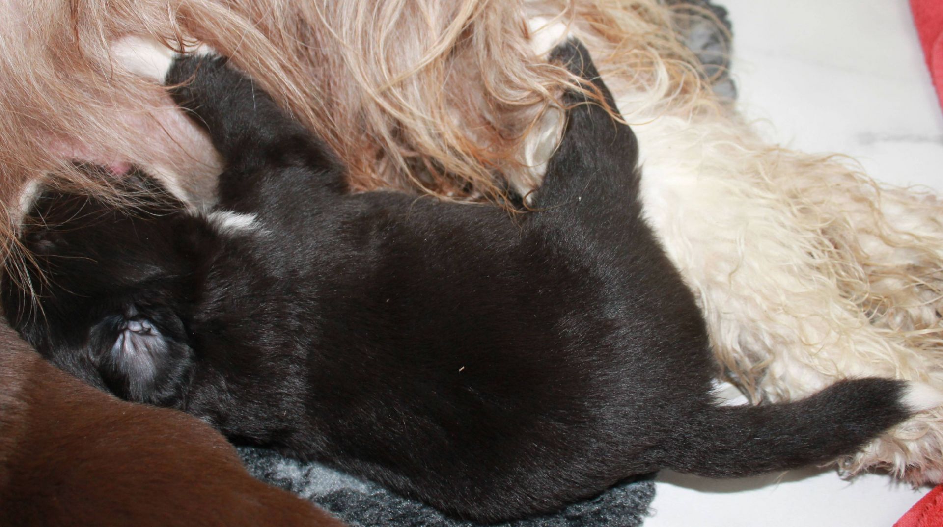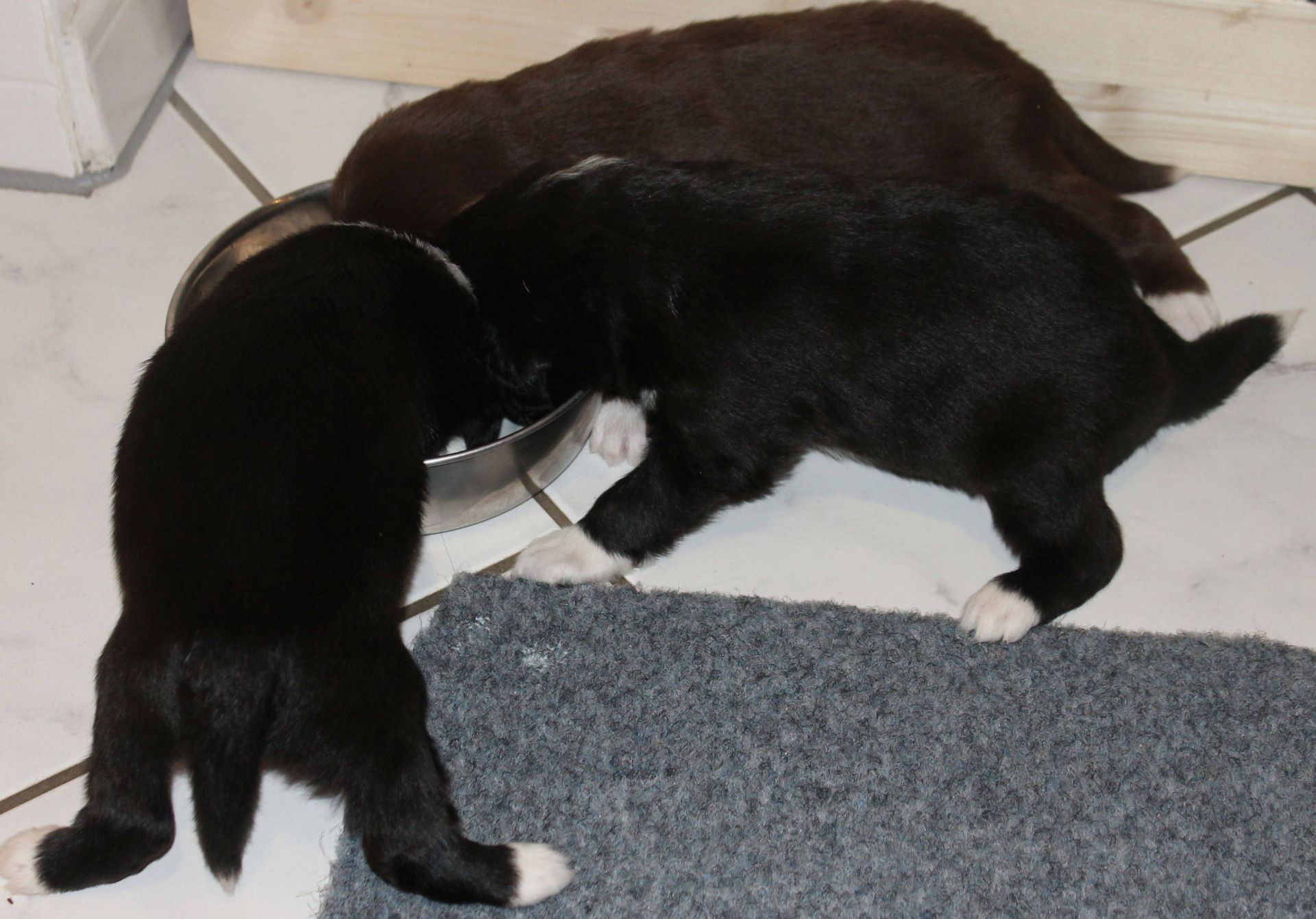 Sie haben heute auch gelernt, wie man aus dem Napf trinkt. Die Mama mag nämlich nicht mehr. Die Zähne brechen durch und meine Prinzessin auf der Erbse ist da sehr empfindlich.