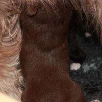 Irgendwie haben die Babies heute eine Zitze vergessen. Beim Abduschen hab ich entsetzt bemerkt, dass eine Zitze sehr dick und geschwollen war. Also abtrinken lassen. Eigentlich hab ich Anthony dafür vorgesehen, weil er ja der kräftigste ist aber dem war das zu anstrengend. Die kleine Ylvie hat ihre Mama dann erlöst :-) Und es hat sich gelohnt. Das waren auf einen Schlag 70 g :D