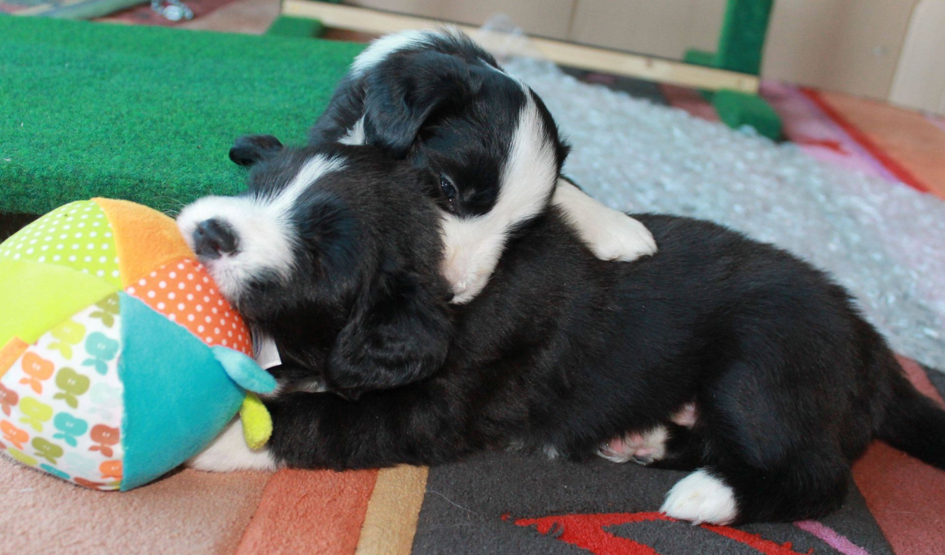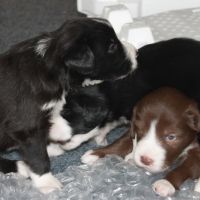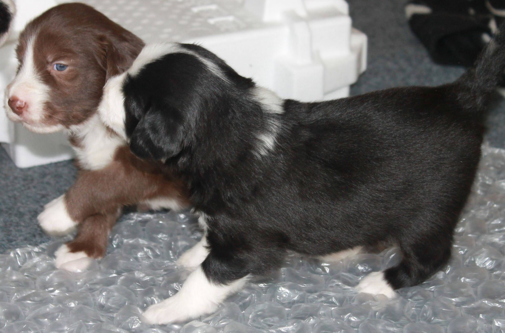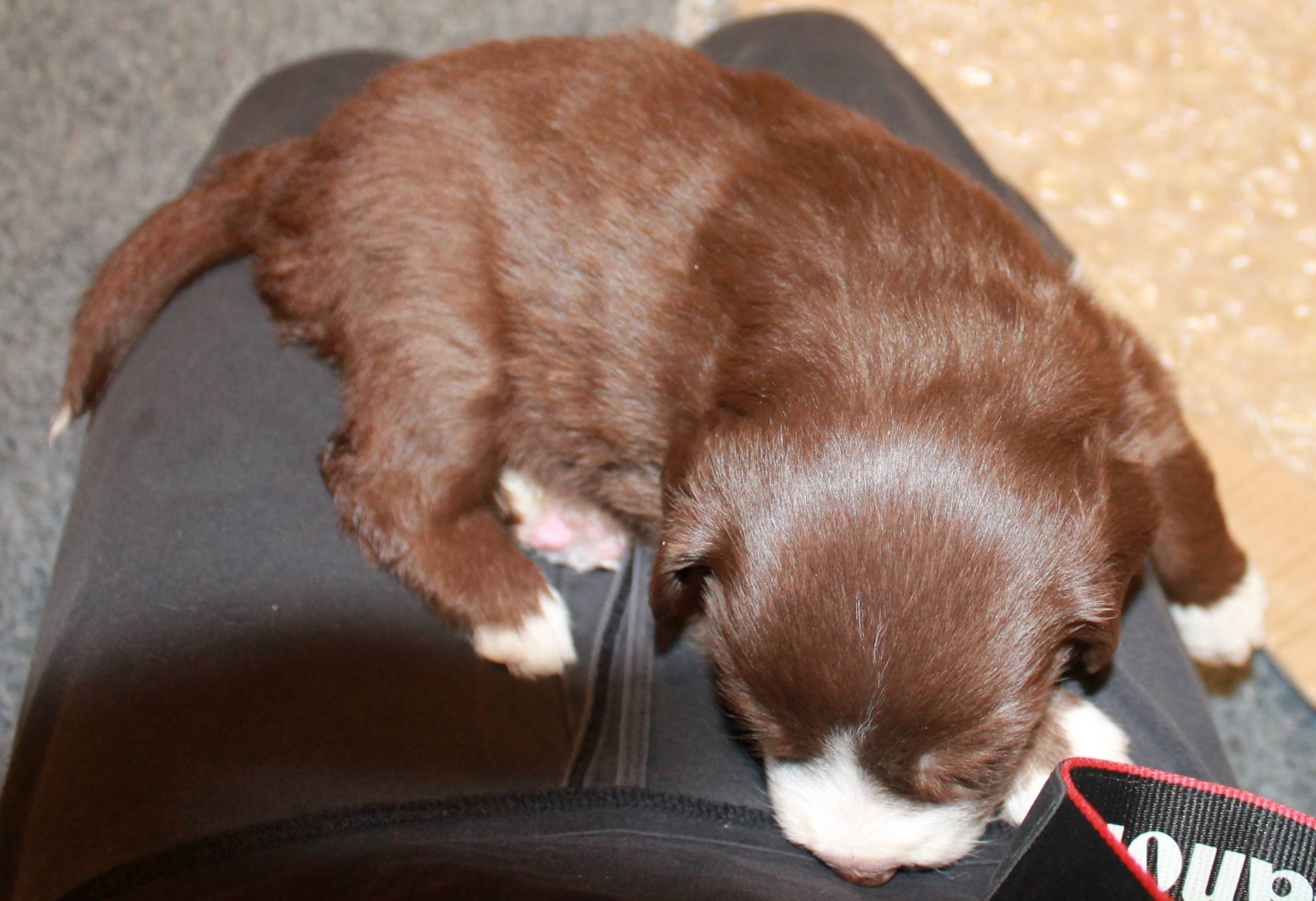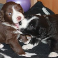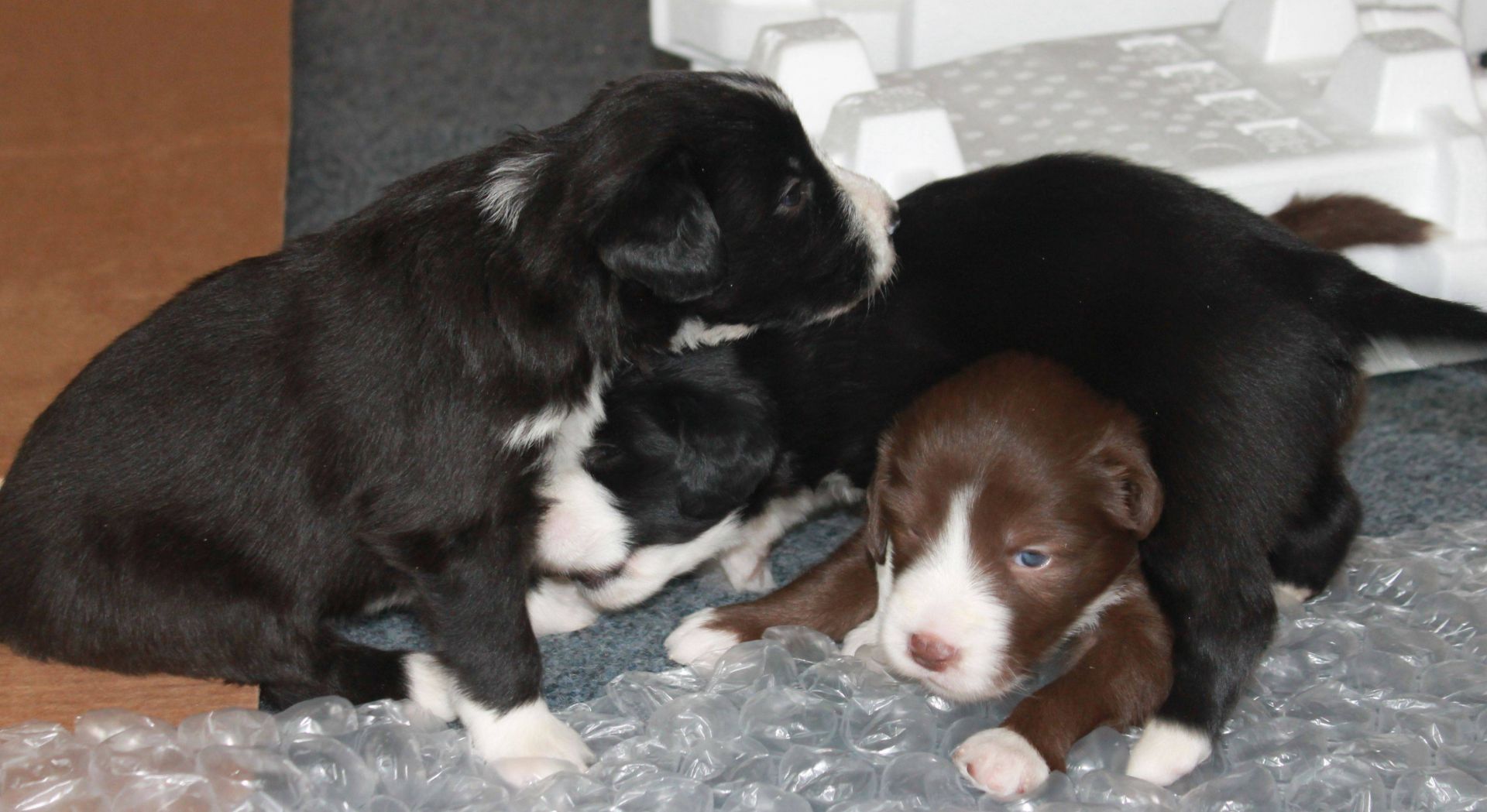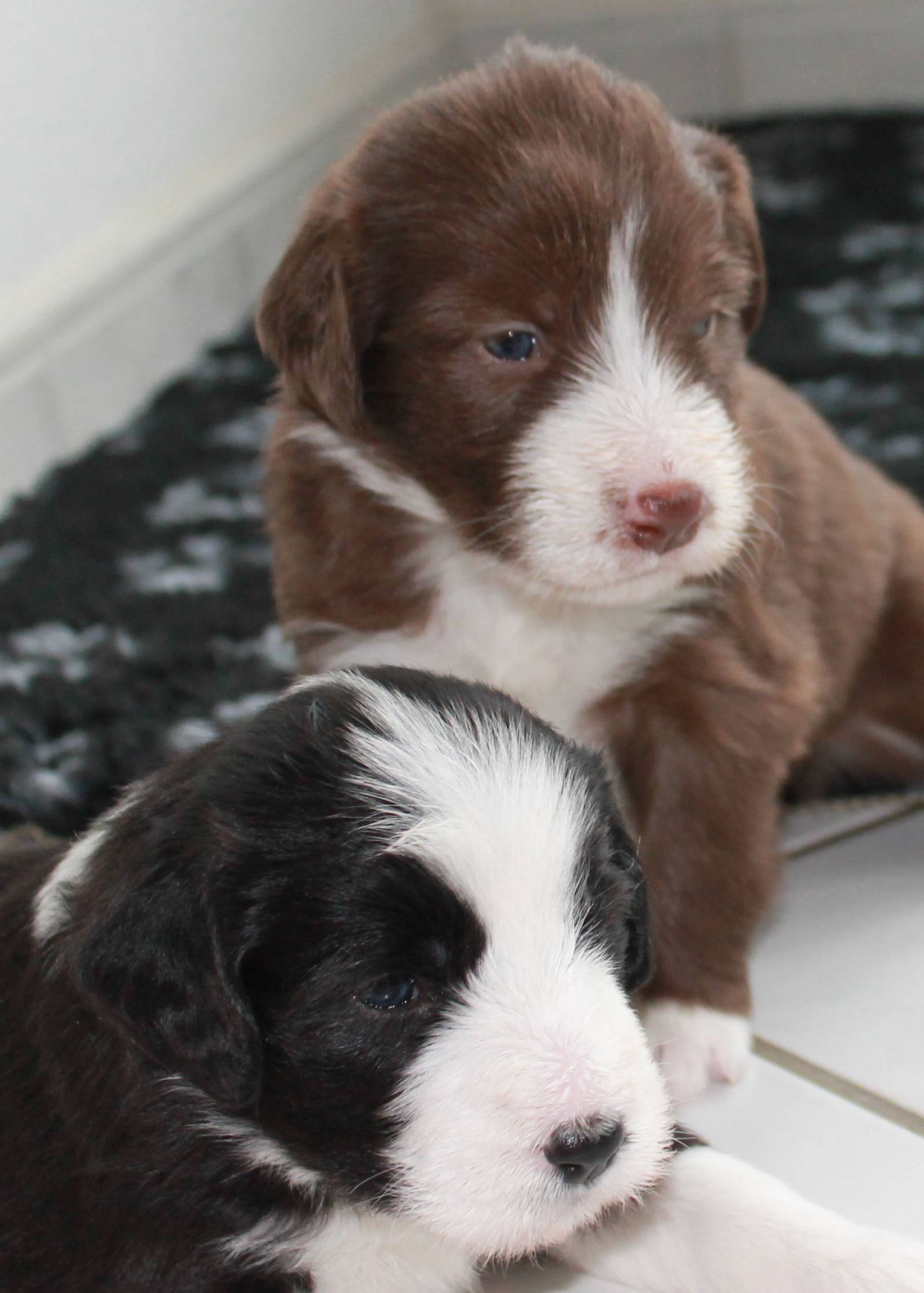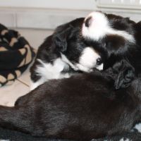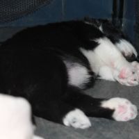 Heute hatten wir nochmal eine Premiere - Easy durfte zum ersten Mal zu den Welpen. Ok, ich musste Pebbles ein bisschen daran erinnern, dass sie nicht die Weltherrschaft hat :D Als das geklärt war, lag Easy im Auslauf und Pebbles draussen und hat ganz entspannt geschlafen. Easy fand die Welpen allerdings ein bissle gruselig, vorallem als sie andocken wollten.