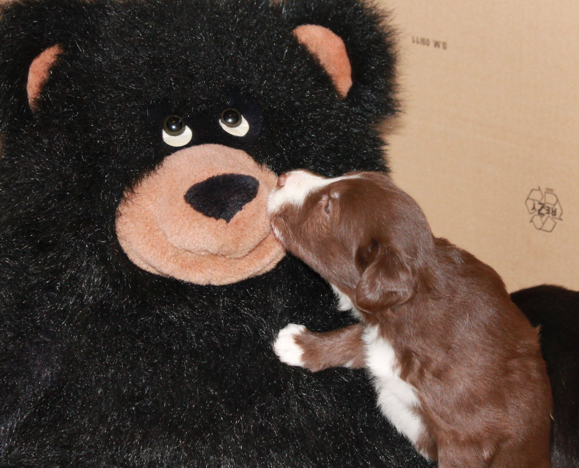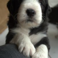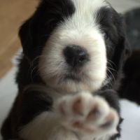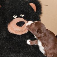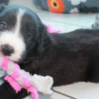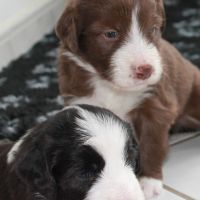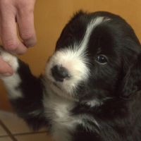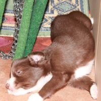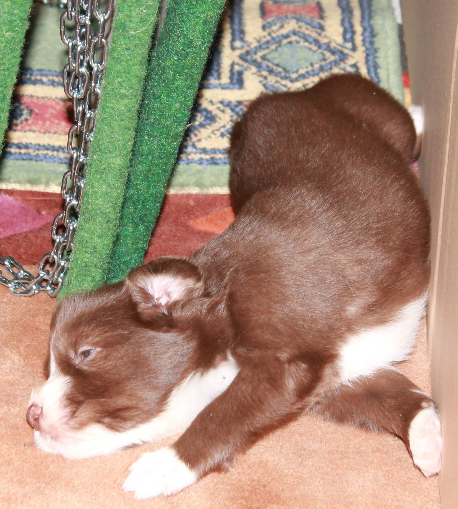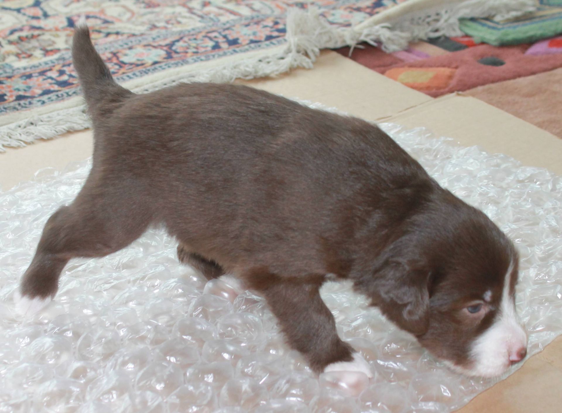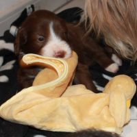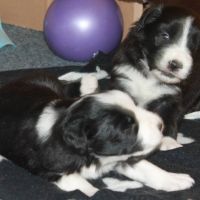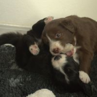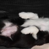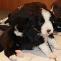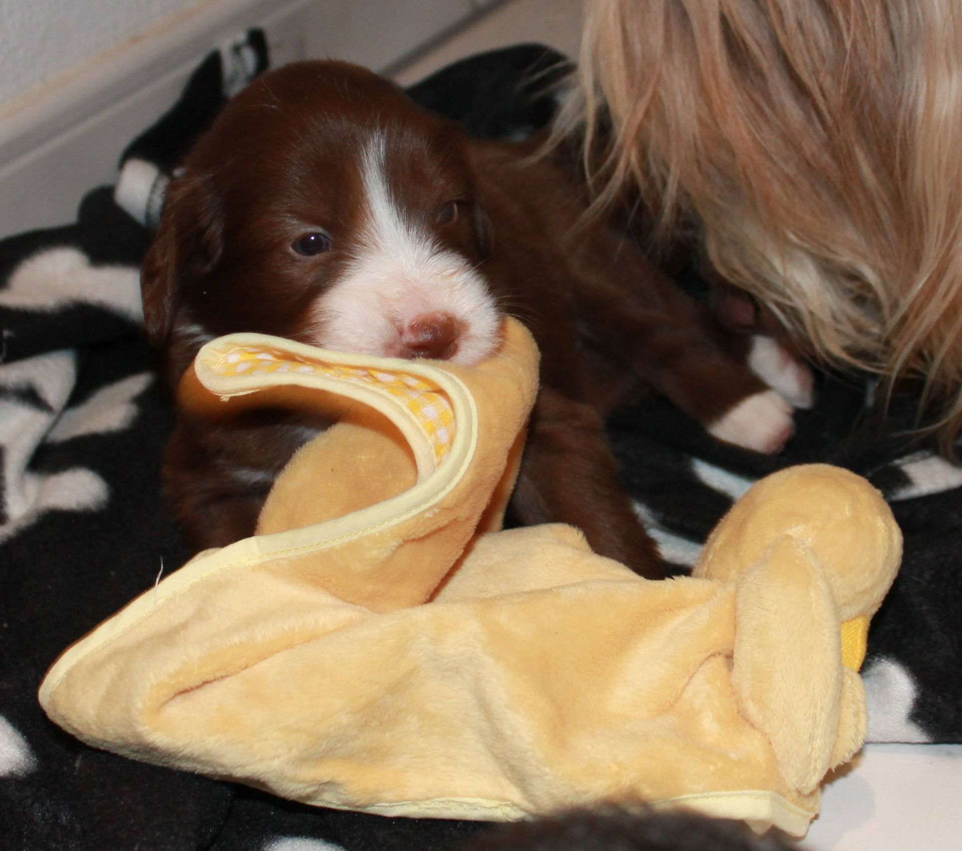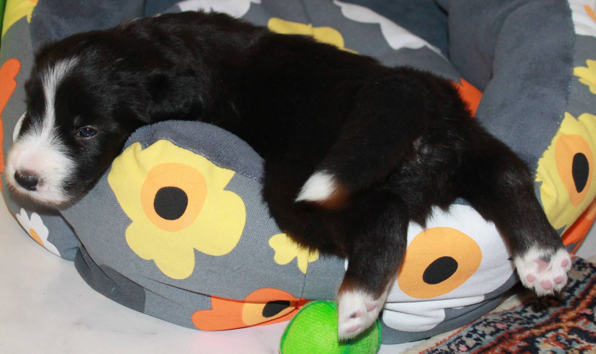 Heute hatten wir nochmal eine Premiere - Easy durfte zum ersten Mal zu den Welpen. Ok, ich musste Pebbles ein bisschen daran erinnern, dass sie nicht die Weltherrschaft hat :D Als das geklärt war, lag Easy im Auslauf und Pebbles draussen und hat ganz entspannt geschlafen. Easy fand die Welpen allerdings ein bissle gruselig, vorallem als sie andocken wollten.