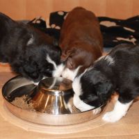 Die Babies haben heute ihren ersten Brei (Mix aus Trockenfutter und Ziegenmilch) inhaliert. Sprich, es hat ihnen sehr geschmeckt :D Und sie haben sogar sehr manierlich gegessen.