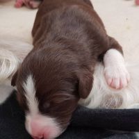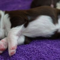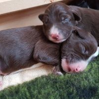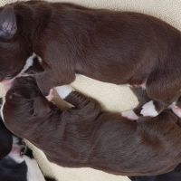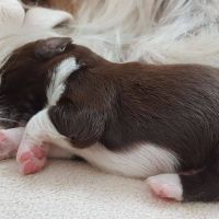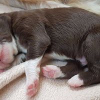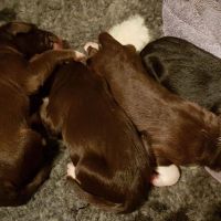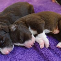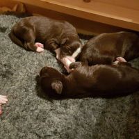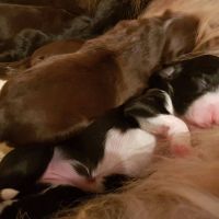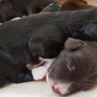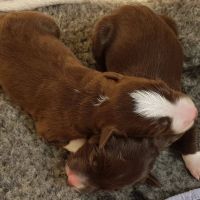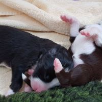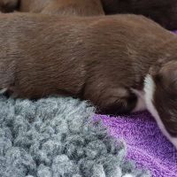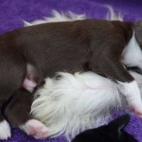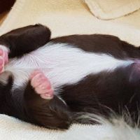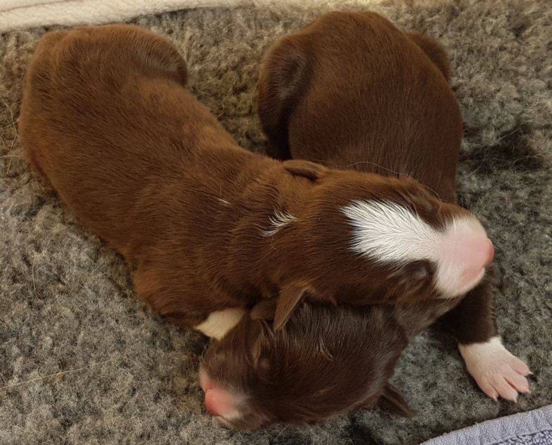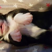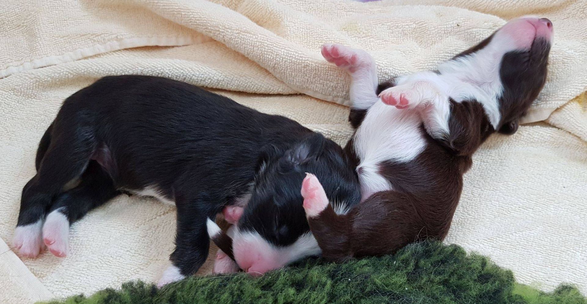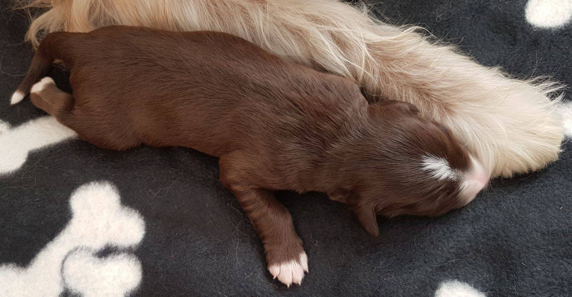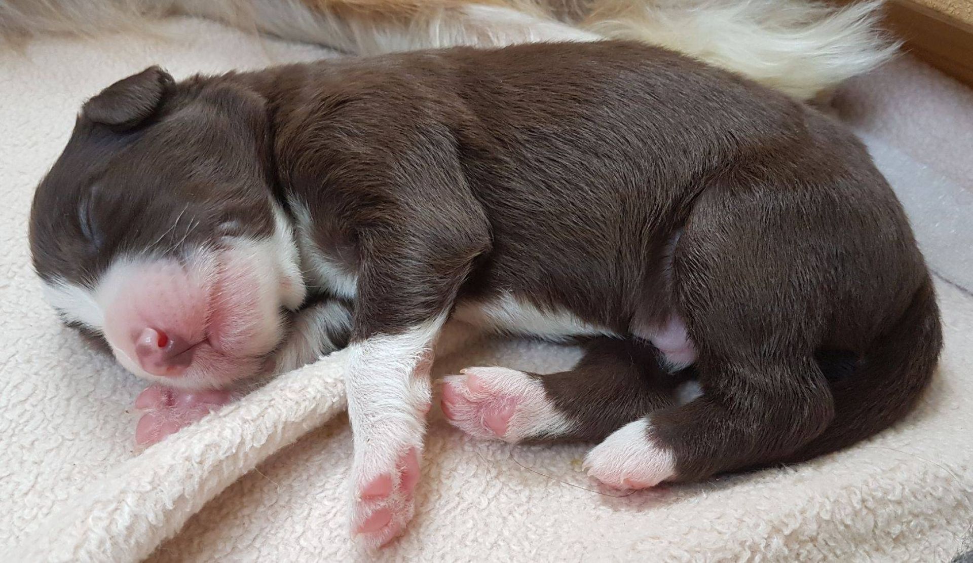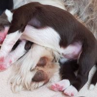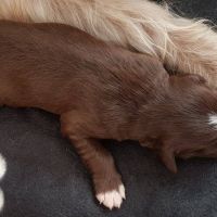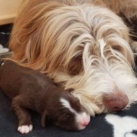 Die Aine ist so eine supercoole Mama, ich kann das kaum in Worte fassen. Die ersten drei Tage hat sie die Wurfbox gar nicht verlassen. Die Welpis waren rund um die Uhr am Trinken, was man an ihren tollen Gewichten sieht. Gestern Nacht lag sie dann plötzlich in meinem Bett, natürlich immer mit einem Auge auf die Box aber sie hat die Welpen jetzt schon alleine gelassen. Wenn sie dann der Meinung war, jetzt müssen die Babies mal wieder was trinken, ist sie rein, hat gefiept und die Welpis kamen quasi auf Pfiff alle angerobbt. Ich könnte da jedesmal dahinschmelzen. Sie legt jetzt schon fest, wann getrunken wird und wann nicht. Die Abstände werden größer. Sie macht das einfach so souverän und sicher, es ist unglaublich.