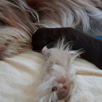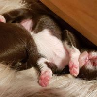 Heute morgen ging sie dann noch einen Schritt weiter, sie wollte unbedingt mit zum Gassi. Also gut, eine viertel Stunde liegt wohl drin, sie war so glücklich, dass sie wieder rennen konnte und Pebby und Easy um sich hatte. Es ist unfassbar, dass sie gerade mal vor 3 Tagen eine so schwere Geburt hinter sich gebracht hat. Kaum daheim, musste sie aber unbedingt zu ihren Babies und da liegt sie jetzt seit 1,5 Stunden.