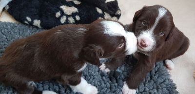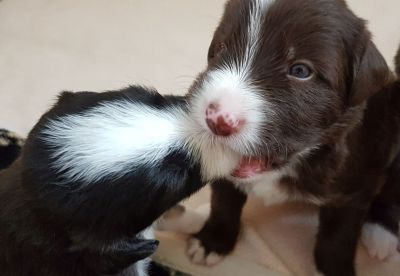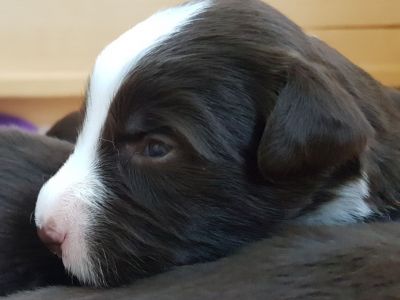 Das selber pinkeln und k....en klappt seit zwei Tagen auch selbständig... weder Aine noch ich kommen hinterher :-) Und es wird zunehmend lebhafter in der Box. Sie haben das Knurren, Bellen und Spielen entdeckt. Nach jedem Säugen ist erst Mal Action angesagt, bis sie nach 5 Minuten umfallen :-)