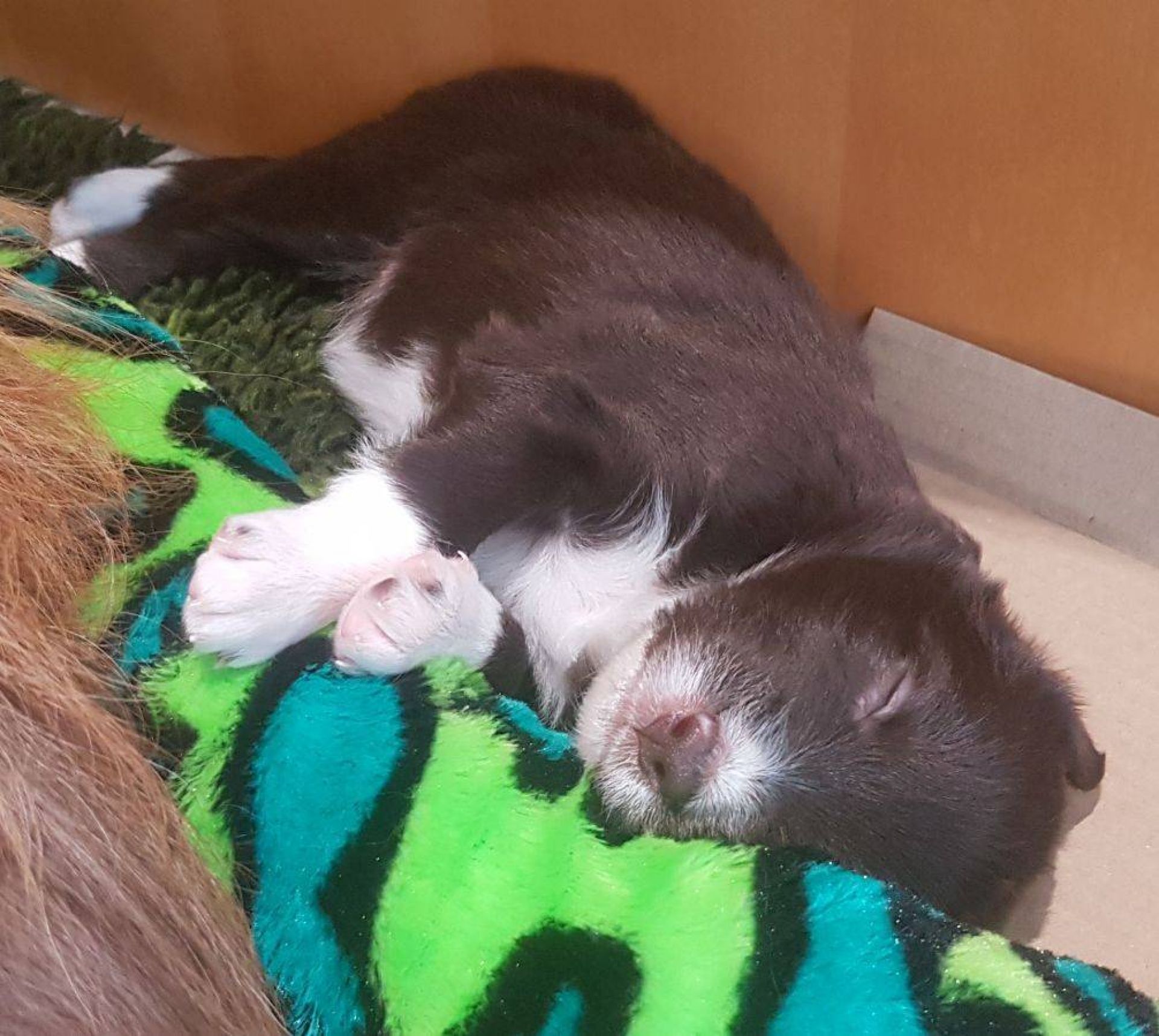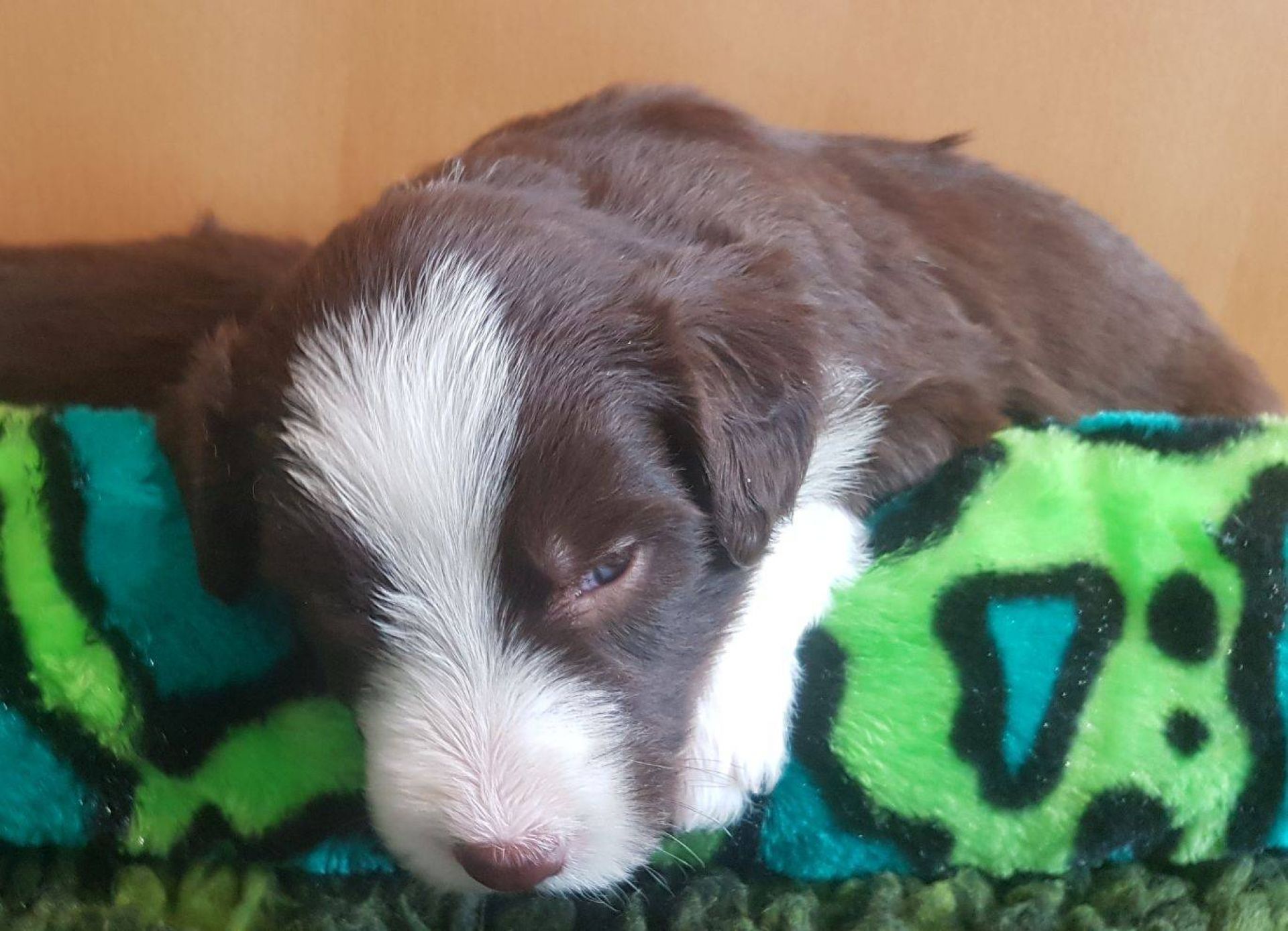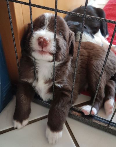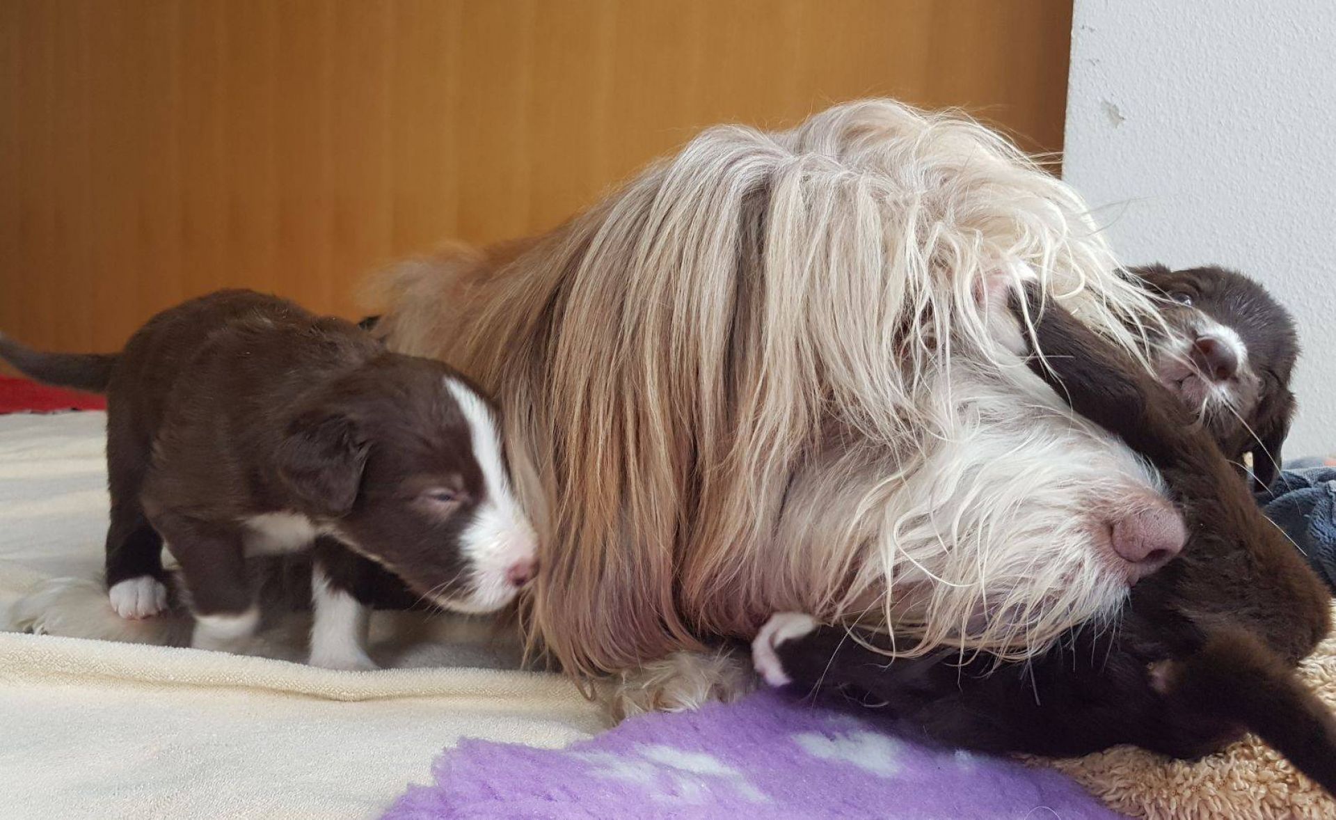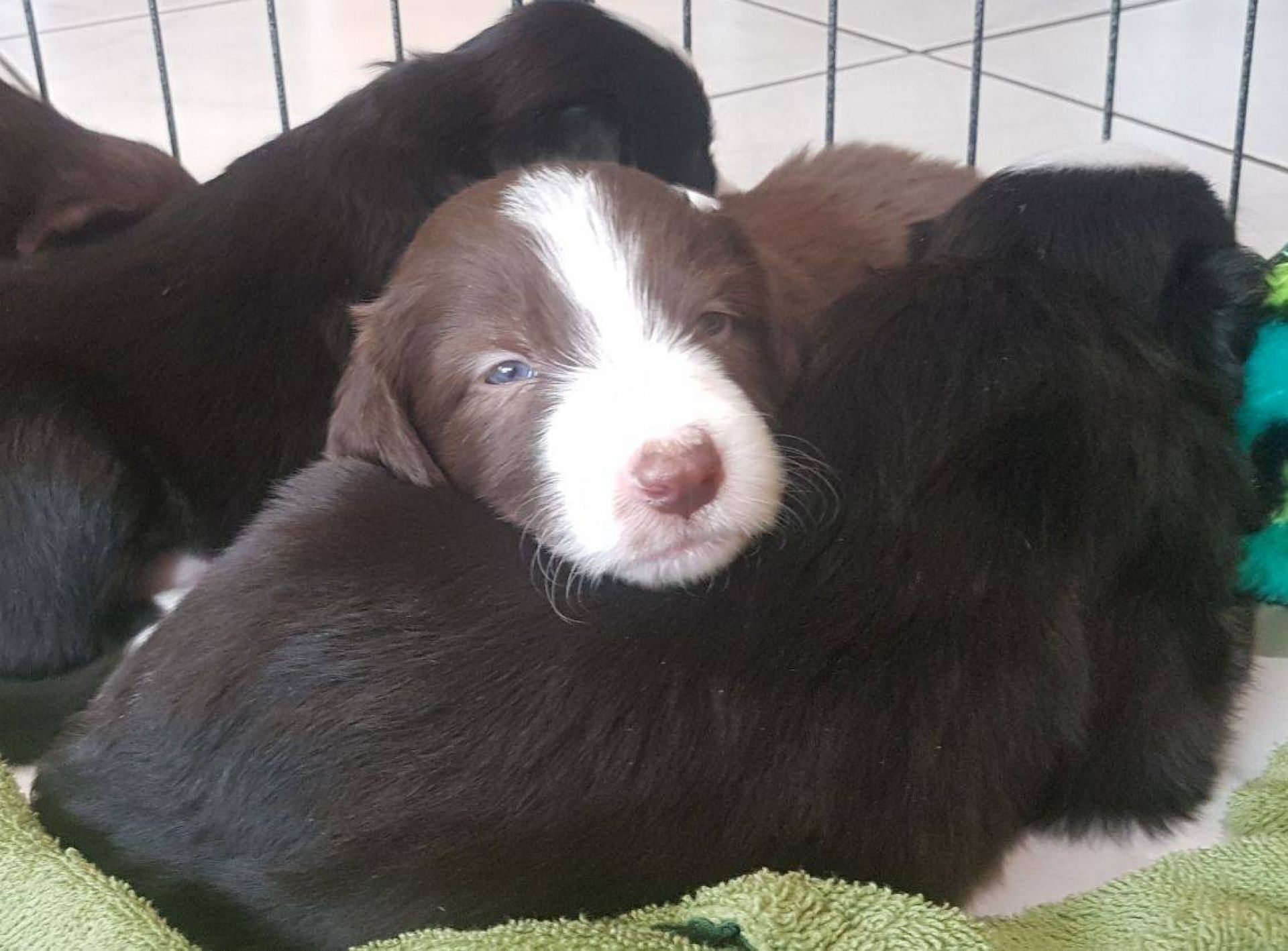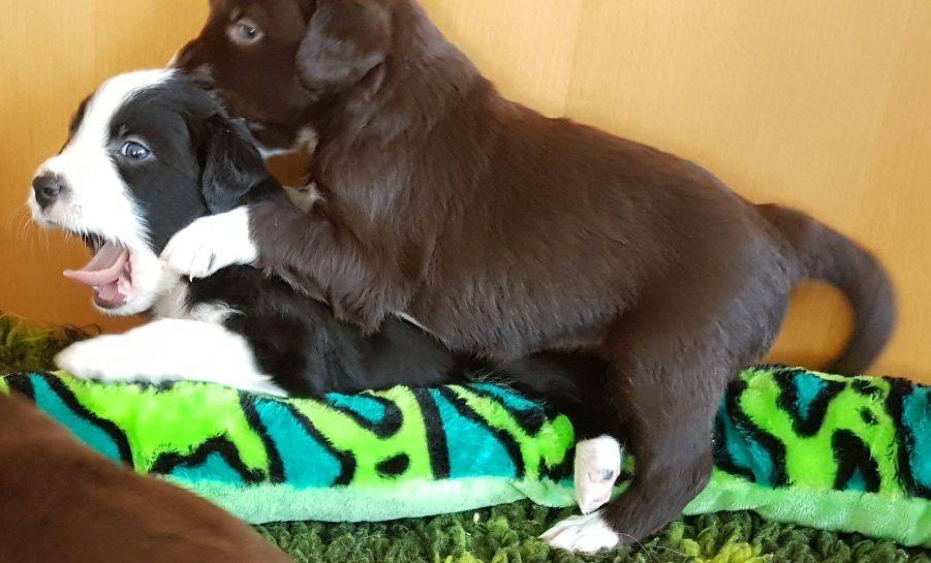 Heute ging es zum ersten Mal in den Auslauf im Esszimmer, den wir zunächst vorsorglich halbiert haben, da er im Vergleich zur Wurfbox riesig ist. Das Geschrei war auch anfänglich sehr groß. Die Nachbarn haben bestimmt gedacht, jetzt haben die auch noch einen Vogel bzw. eher eine Vogelschar. Sie haben in den höchsten Tönen gezwitschert. Auch Aine war kurz überfordert, weil sie am liebsten alle Babies um sich gehabt hätte, die aber alle in eine andere Richtung losgewandert sind. Alle waren dann sehr glücklich als sie sich wieder gefunden haben. Jetzt schlafen sie ganz friedlich. Witzigerweise komplett am anderen Ende als der A-Wurf :-)