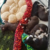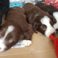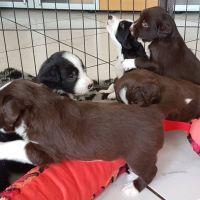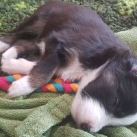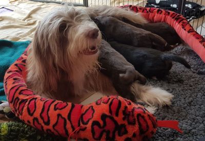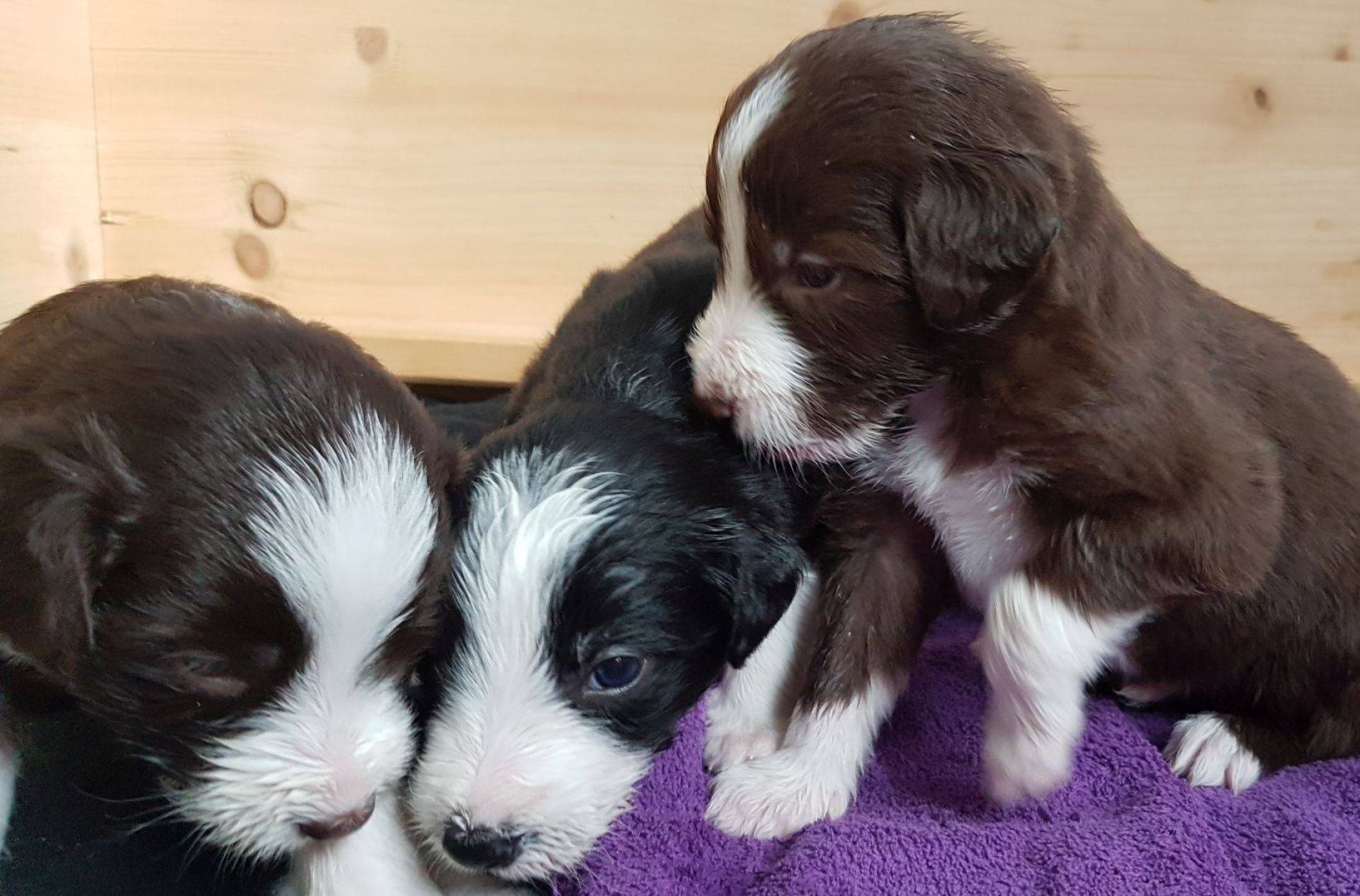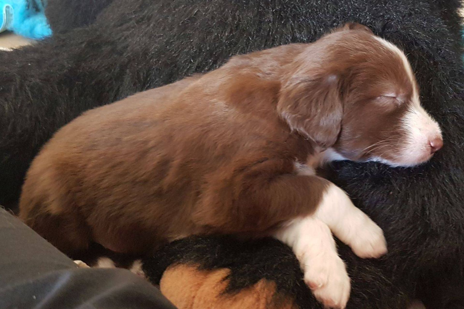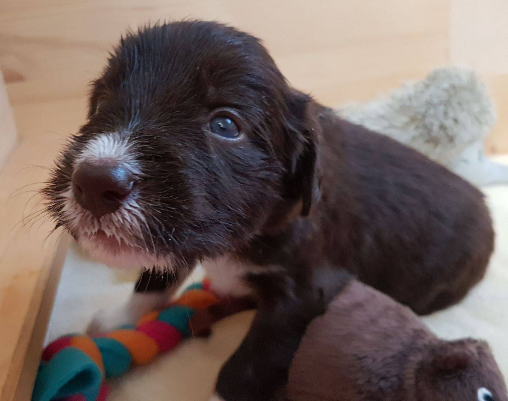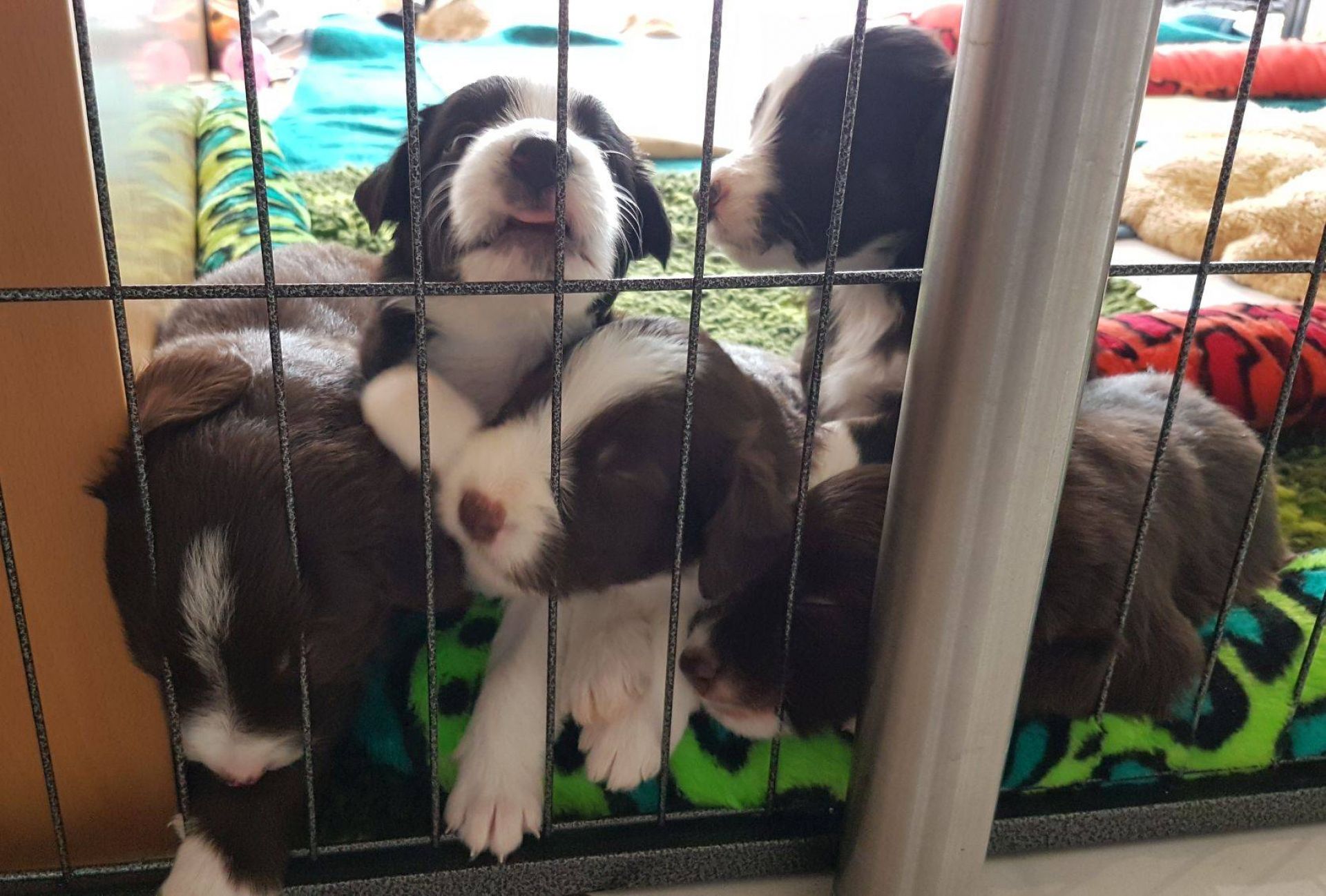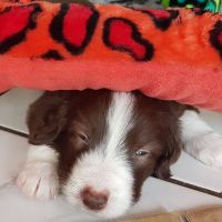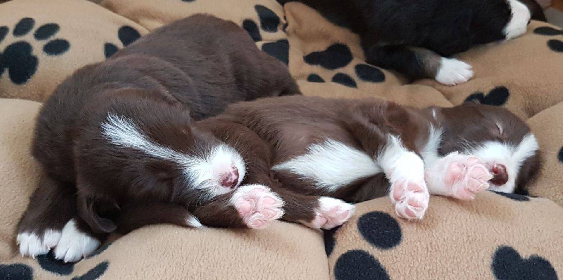 Heute ging es zum ersten Mal in den Auslauf im Esszimmer, den wir zunächst vorsorglich halbiert haben, da er im Vergleich zur Wurfbox riesig ist. Das Geschrei war auch anfänglich sehr groß. Die Nachbarn haben bestimmt gedacht, jetzt haben die auch noch einen Vogel bzw. eher eine Vogelschar. Sie haben in den höchsten Tönen gezwitschert. Auch Aine war kurz überfordert, weil sie am liebsten alle Babies um sich gehabt hätte, die aber alle in eine andere Richtung losgewandert sind. Alle waren dann sehr glücklich als sie sich wieder gefunden haben. Jetzt schlafen sie ganz friedlich. Witzigerweise komplett am anderen Ende als der A-Wurf :-)