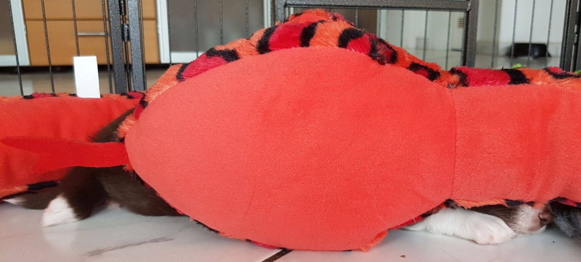 Eigentlich waren die Schlangen schon für die Wurfbox geplant. Die Babies lieben es, wenn sie sich irgendwo drankuscheln können. Nachdem aber das Kissen so gut ankam, wäre es ein bisschen voll geworden. Für den Auslauf sind die Schlangen super, weil sie den Bereich eingrenzen und den Babies dadurch Sicherheit geben. Als Stillkissen eignen sie sich aber auch gut :-)
