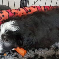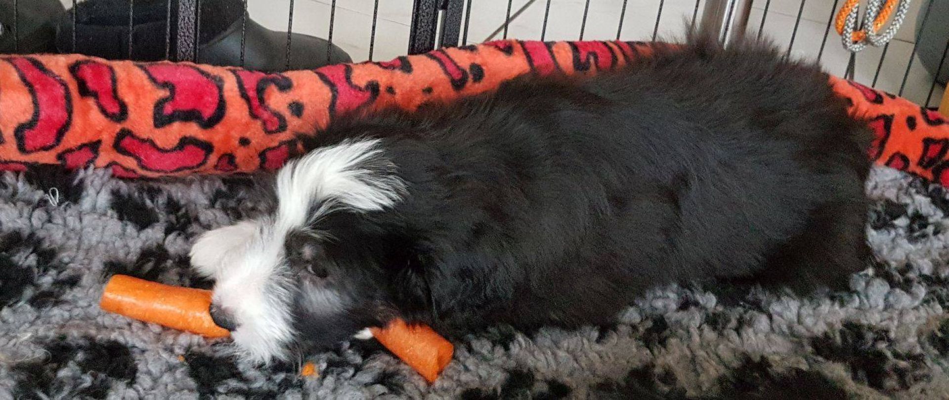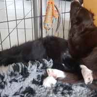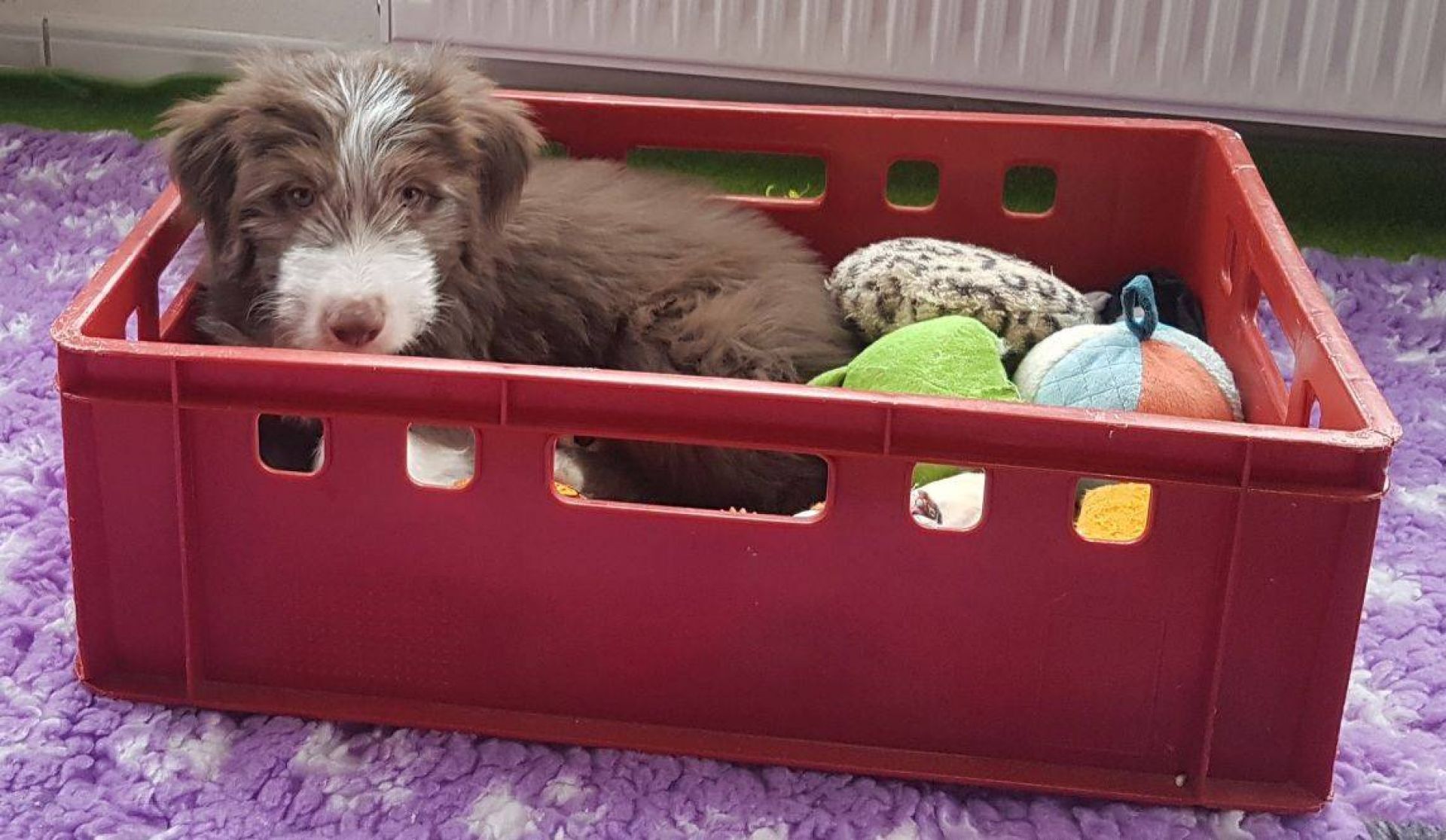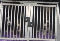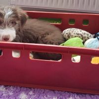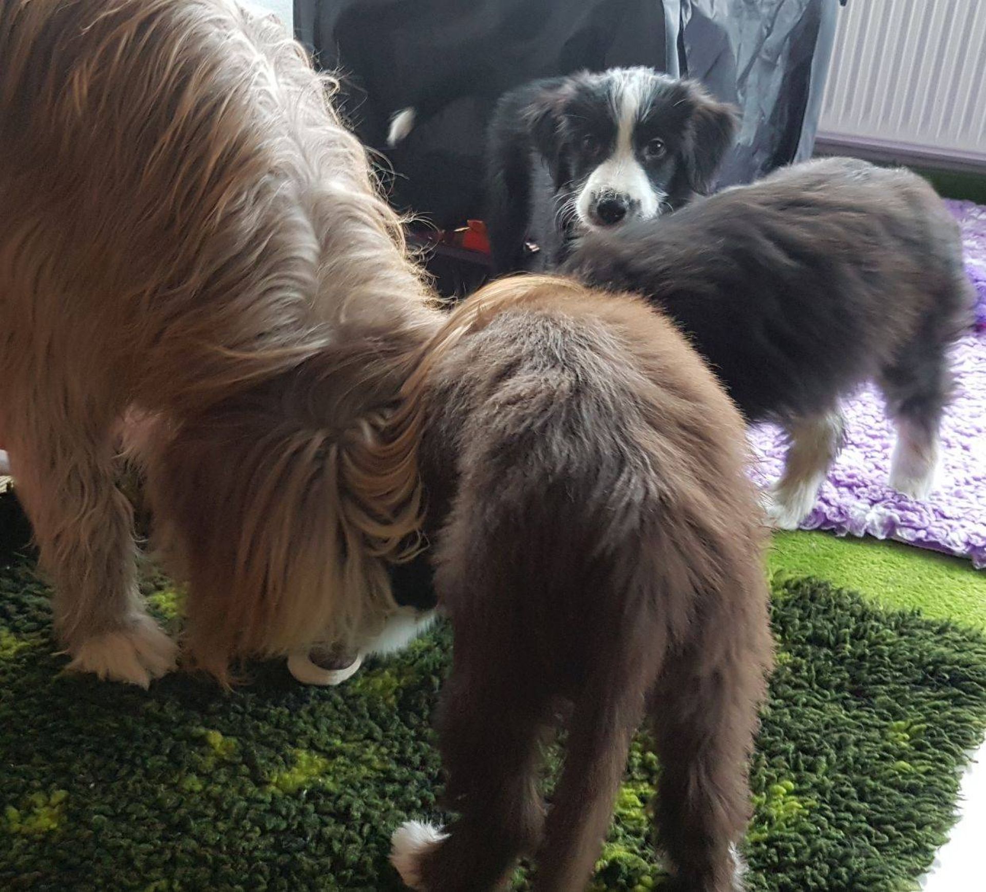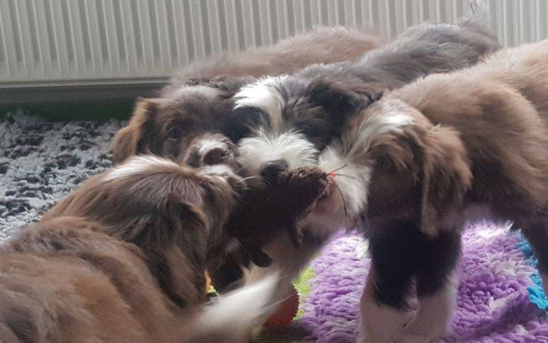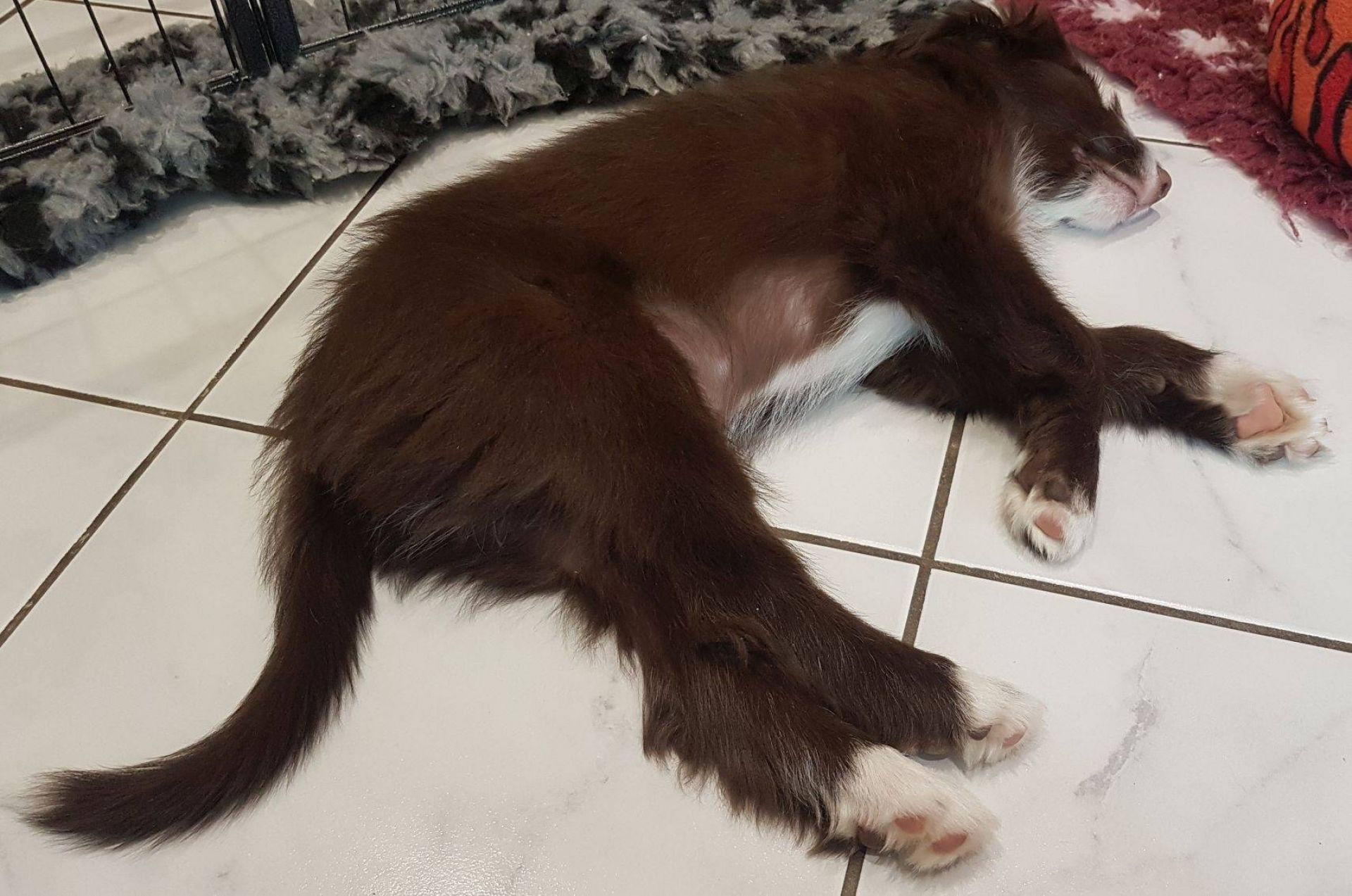 Heute habe ich leider nur ein Foto. Die Babies gingen auf ihre erste große Fahrt - zum Tierarzt. Super haben sie das gemeistert. Saßen ganz entspannt mit Aine in der Box und keiner hat gejammert. Auch beim Tierarzt waren sie so brav. Haben nebenher die Leckerlis gefressen, während sie geimpft und gechippt wurden. Kein Mucks war zu hören. Und jetzt tobt wieder der Bär. Weder das Impfen noch das Autofahren haben sie groß beeindruckt.