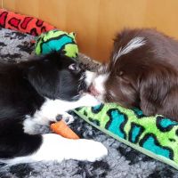 Oh je ich weiß, die Fotos werden gerade sträflich vernachlässigt aber irgendwie rennt die Zeit immer schneller davon. Heute war der Zuchtwart da und somit sind die Babies jetzt reisefertig. Am Freitag verlässt und schon Mini, am Samstag Beamy und Barmy und am Sonntag Boomer. Und für Brady muss schon jemand ganz besonderes kommen, damit wir ihn gehen lassen :-) Er ist so ein lieber Spatz. Es fällt uns sehr schwer.