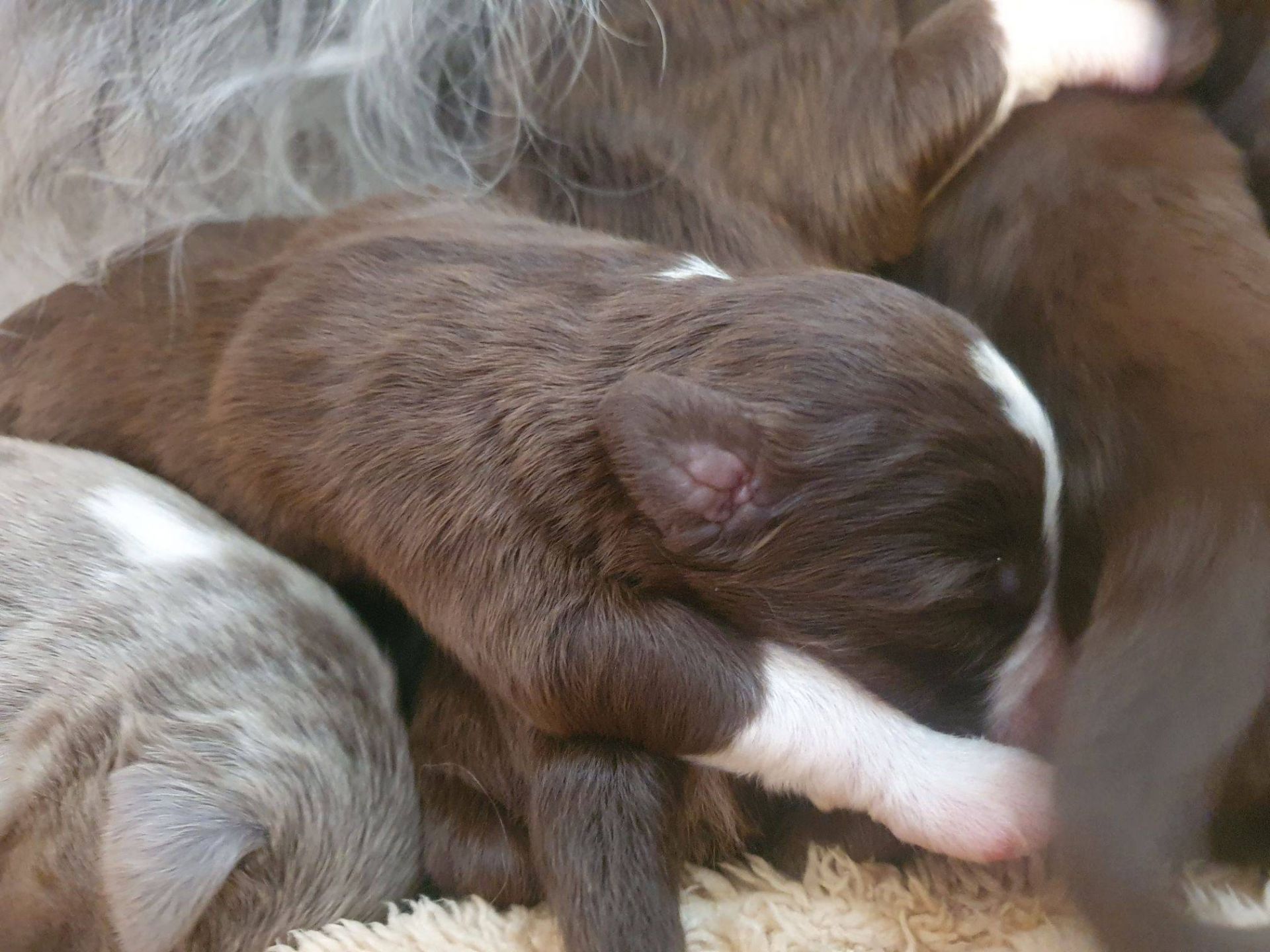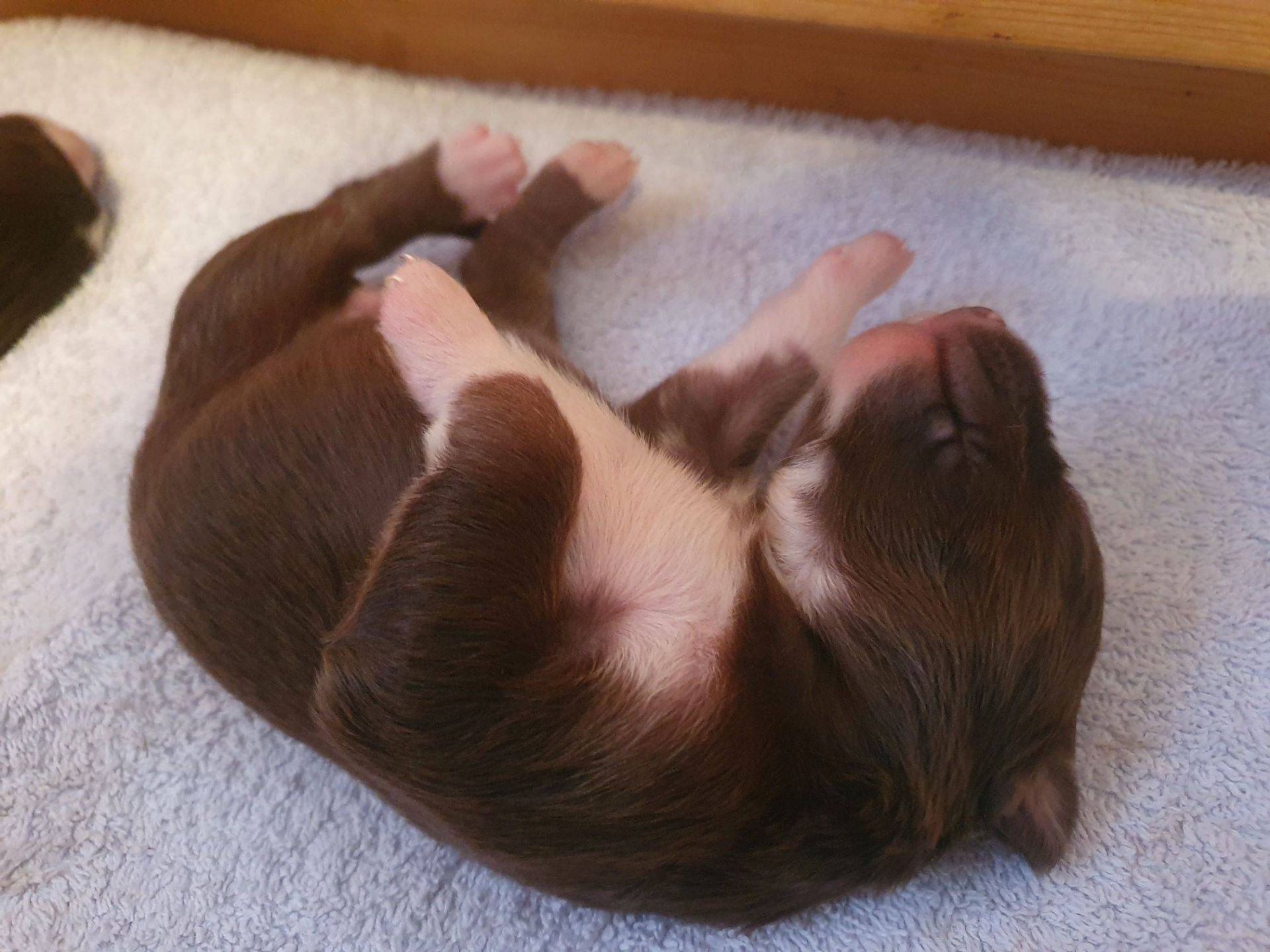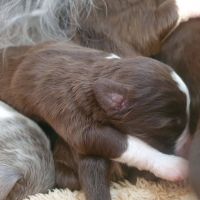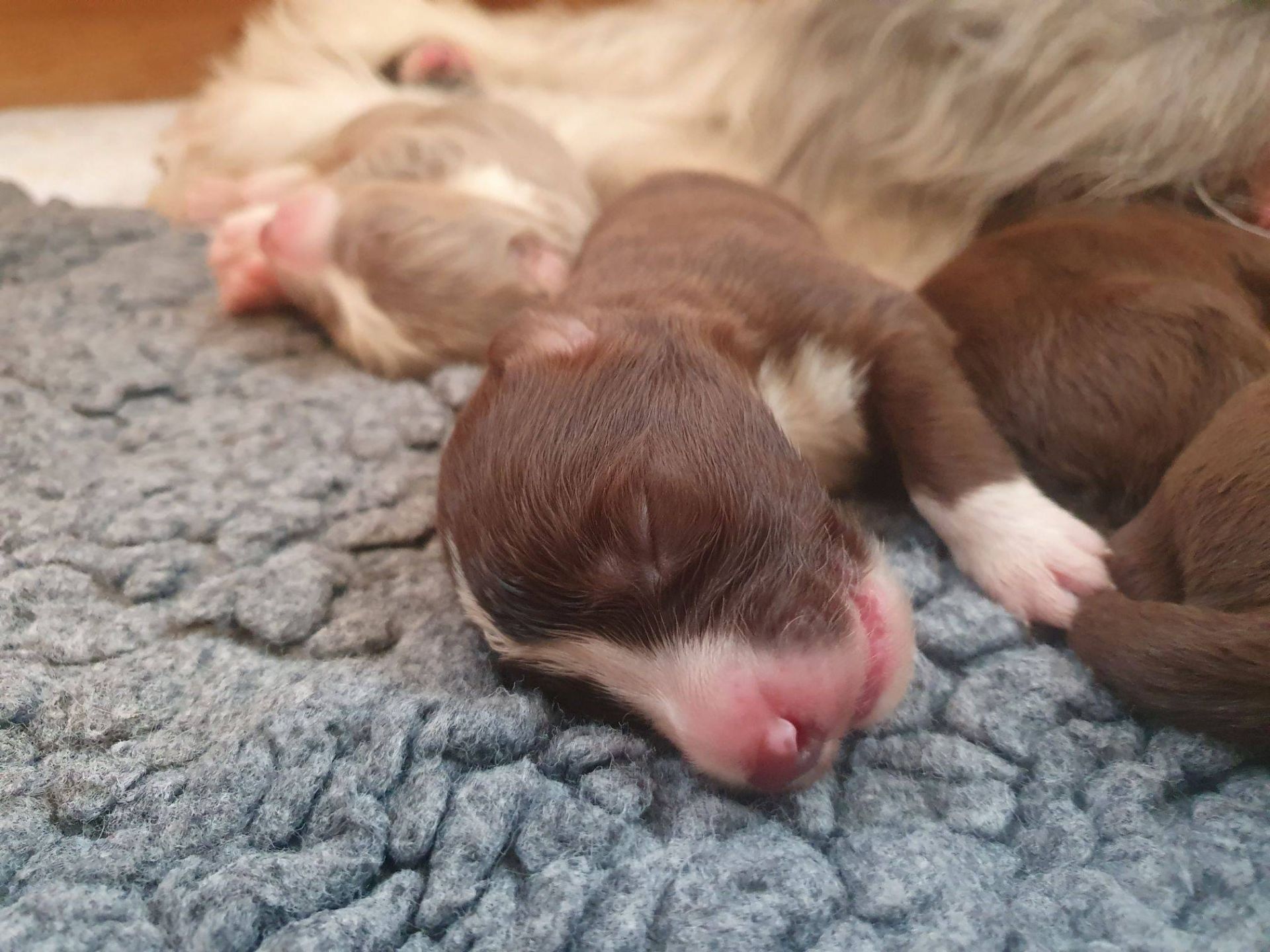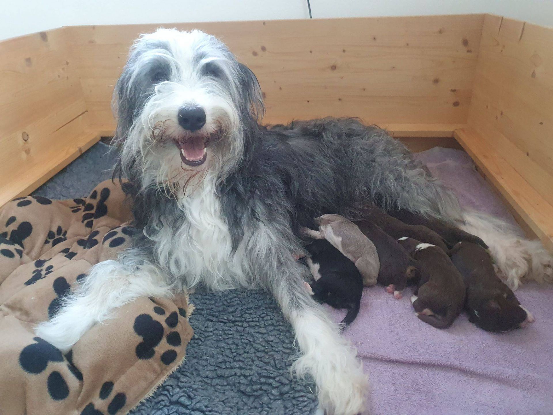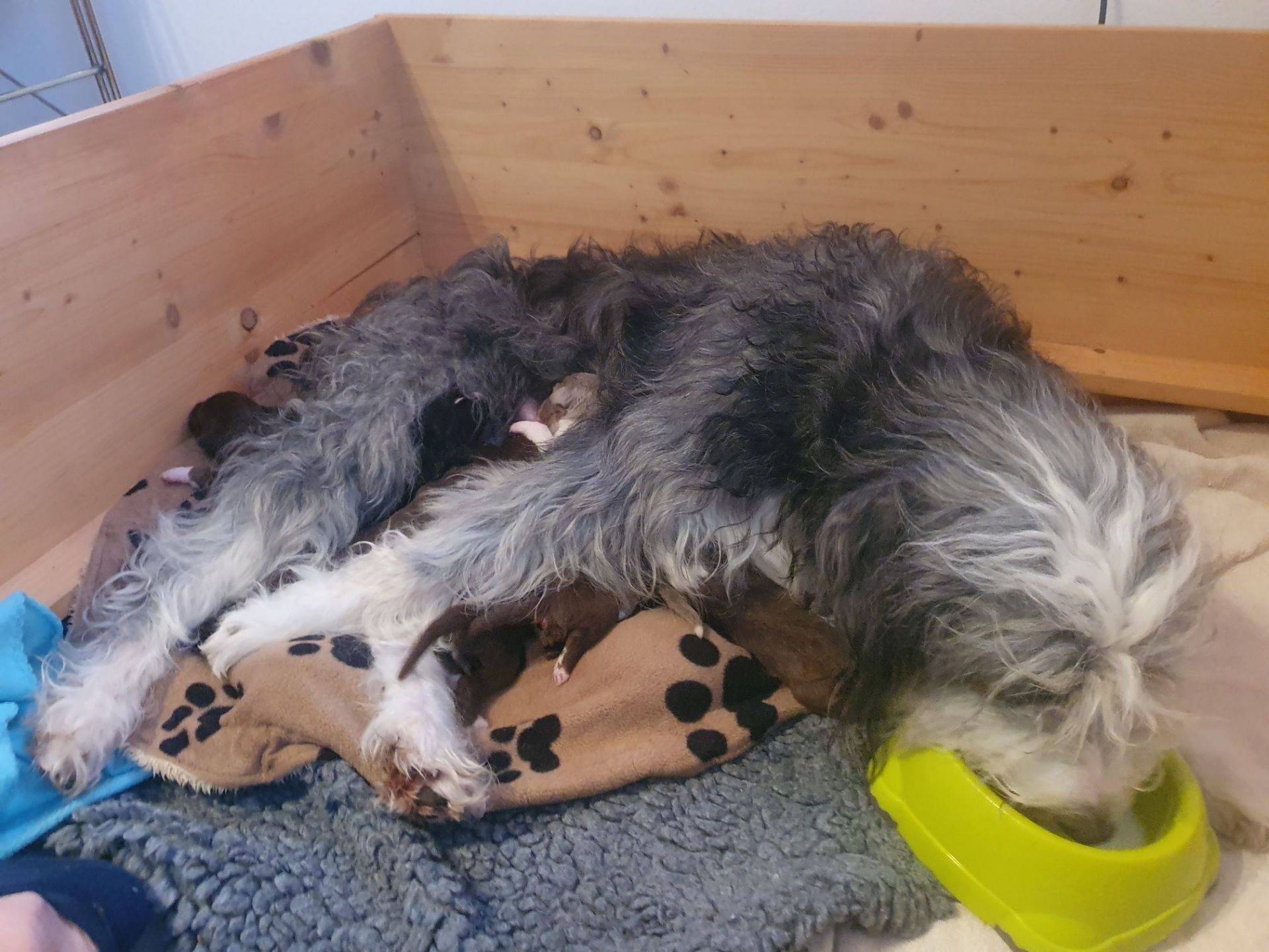 Blaze ist so eine tolle Mama. Völlig entspannt und führsorglich mit ihren Babies. Durch diese ersten, schwierigen Tag, sind wir noch enger zusammengewachsten.Da wo ich bin, ist sie, sprich ich sitze mit ihr zusammen in der Wurfbox, weil sie dann auch mal richtig tief schlafen kann. Sie ist einfach ein Schatz. Wir verstehen uns ohne Worte.