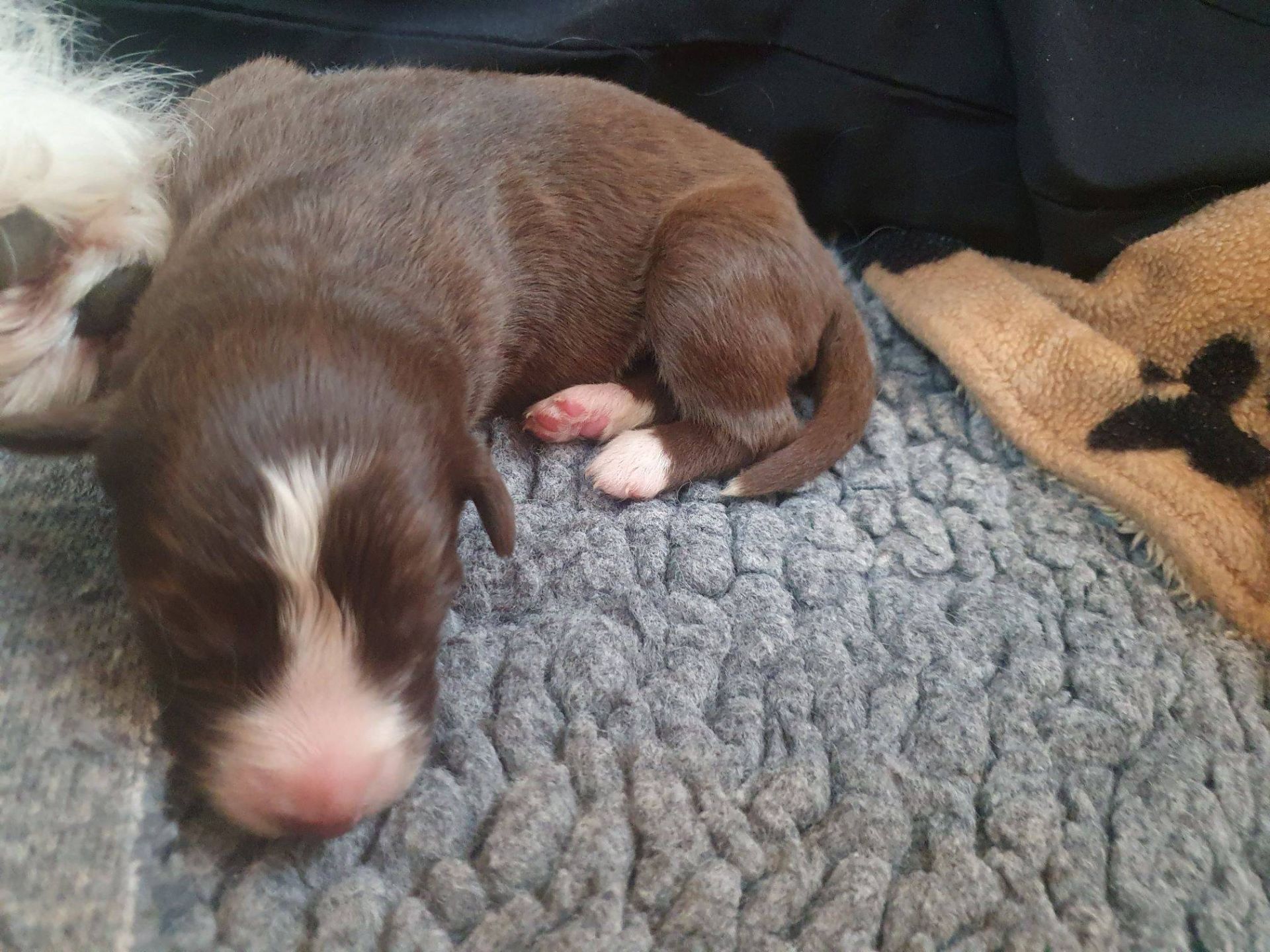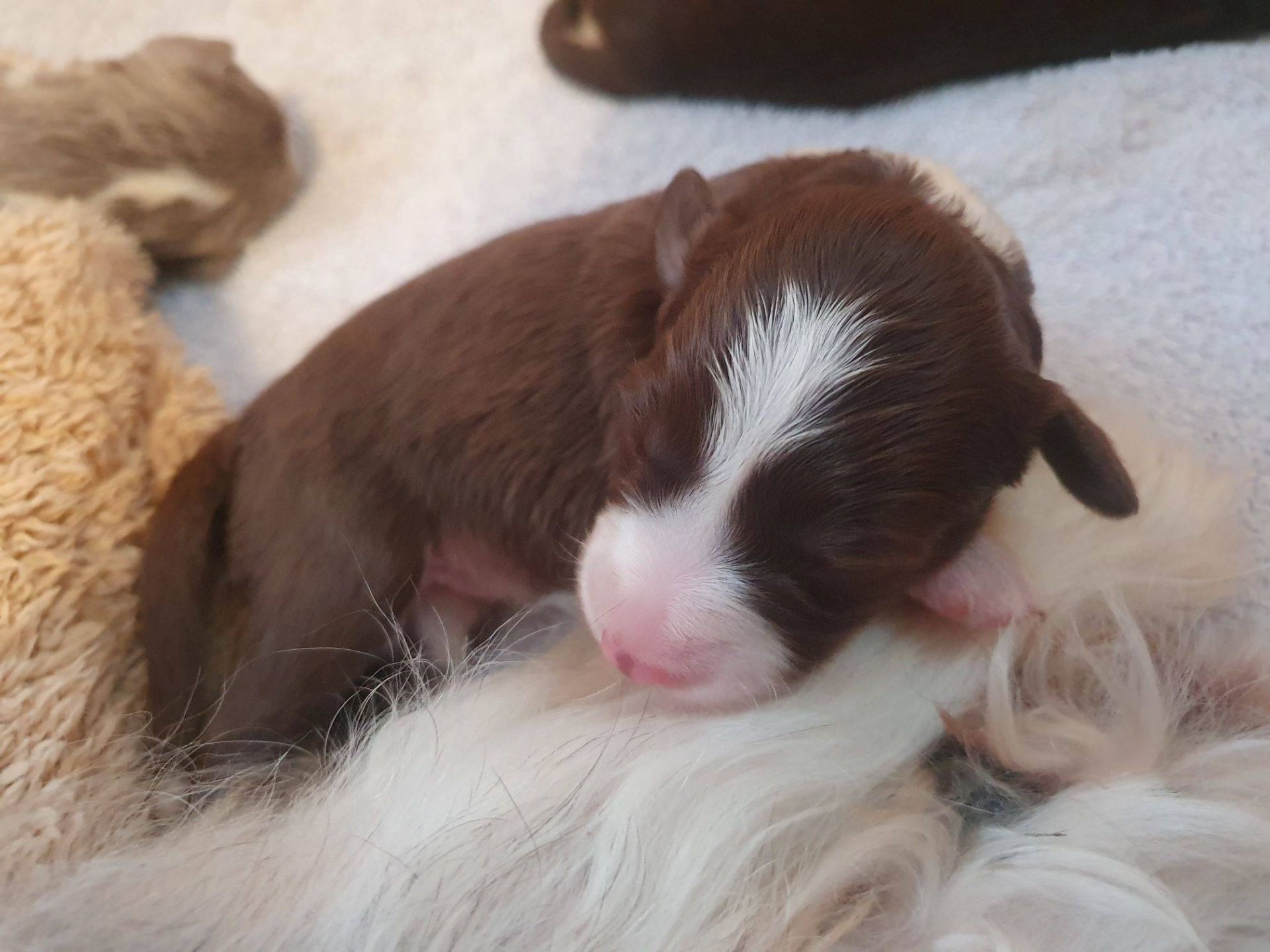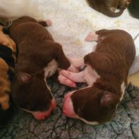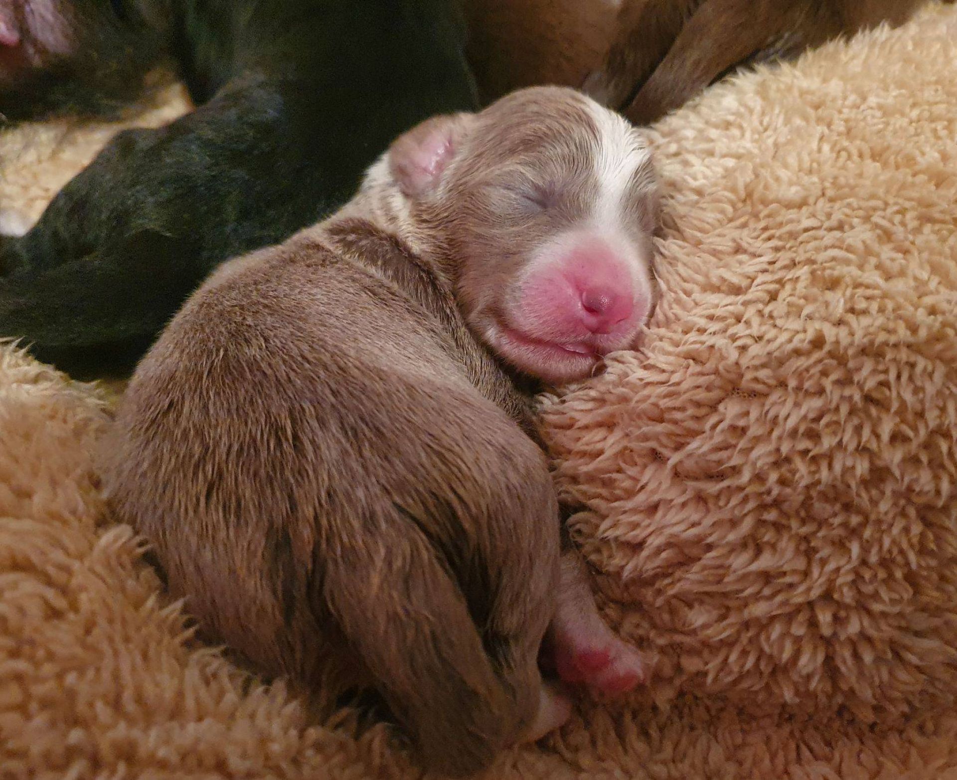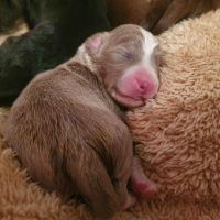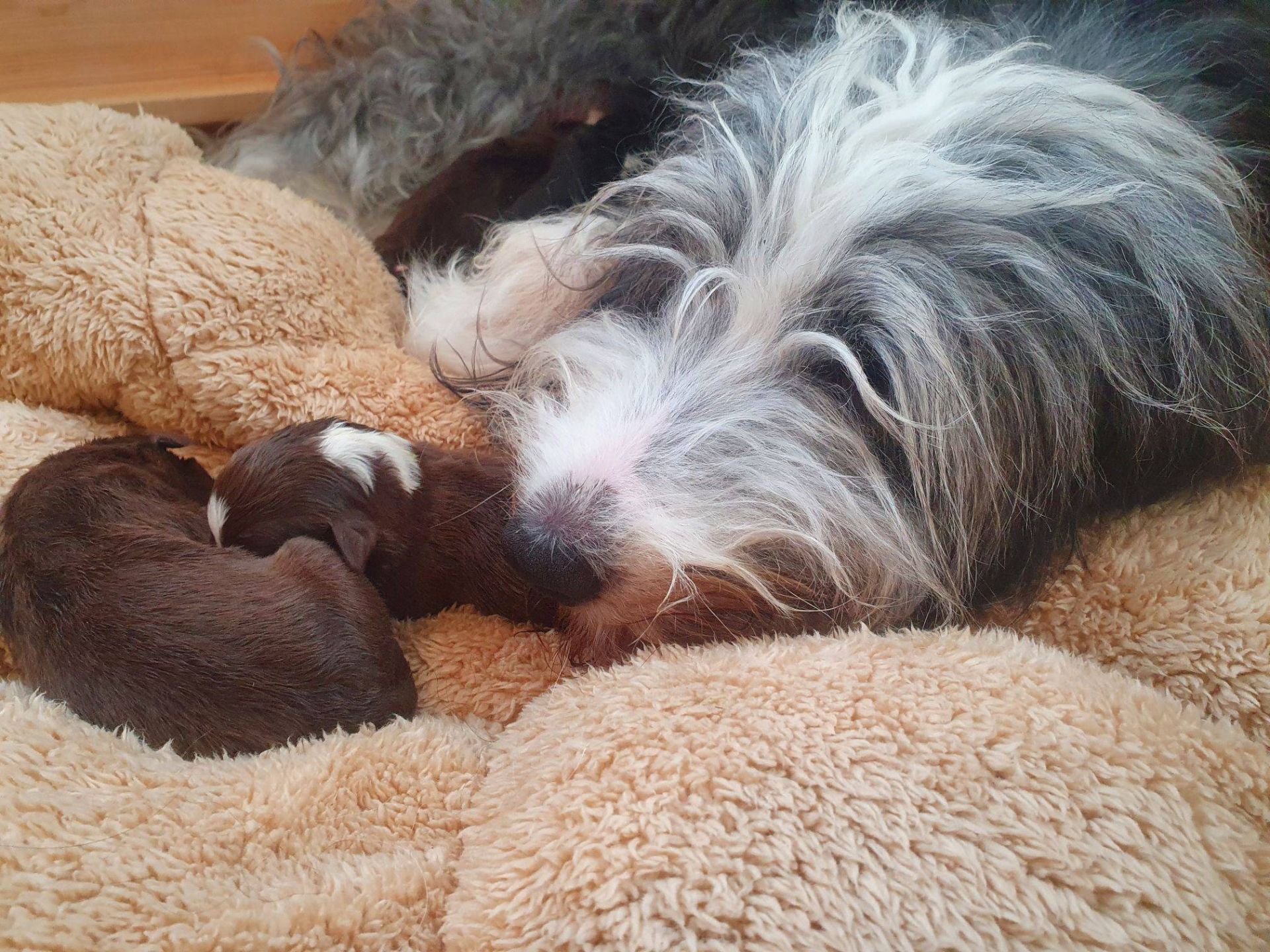 Blaze ist so eine tolle Mama. Völlig entspannt und führsorglich mit ihren Babies. Durch diese ersten, schwierigen Tag, sind wir noch enger zusammengewachsten.Da wo ich bin, ist sie, sprich ich sitze mit ihr zusammen in der Wurfbox, weil sie dann auch mal richtig tief schlafen kann. Sie ist einfach ein Schatz. Wir verstehen uns ohne Worte.