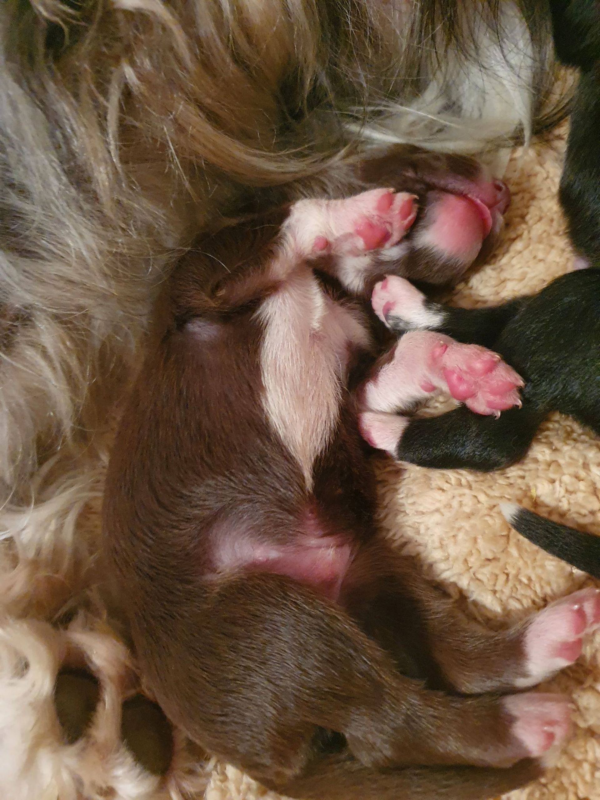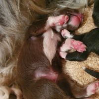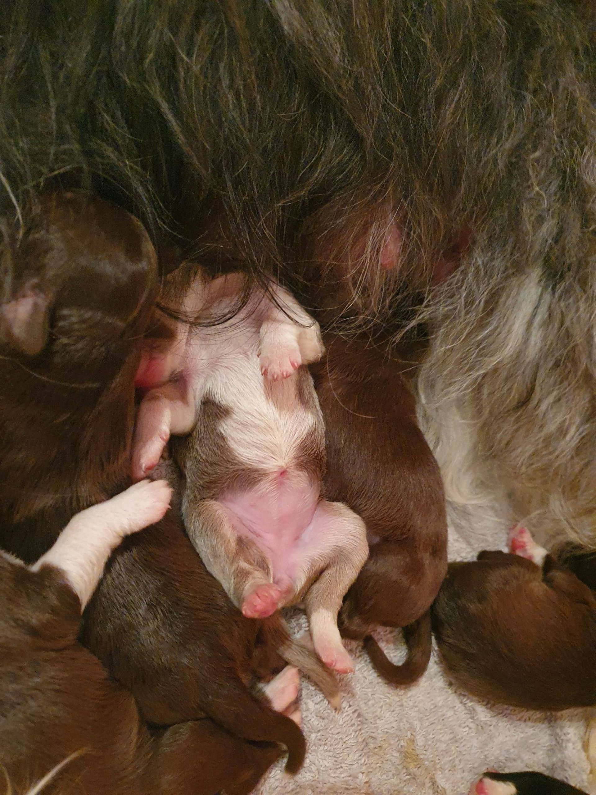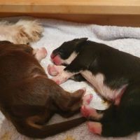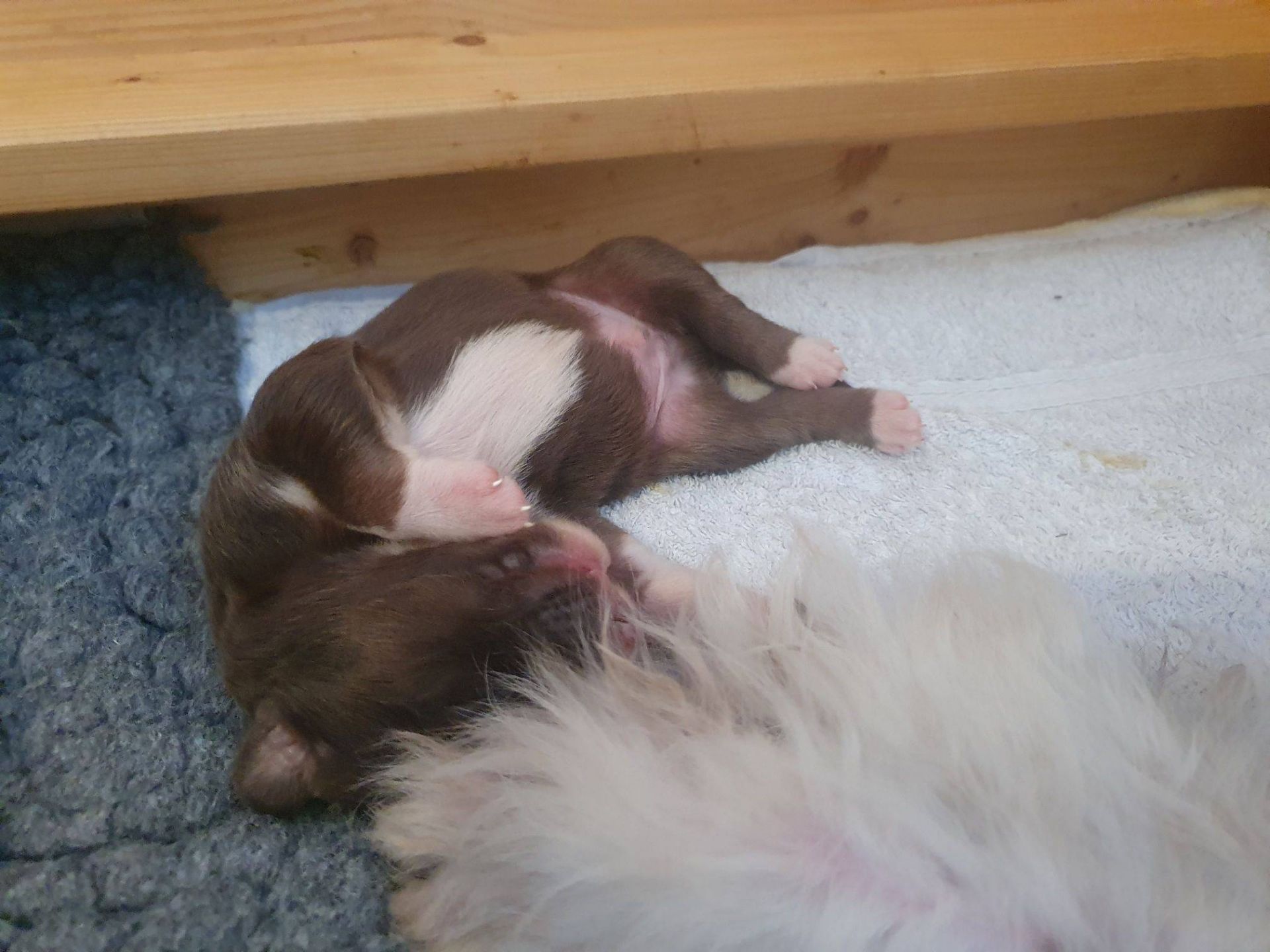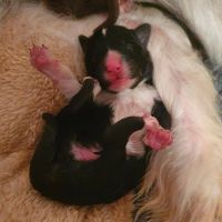 Blaze hat jetzt wirkliich Milch genug. Was fällt uns ein Stein vom Herzen. Sie war fast den ganzen Tag bei ihren Babies in der Box, als wenn sie wollte, dass die Babies alles nachholen. Die haben auch fast ununterbrochen getrunken und waren einfach nur satt und zufrieden. Man konnte ihnen quasi stündlich beim Wachsen zuschauen :-)