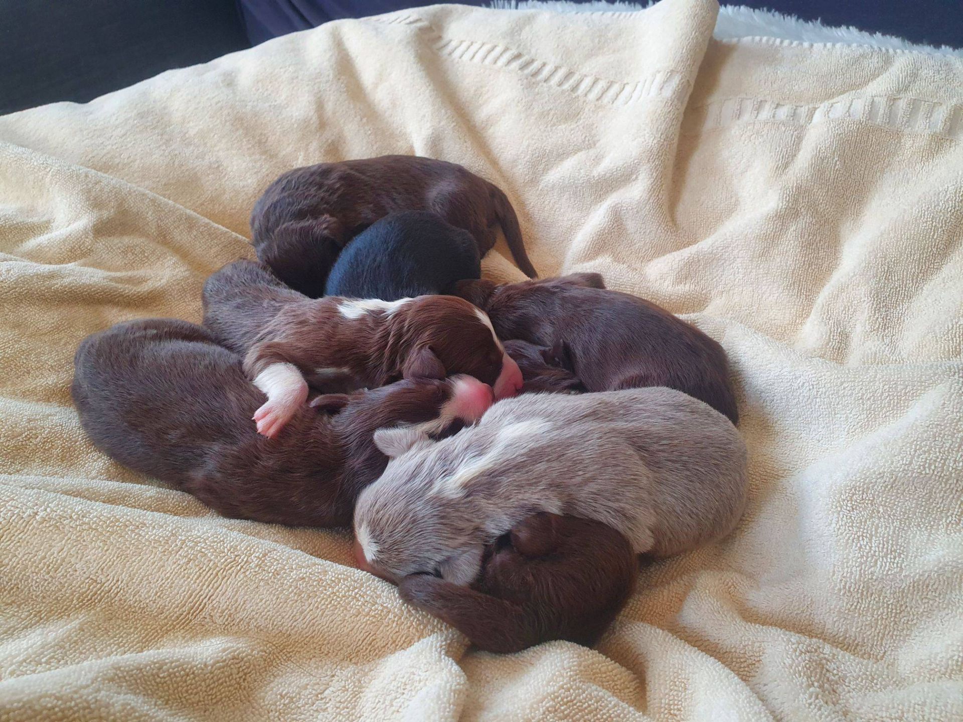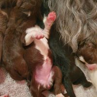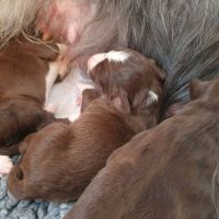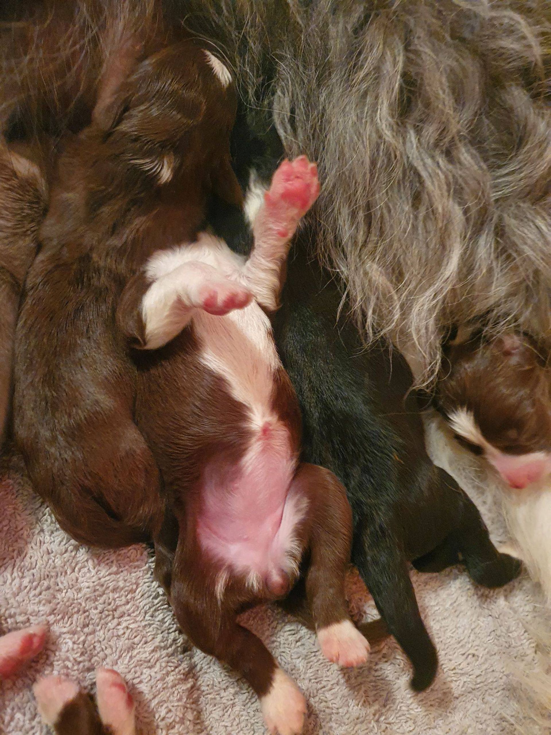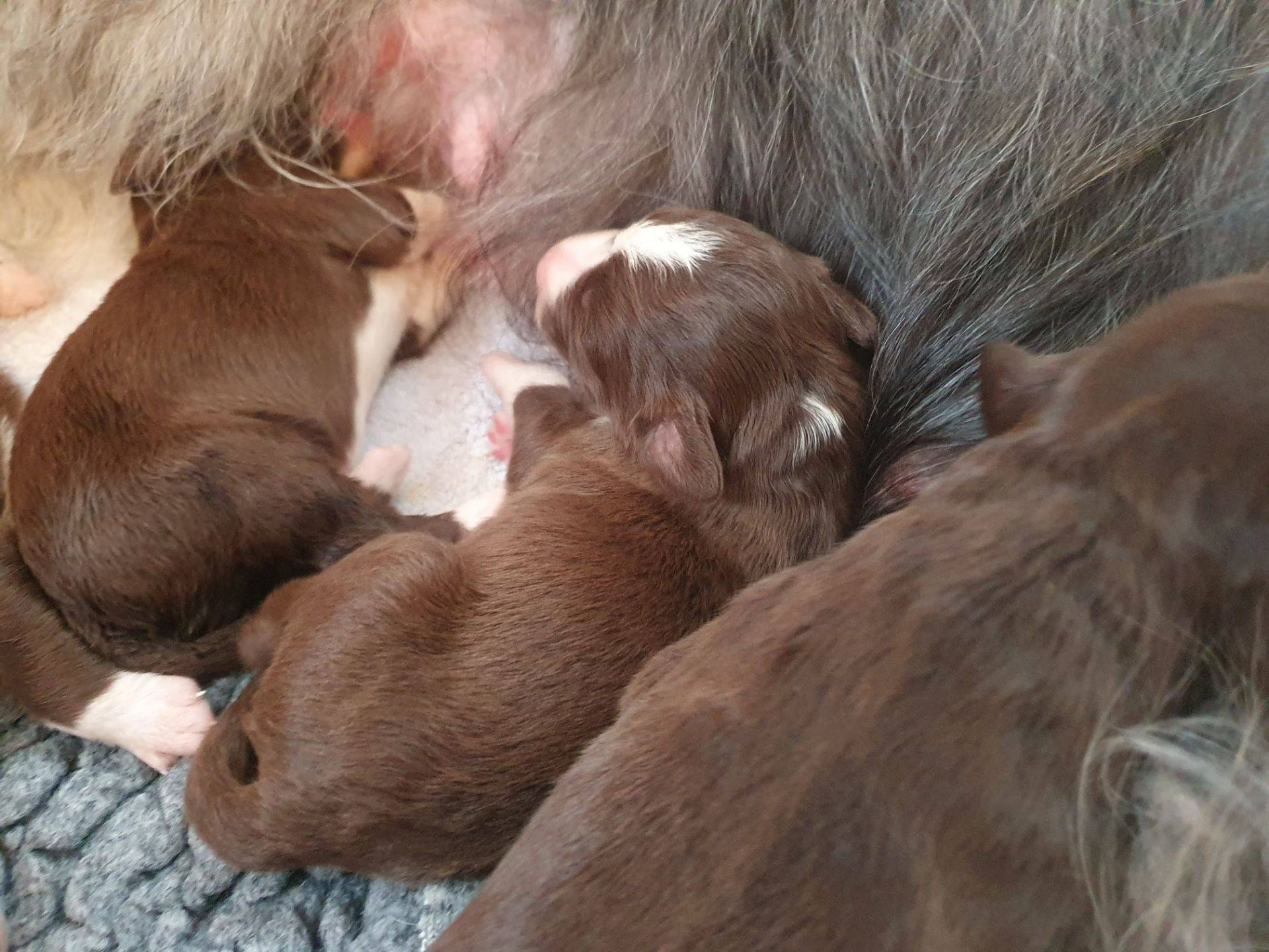 Blaze hat jetzt wirkliich Milch genug. Was fällt uns ein Stein vom Herzen. Sie war fast den ganzen Tag bei ihren Babies in der Box, als wenn sie wollte, dass die Babies alles nachholen. Die haben auch fast ununterbrochen getrunken und waren einfach nur satt und zufrieden. Man konnte ihnen quasi stündlich beim Wachsen zuschauen :-)