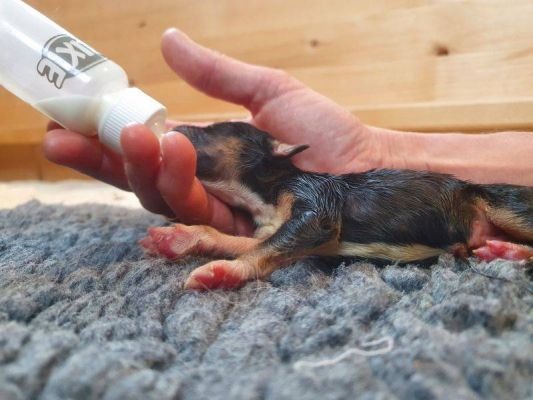 Die letzten Tage waren ein auf und ab der Gefühle. Unsere kleine Miniaus hat die Nacht von Dienstag auf Mittwoch überstanden aber leider auf 170 g abgenommen. Die Flasche wollte sie nicht nehmen, doch wir haben nicht aufgegeben. Immer wieder probiert und plötzlich hat es bei ihr einen Schalter umgelegt und sie hat gezogen was das Zeug hält. Mir sind die Tränen gekommen, vor Erleichterung und Rührung. Sie will! Ich habe gefüttert und Mama hat geputzt. Blaze hat genau zugeschaut, was ich da mache. Alle zwei Stunden erhielt sie die Flasche und wurde zusätzlich bei der Mama angelegt.