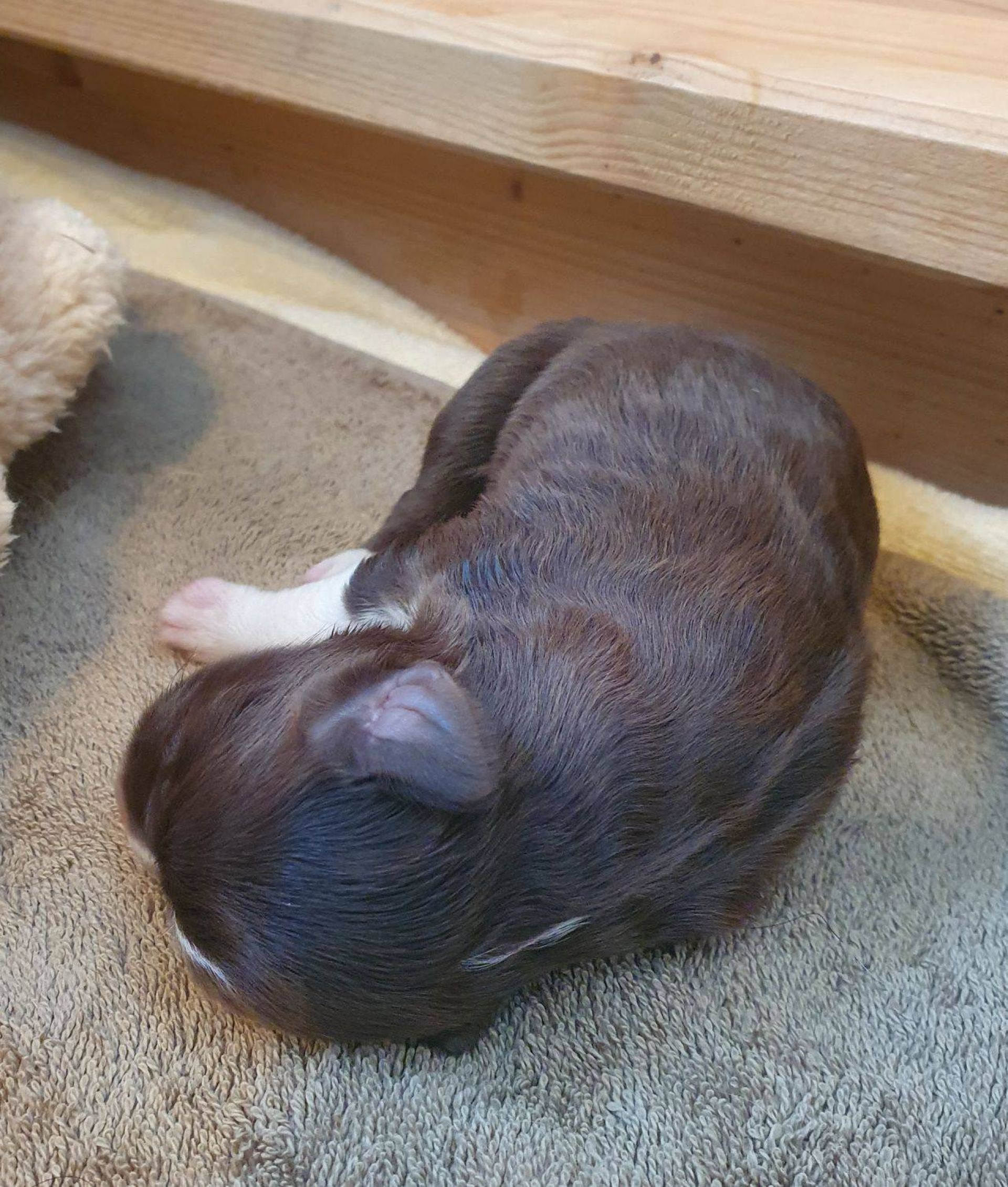 Sie war agil, zufrieden und einfach so eine goldige Maus. Hat man die Hände aufgehalten, ist sie angerobbt und hat sich hineingeschmiegt, ansonsten lag sie immer zwischen ihren Geschwistern oder bei Mama unter den Vorderpfoten. Am Abend hatte sie dann wieder auf 188 Gramm zugenommen. Wir waren so zuversichtlich. Und dann der große Schock. Am nächsten Morgen lag sie da, wie wenn sie schlafen würde aber sie hat nicht mehr geatmet. Ich weiss nicht wie man die Gefühle beschreiben kann, die einen da überkommen.Fassungslos, weil ich damit gar nicht gerechnet habe und dann ein ganz tiefer Schmerz, der einen schier nicht atmen lässt. Nie hätte ich gedacht, dass man sein Herz in so kurzer Zeit verlieren kann. Es ist egal, wie lang jemand war, ist, es tut immer weh. Mein kleiner wunderschöner Engel, Du wirst immer ein Teil von uns sein und ganz tief in unseren Herzen bleiben.