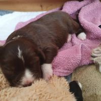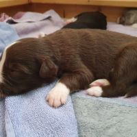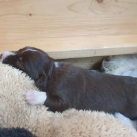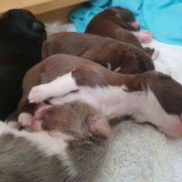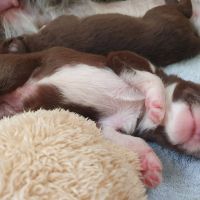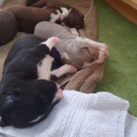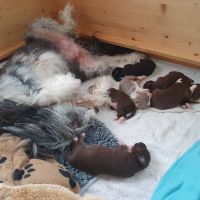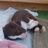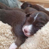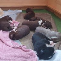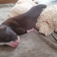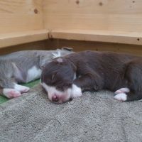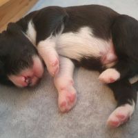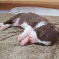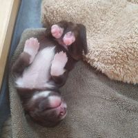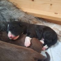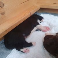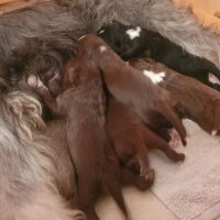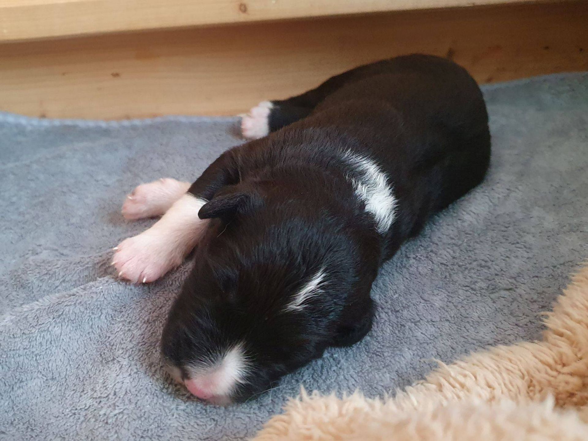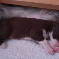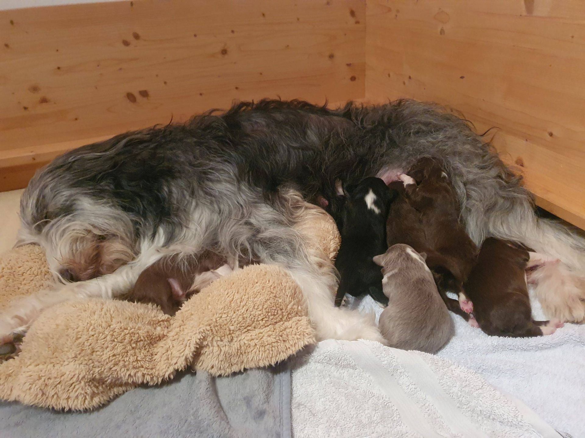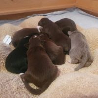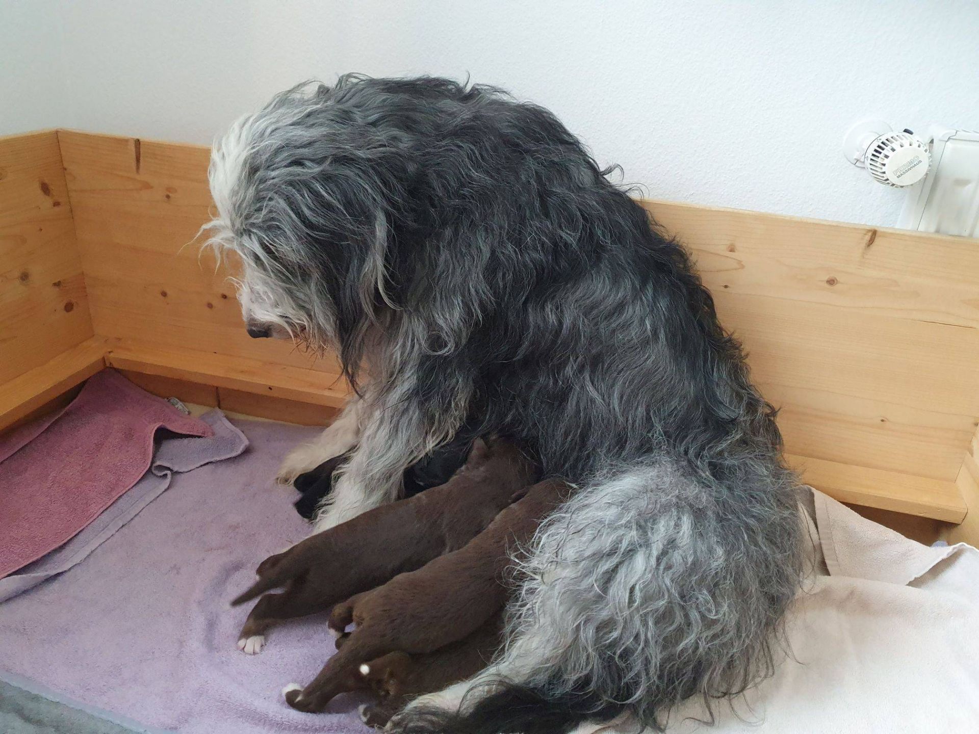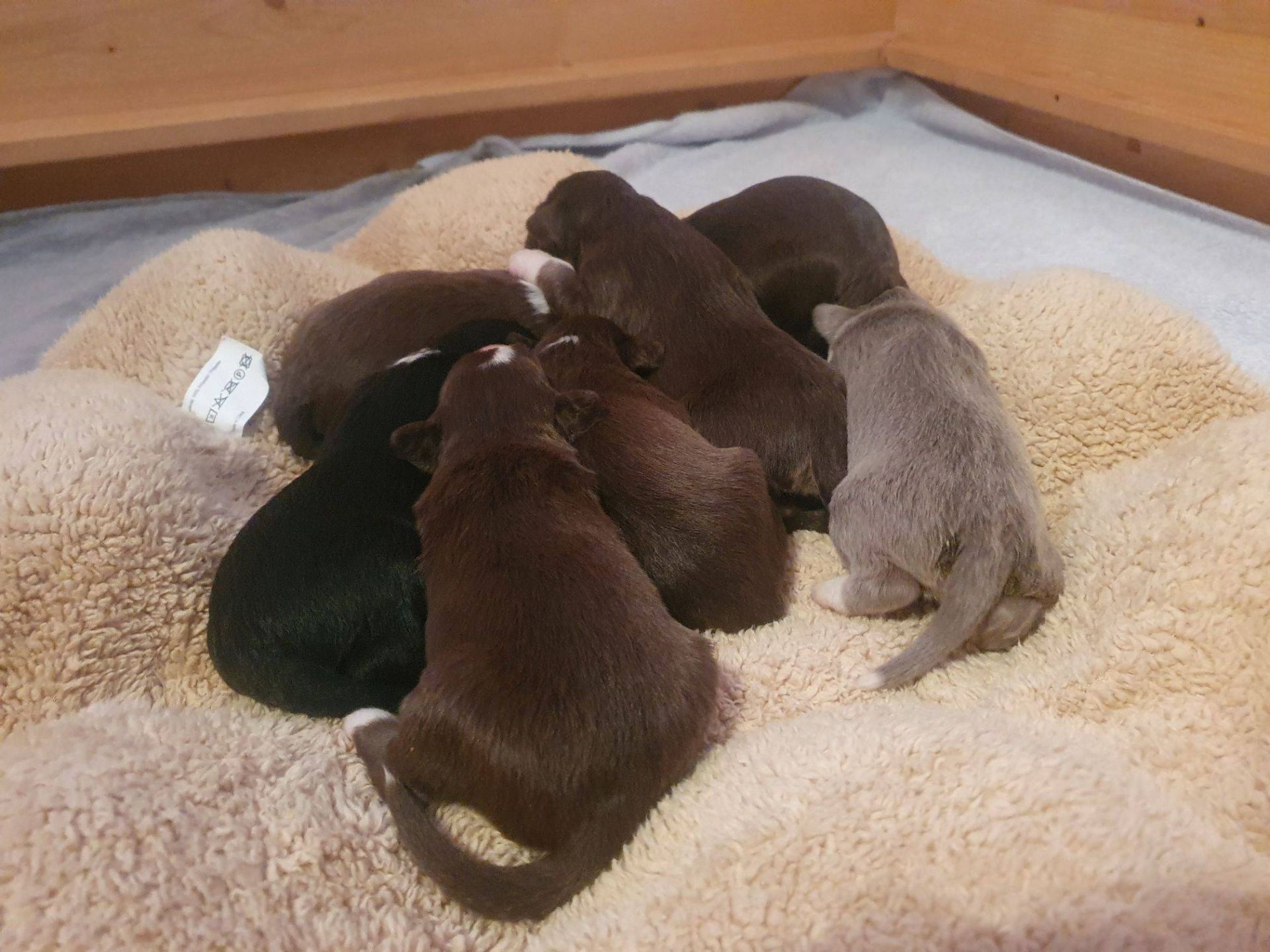 Blaze verlässt seit heute die Wurfbox freiwillig. Sie liegt zwar immer noch gerne 1-2 Stunden bei ihren Babies aber dann reicht es auch. Nachts weckt sie mich pünktlich alle 1,5-2 Stunden, wenn sie der Meinung ist, jetzt muss wieder gesäugt werden...denn, ich muss mit :-) Aber ich mache das gerne, dann kann sie total entspannen. Schlaf wird eh überbewertet.