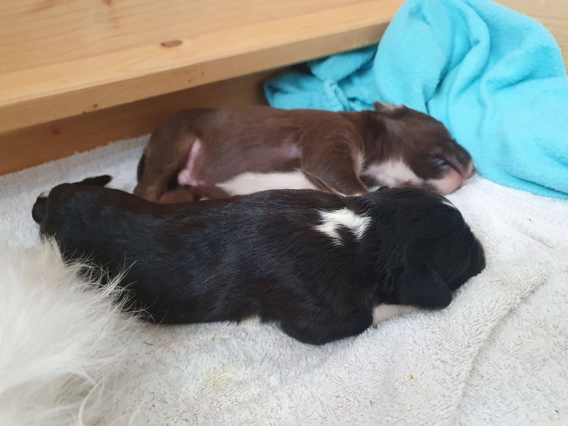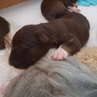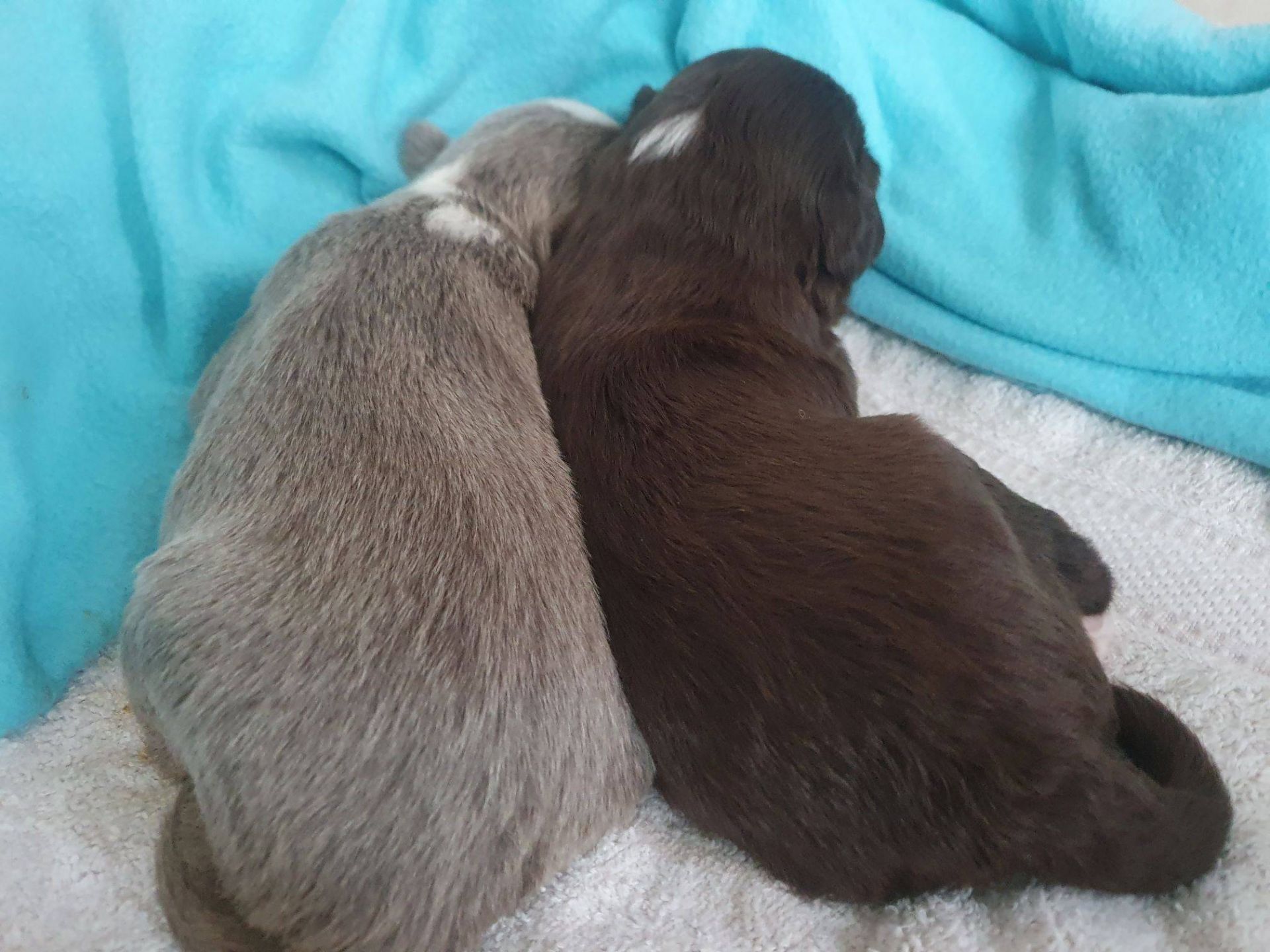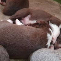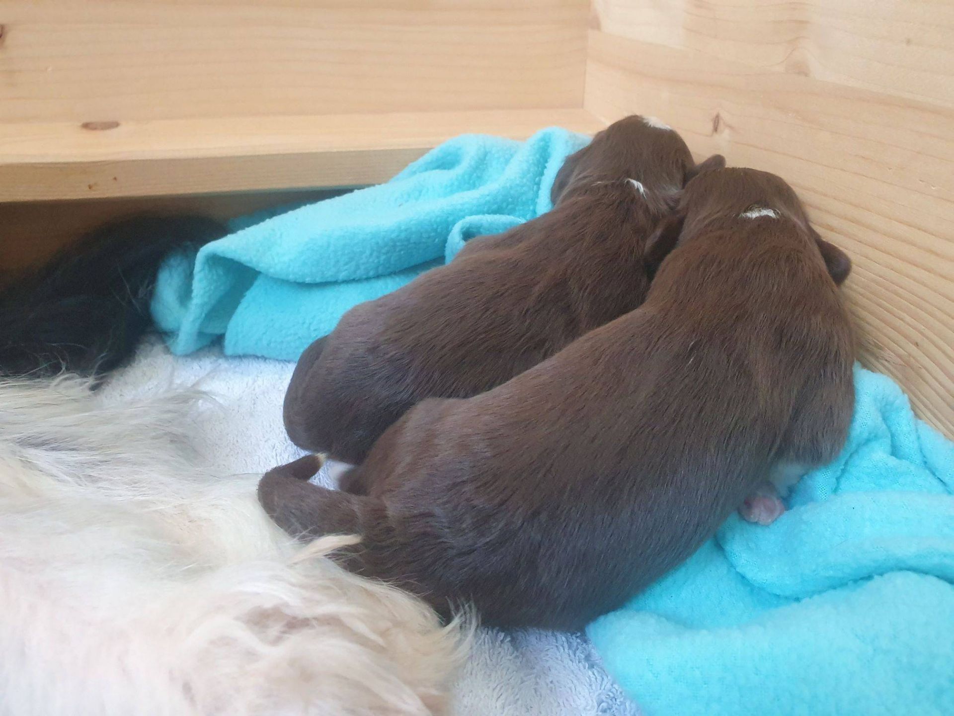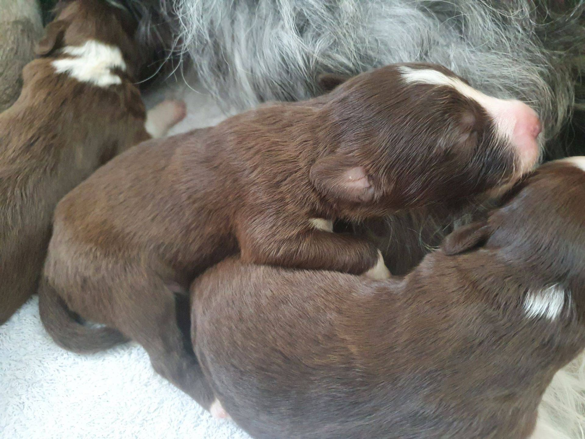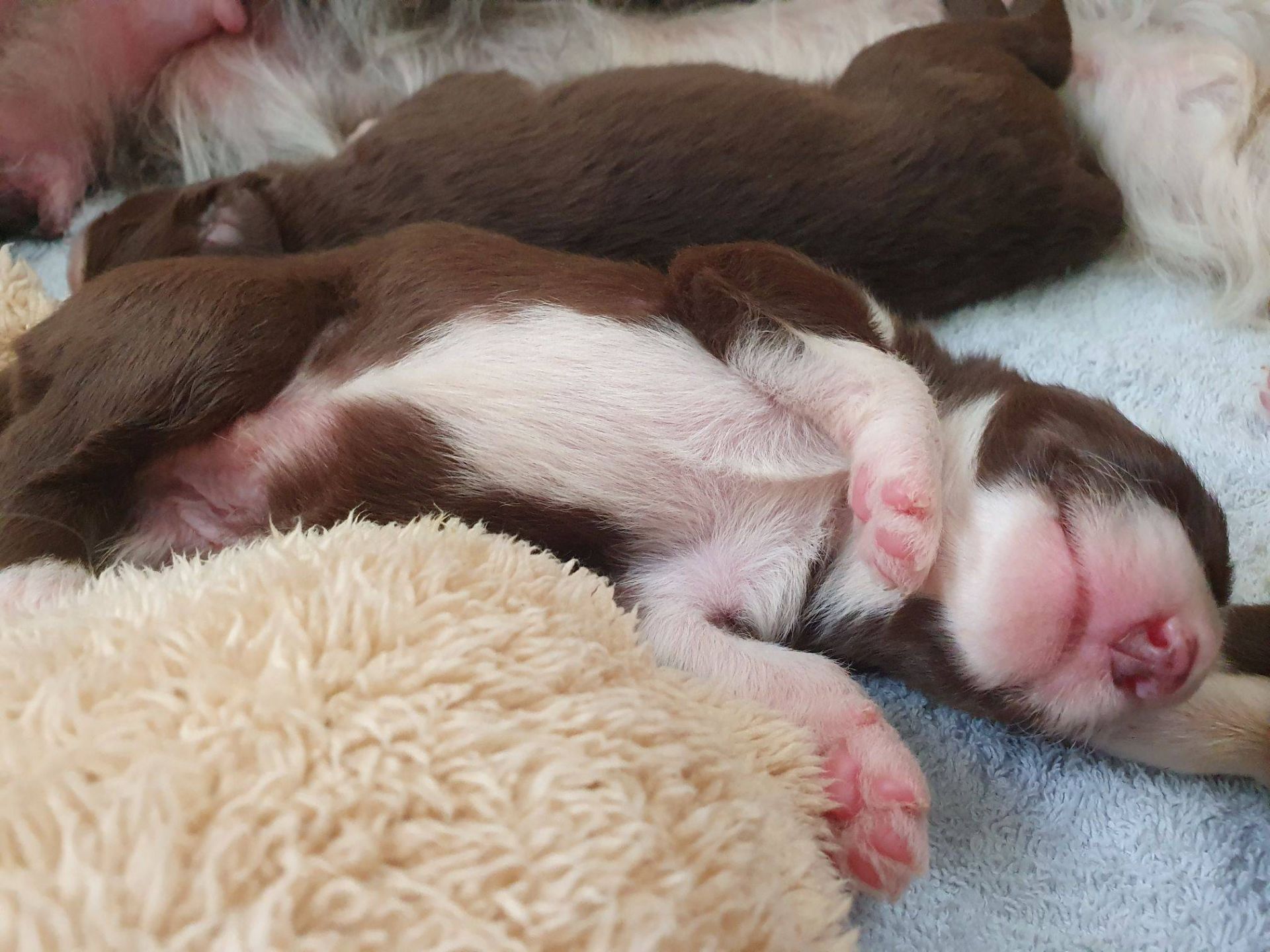So lieb, verkuschelt, chillig, sanft und brav die Welpis sind, so energisch und rabiat werden sie, wenn es ums Trinken geht. Die arme Blaze bekommt Knutschflecken und wird ausgesaugt. Kein Wunder, dass sie nur noch zum Säugen und Putzen reingeht. Nuckeln gibt es momentan nicht. Sie schläft lieber vor der Wurfbox.