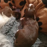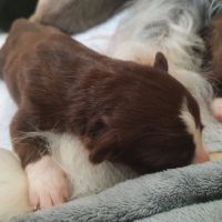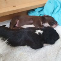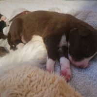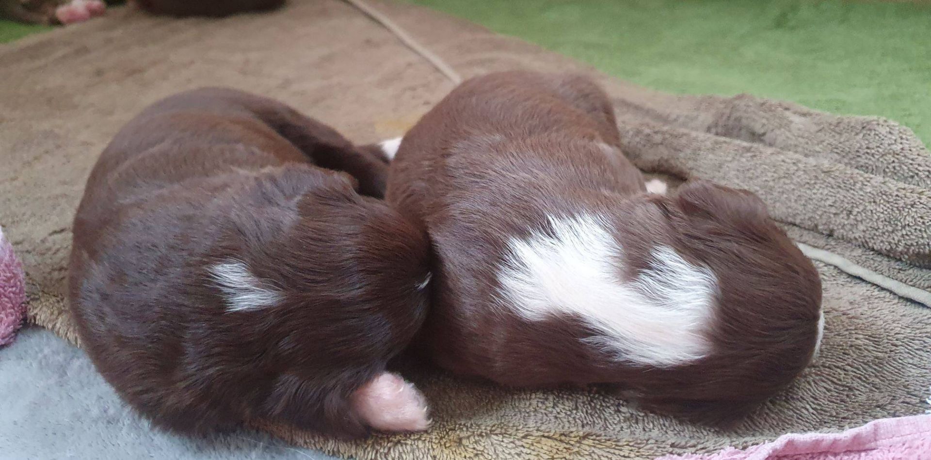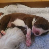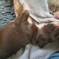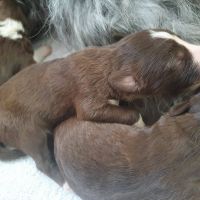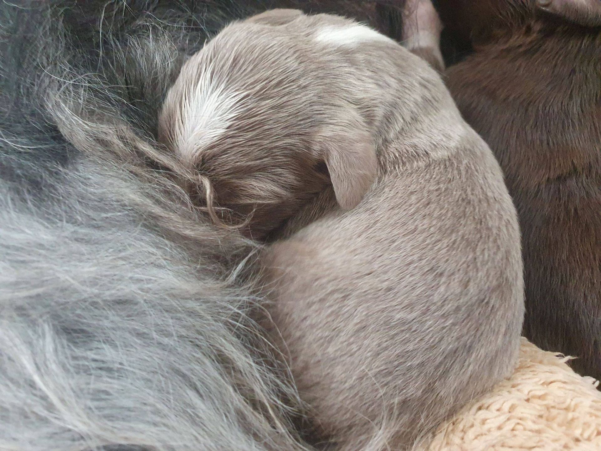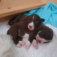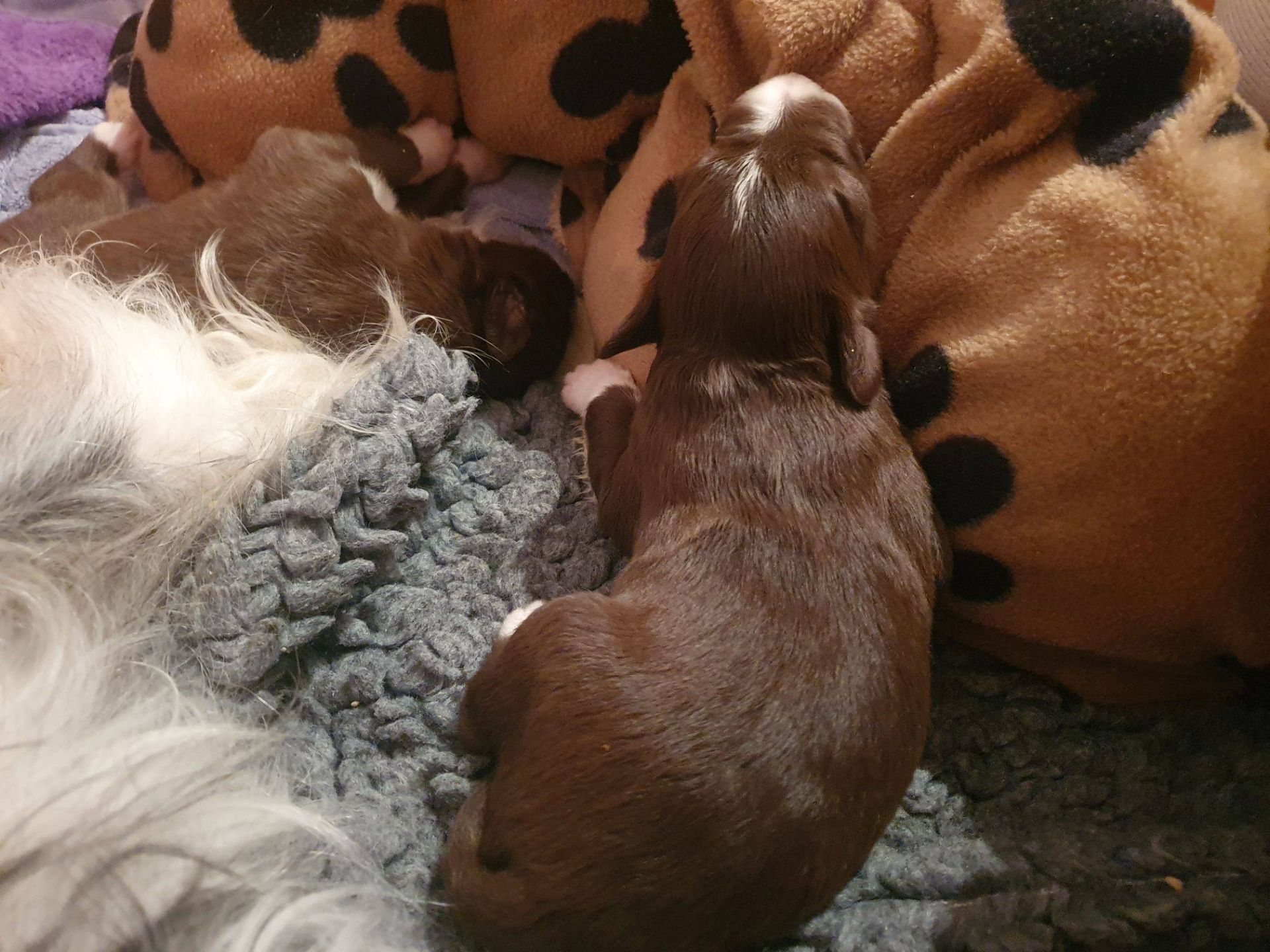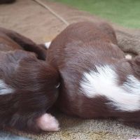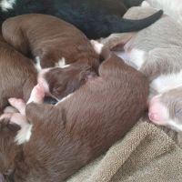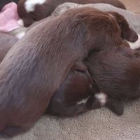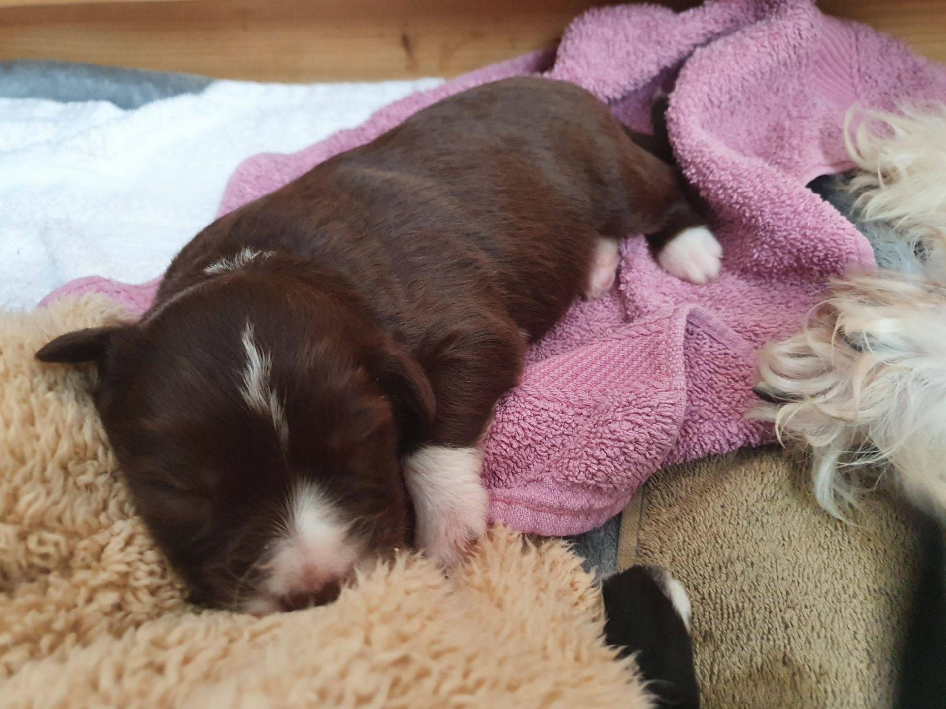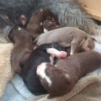 So lieb, verkuschelt, chillig, sanft und brav die Welpis sind, so energisch und rabiat werden sie, wenn es ums Trinken geht. Die arme Blaze bekommt Knutschflecken und wird ausgesaugt. Kein Wunder, dass sie nur noch zum Säugen und Putzen reingeht. Nuckeln gibt es momentan nicht. Sie schläft lieber vor der Wurfbox.