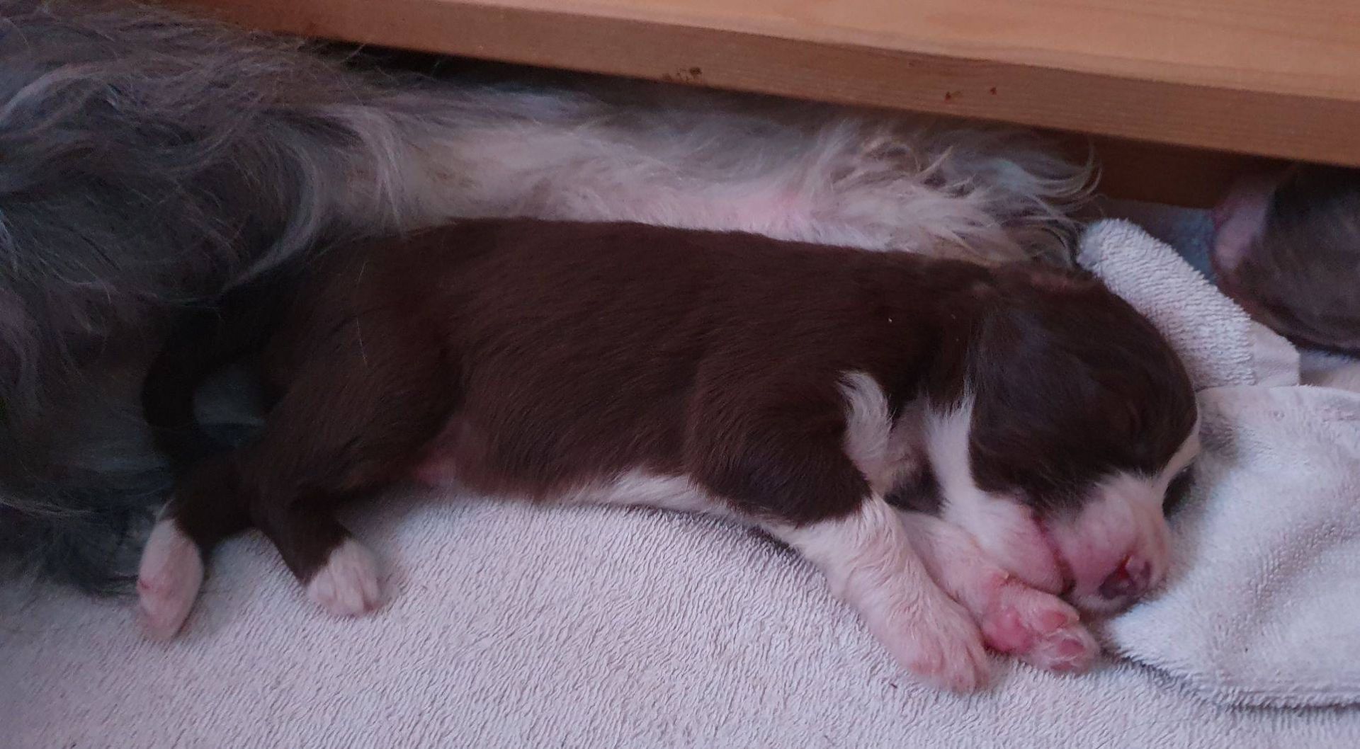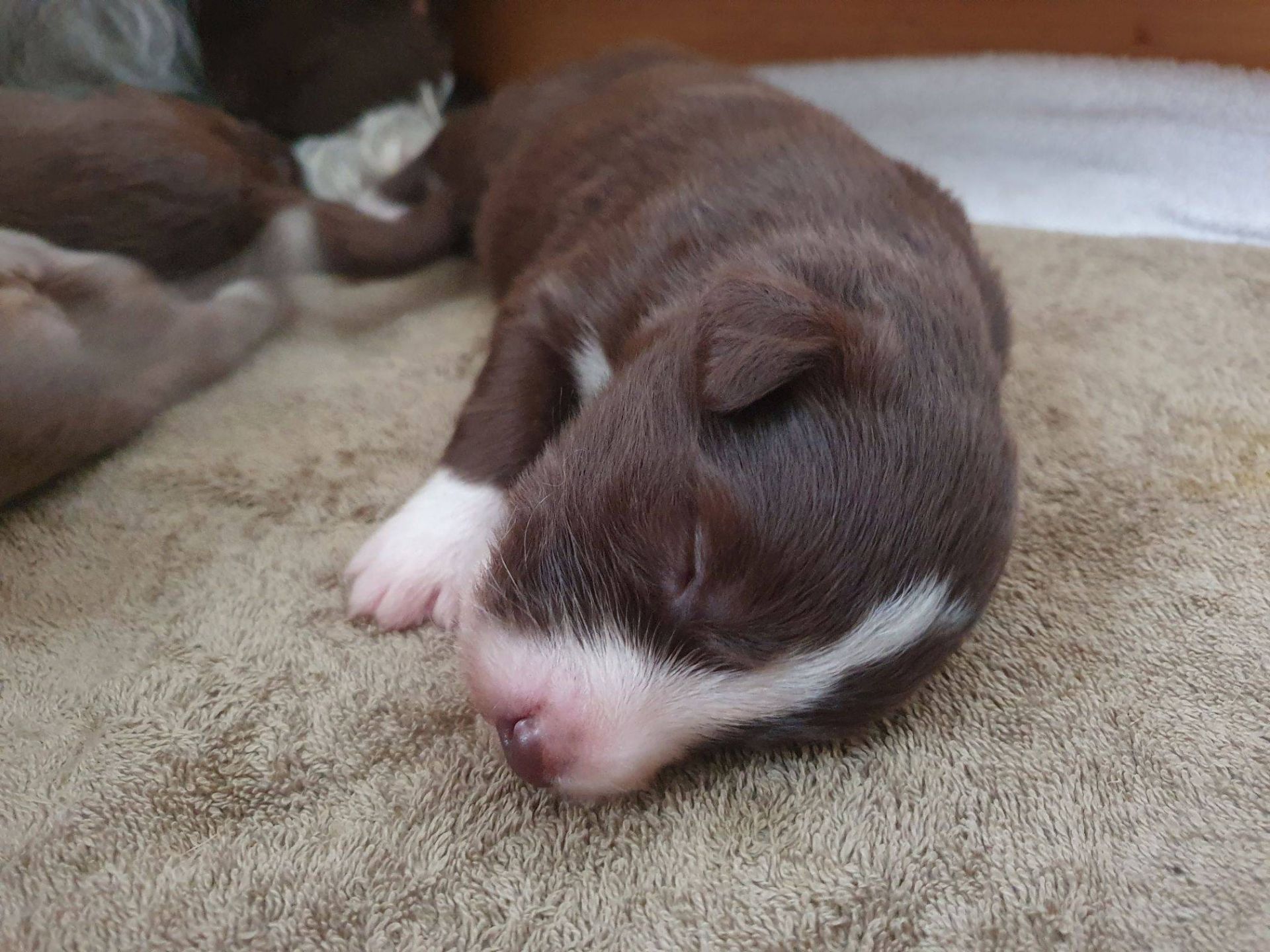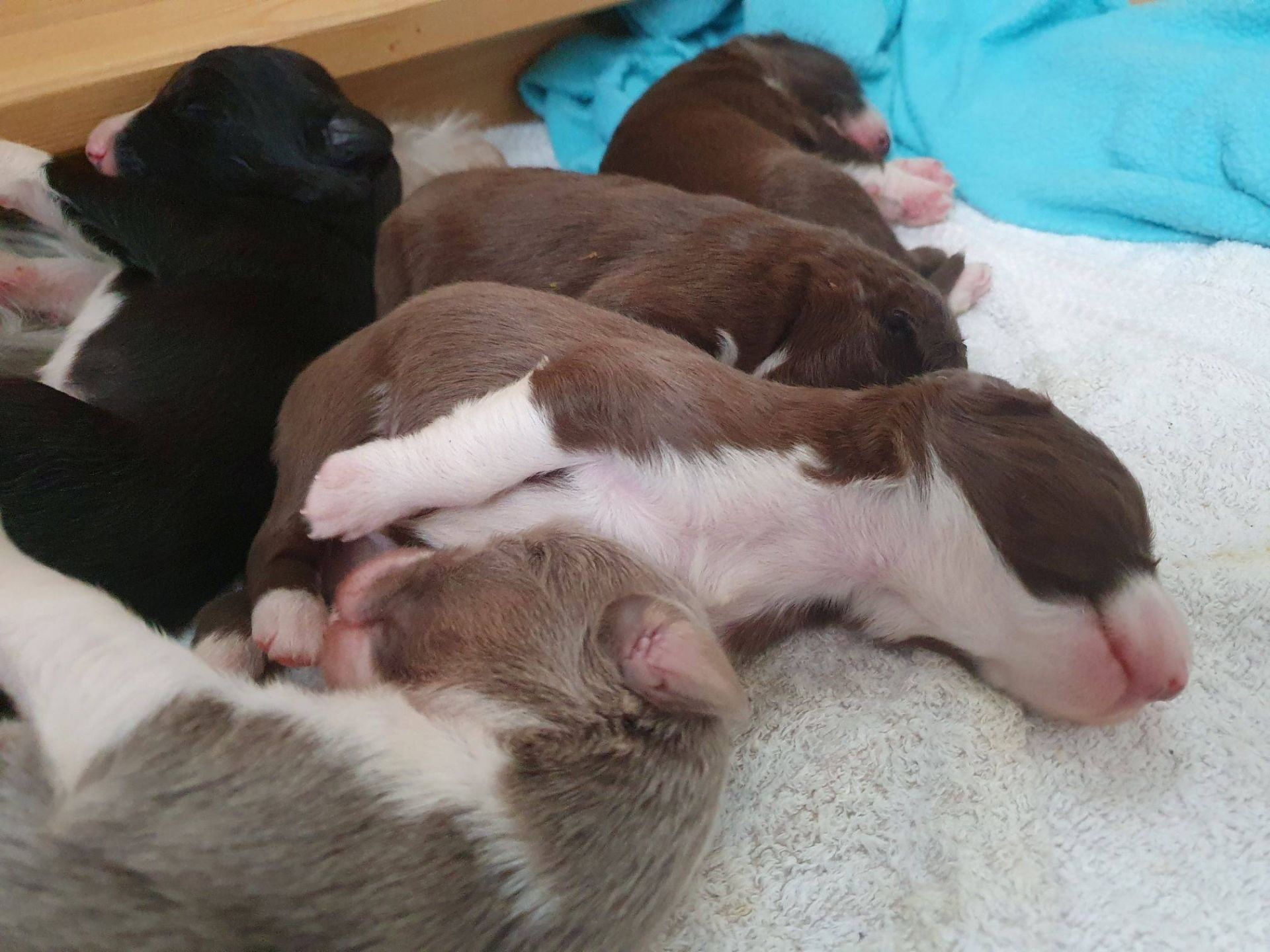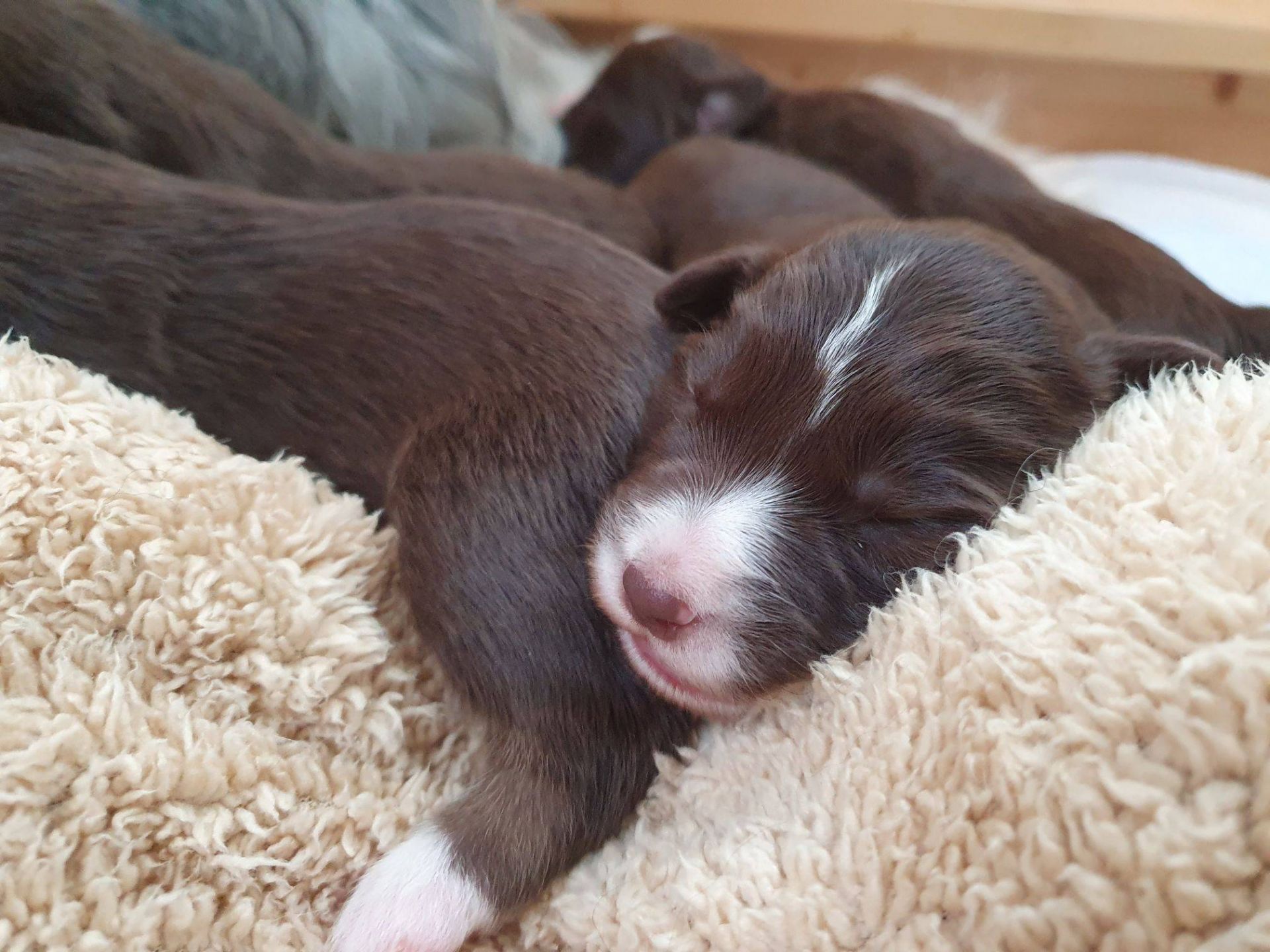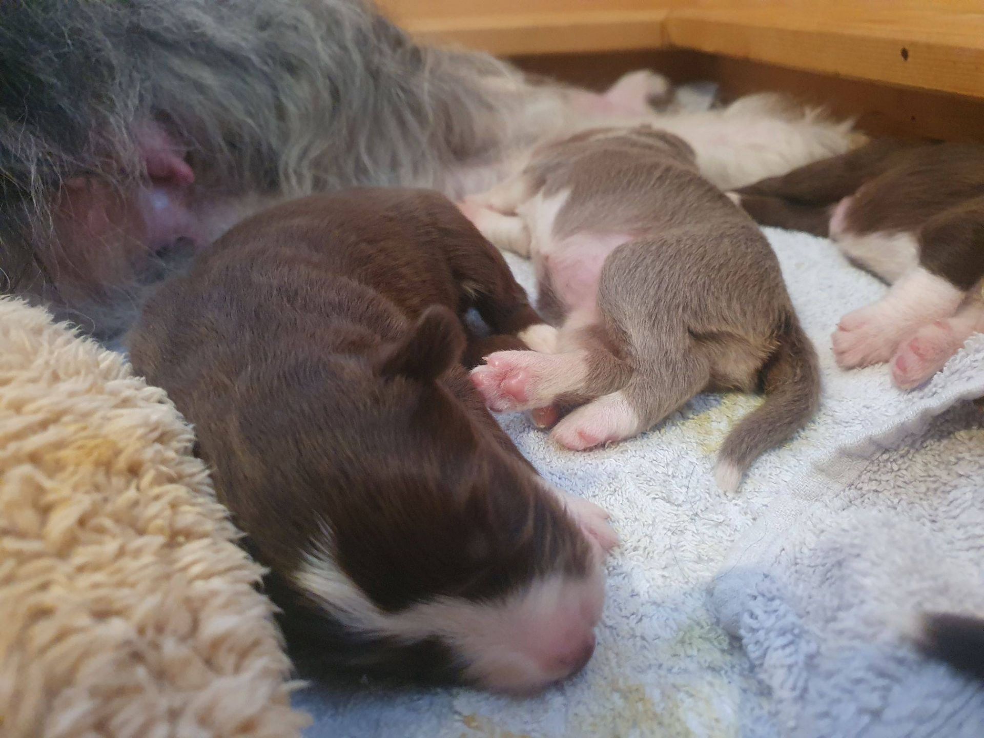 Blaze hält ihren 2-Stundenrythmus bei, liegt jetzt aber nach dem Säugen und Putzen außerhalb der Wurfbox. Tagsüber geht sie wieder mit ins Büro, dann erinnere ich sie, dass es wieder Zeit für die Babies ist. Nachts ist es andersrum, da weckt sie mich :-) Man kann die Uhr danach stellen.