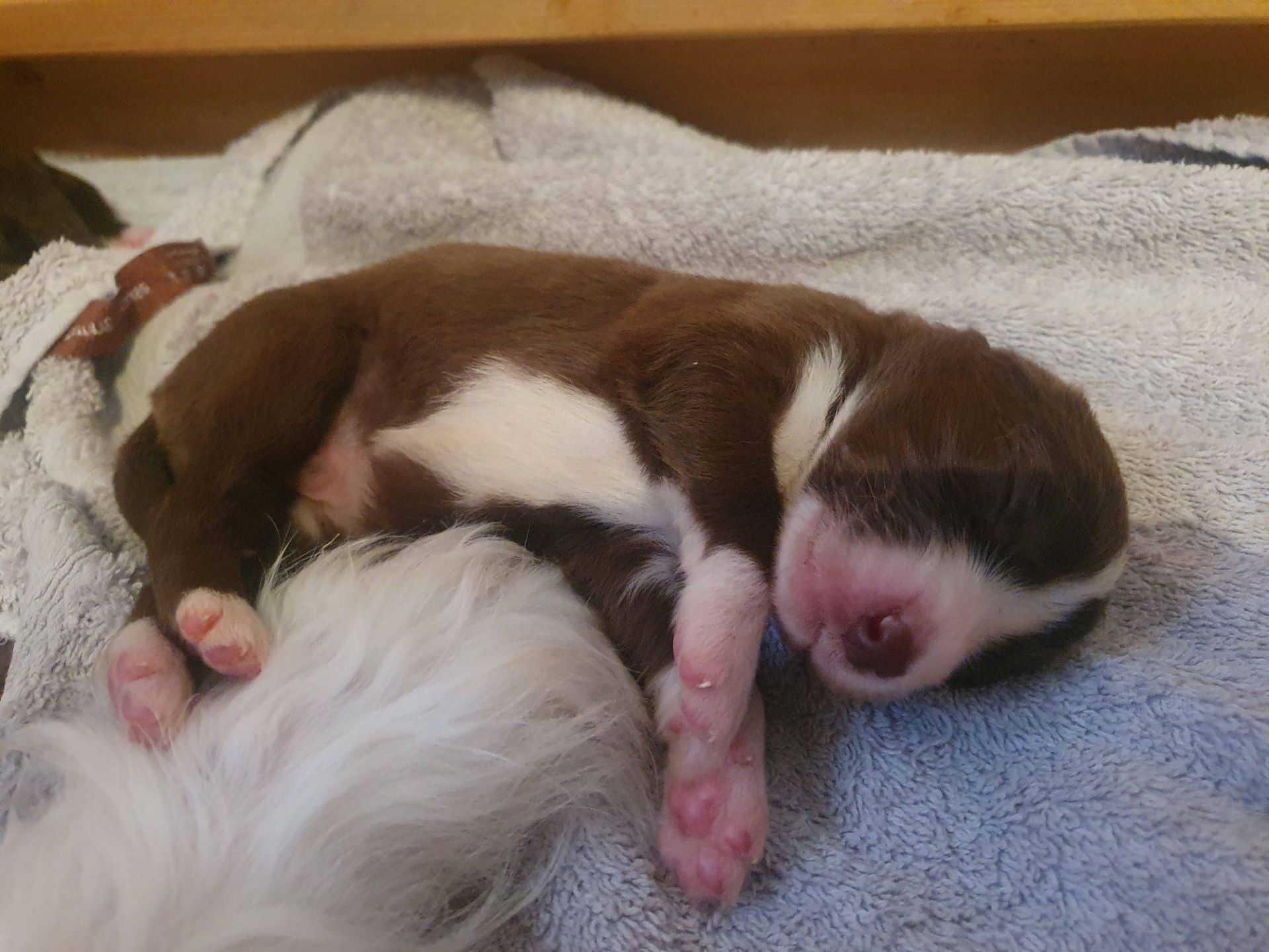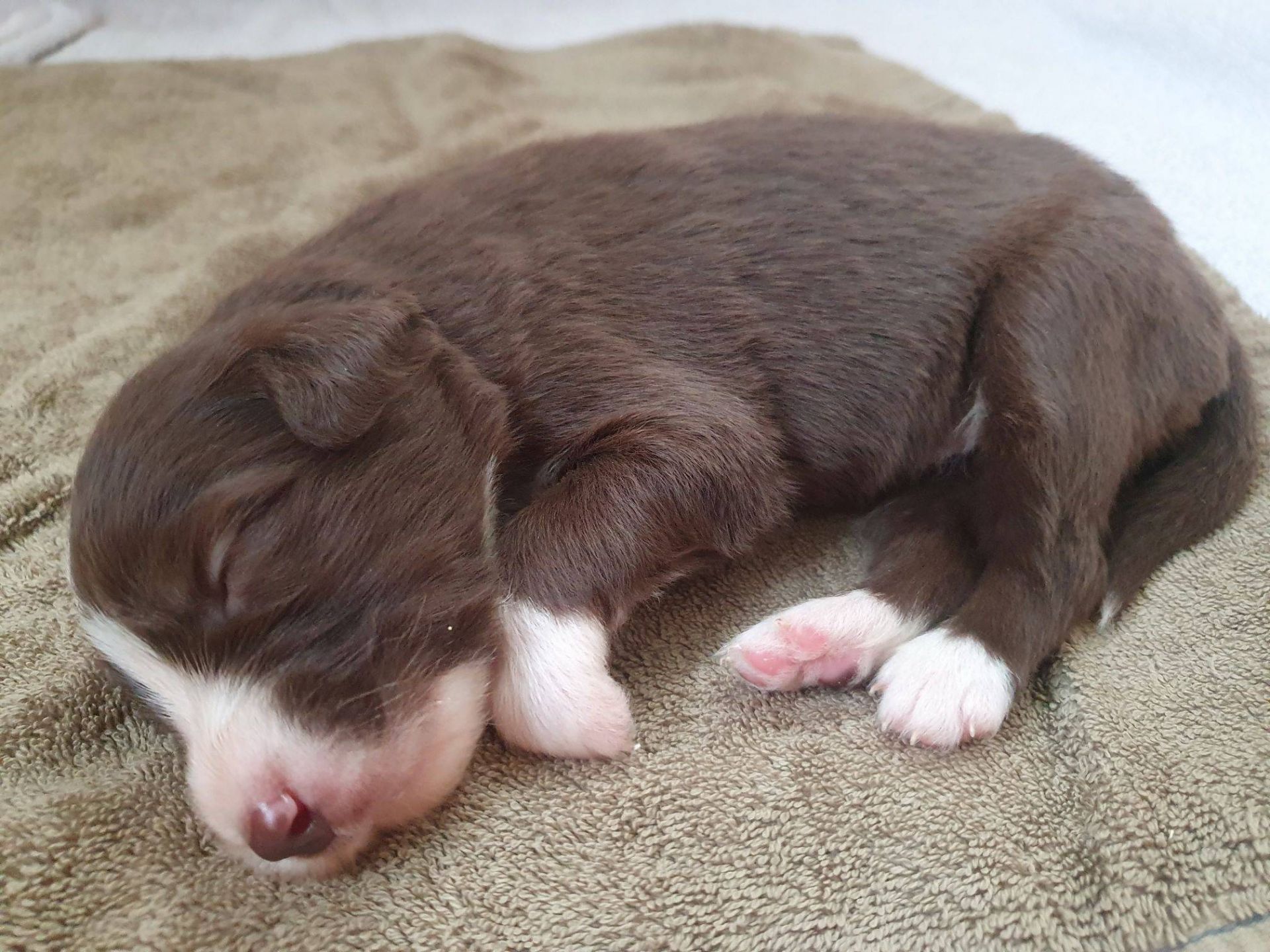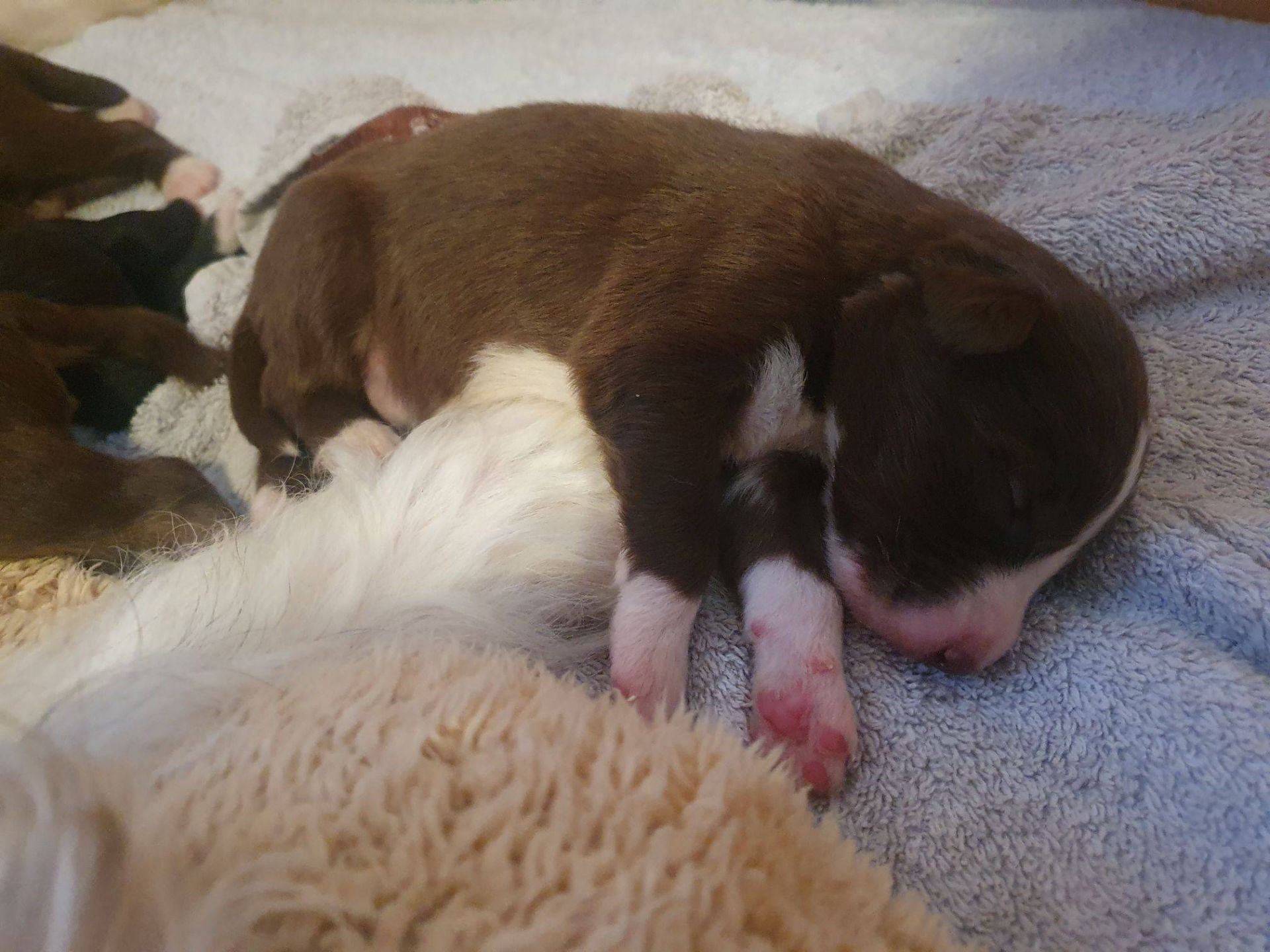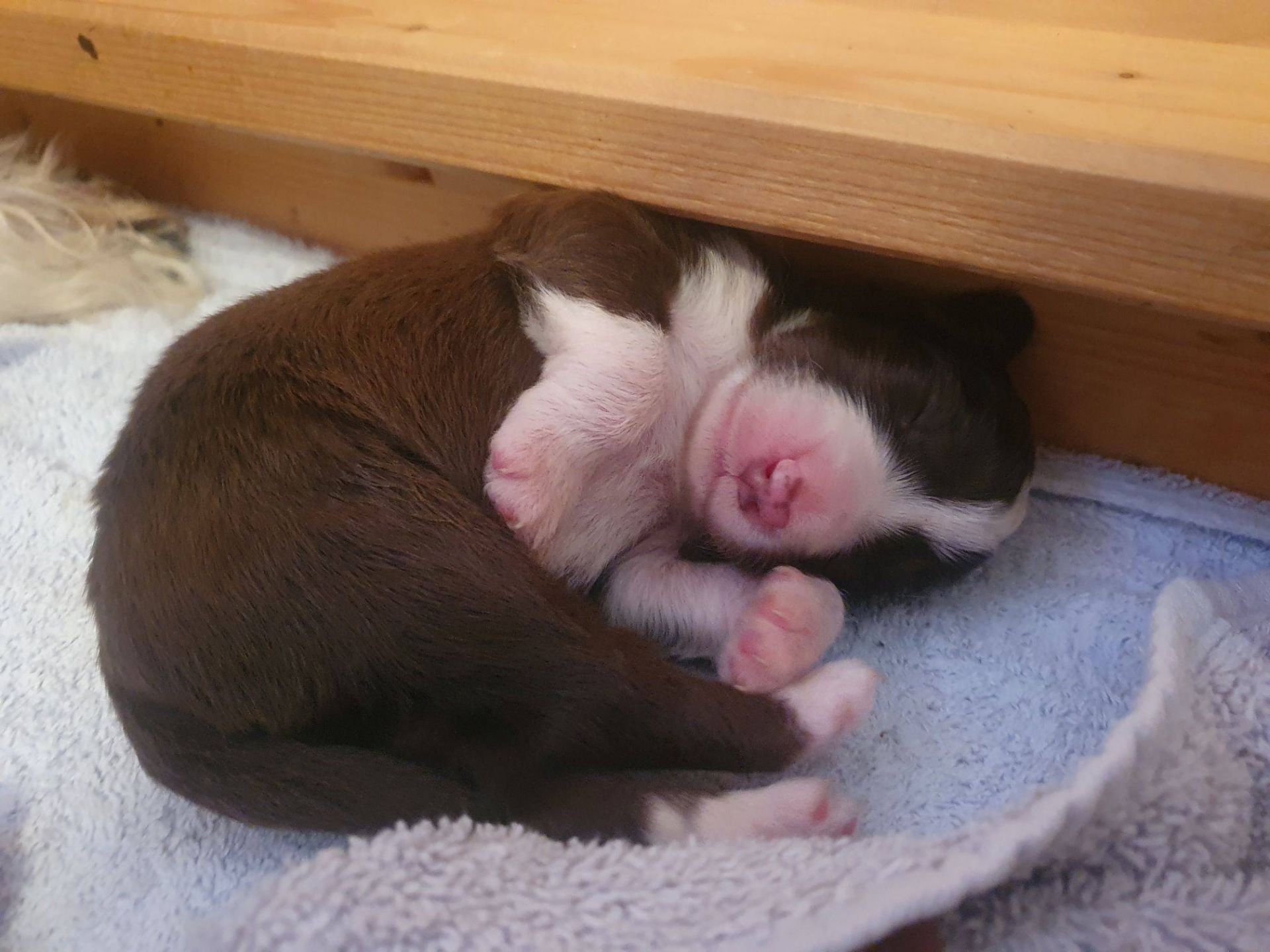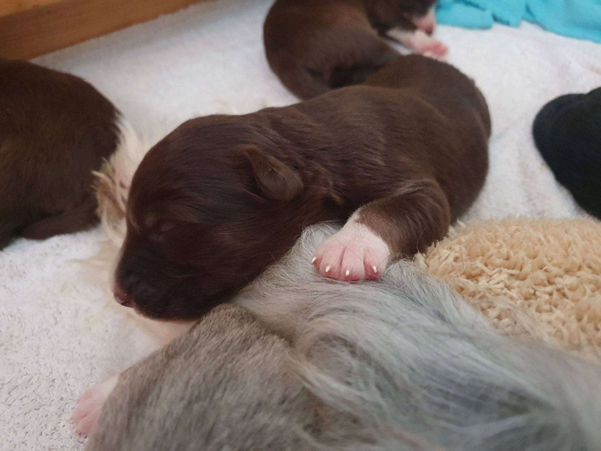 Blaze hält ihren 2-Stundenrythmus bei, liegt jetzt aber nach dem Säugen und Putzen außerhalb der Wurfbox. Tagsüber geht sie wieder mit ins Büro, dann erinnere ich sie, dass es wieder Zeit für die Babies ist. Nachts ist es andersrum, da weckt sie mich :-) Man kann die Uhr danach stellen.