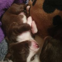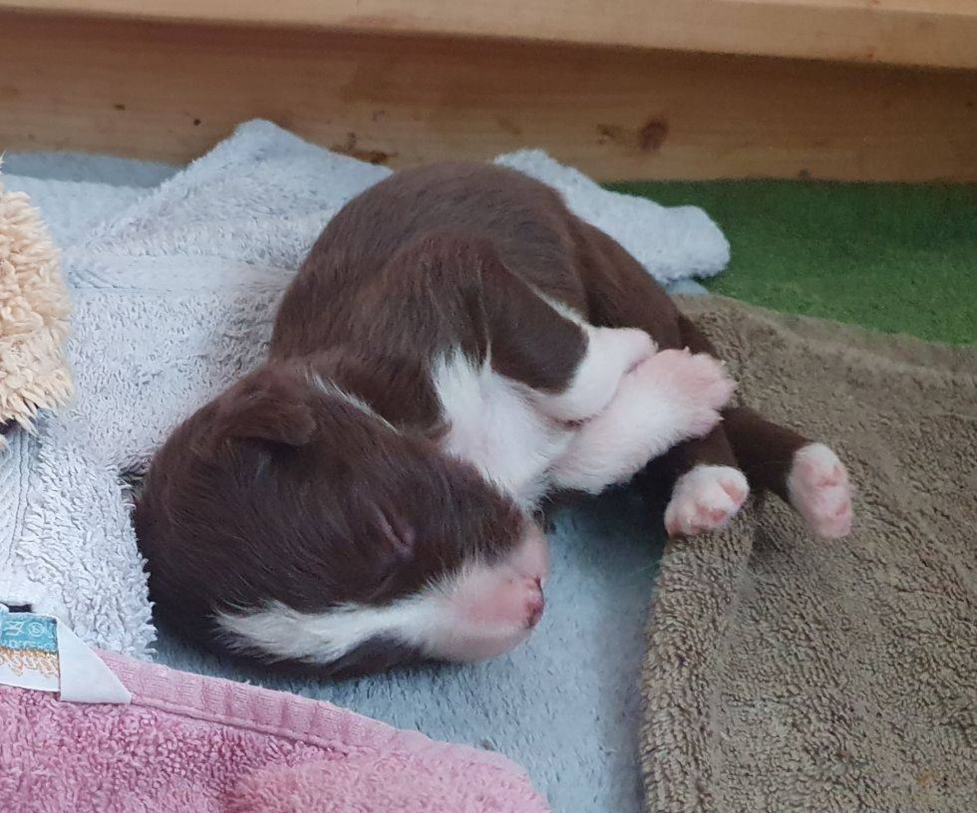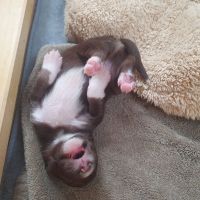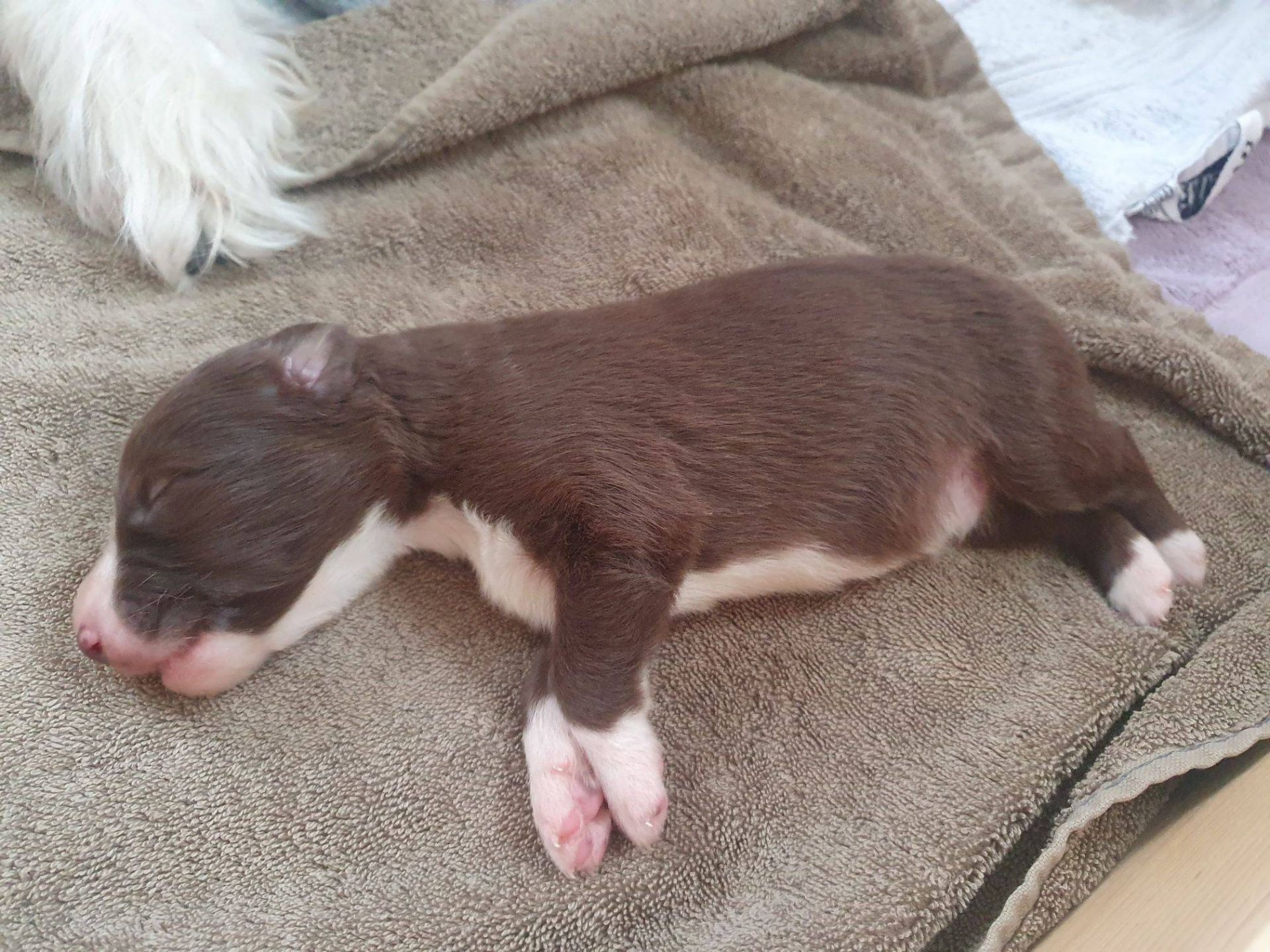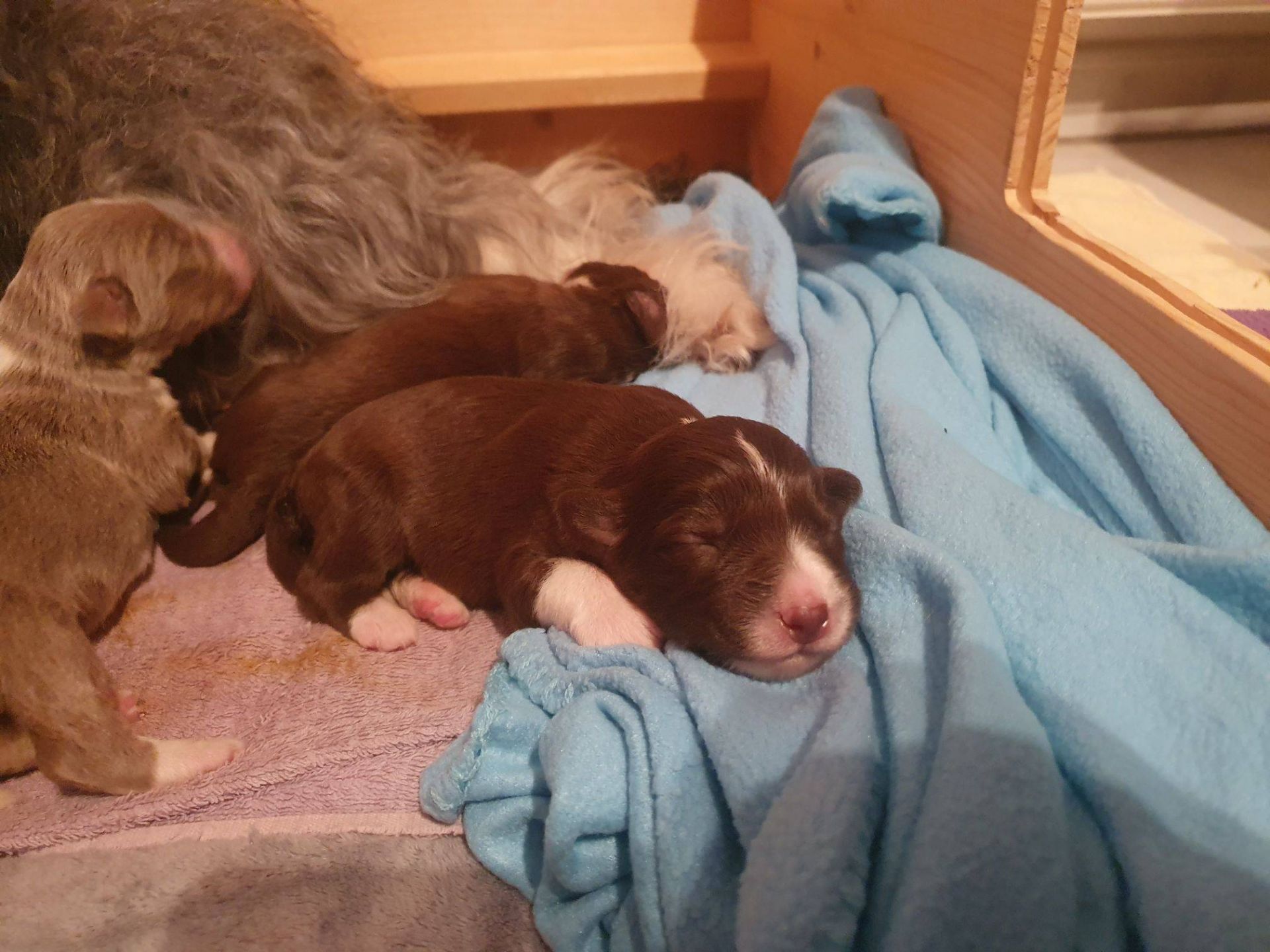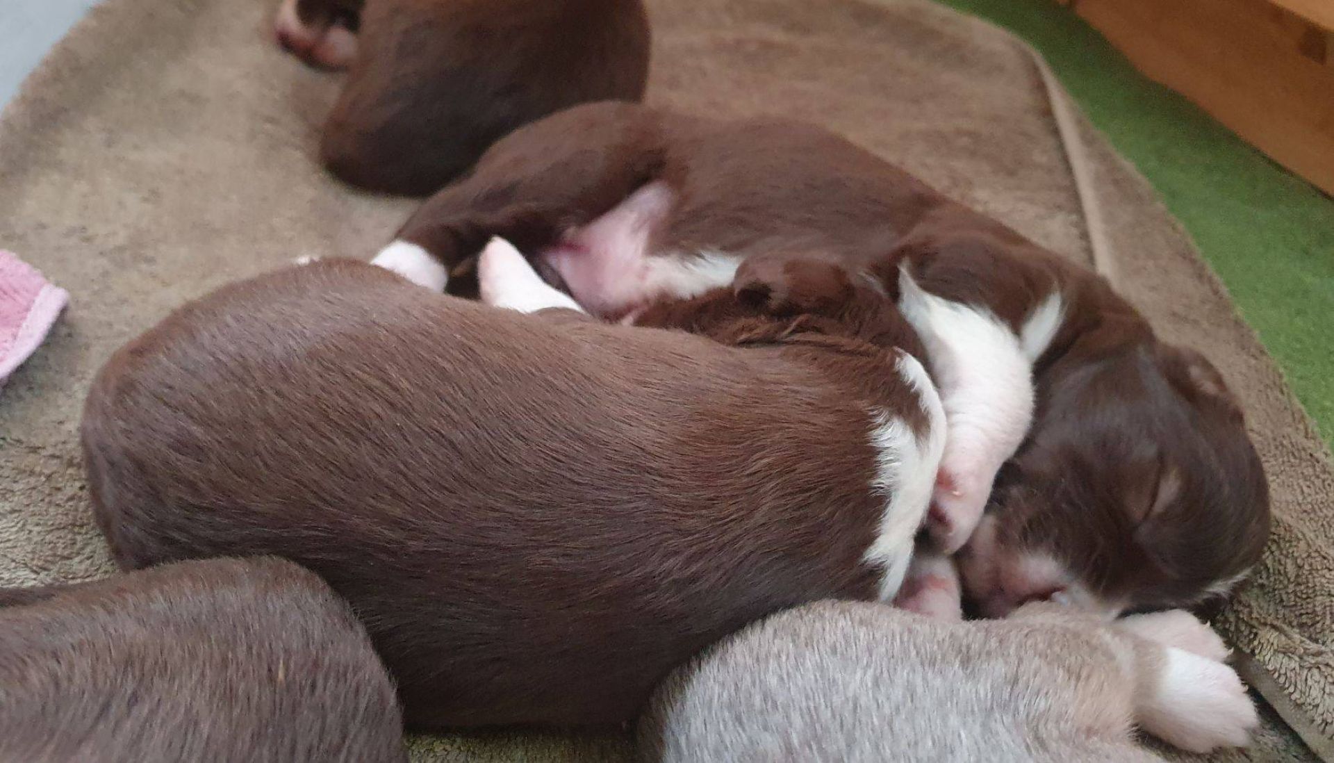 Blaze hält ihren 2-Stundenrythmus bei, liegt jetzt aber nach dem Säugen und Putzen außerhalb der Wurfbox. Tagsüber geht sie wieder mit ins Büro, dann erinnere ich sie, dass es wieder Zeit für die Babies ist. Nachts ist es andersrum, da weckt sie mich :-) Man kann die Uhr danach stellen.