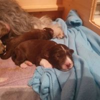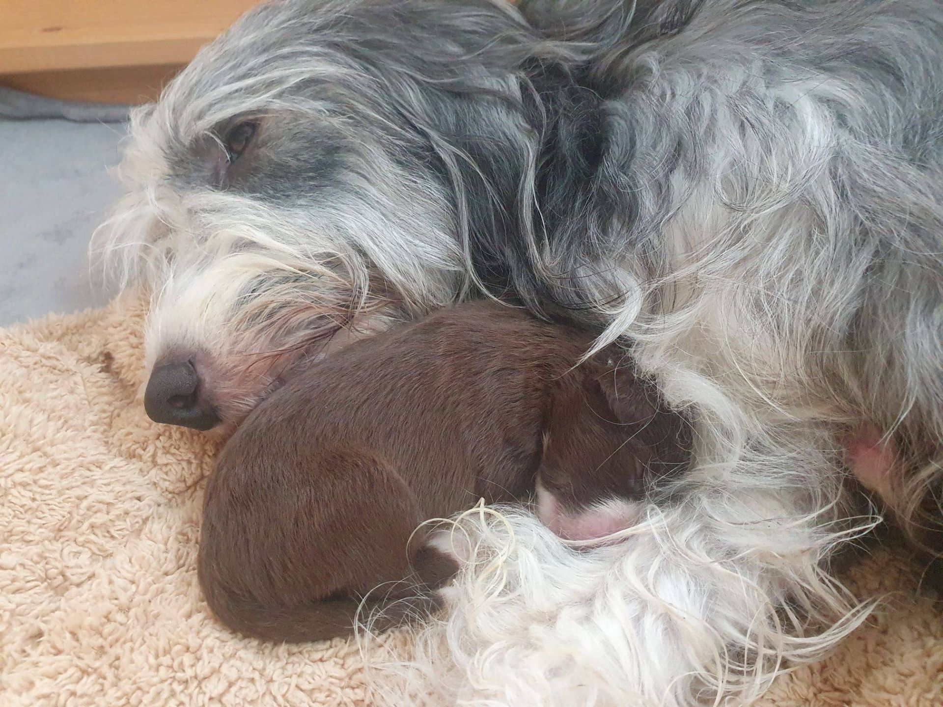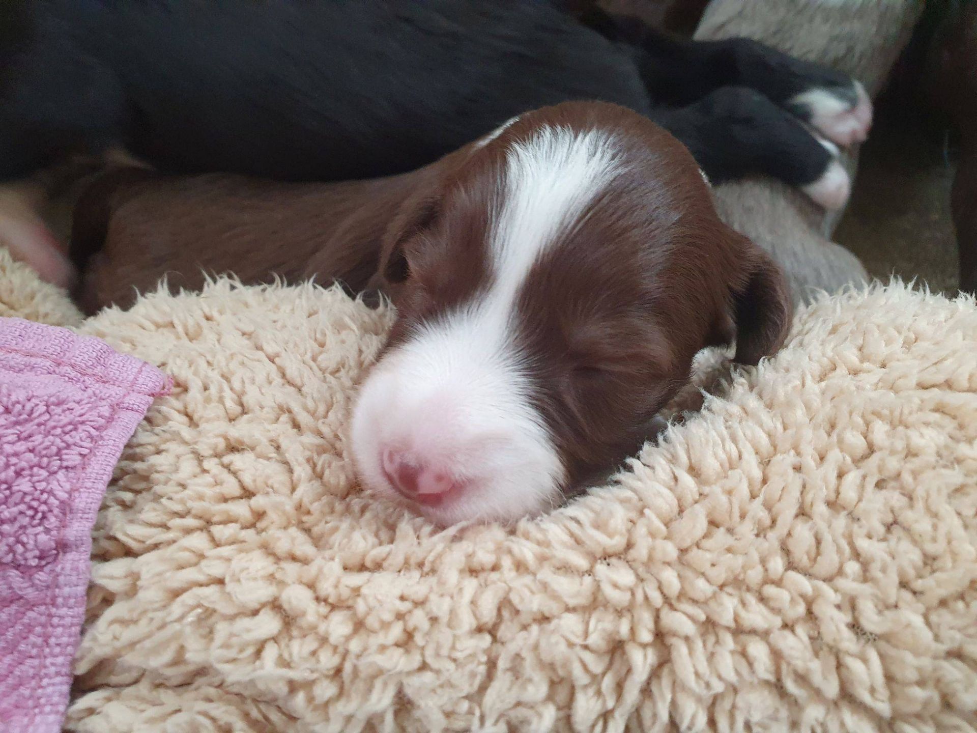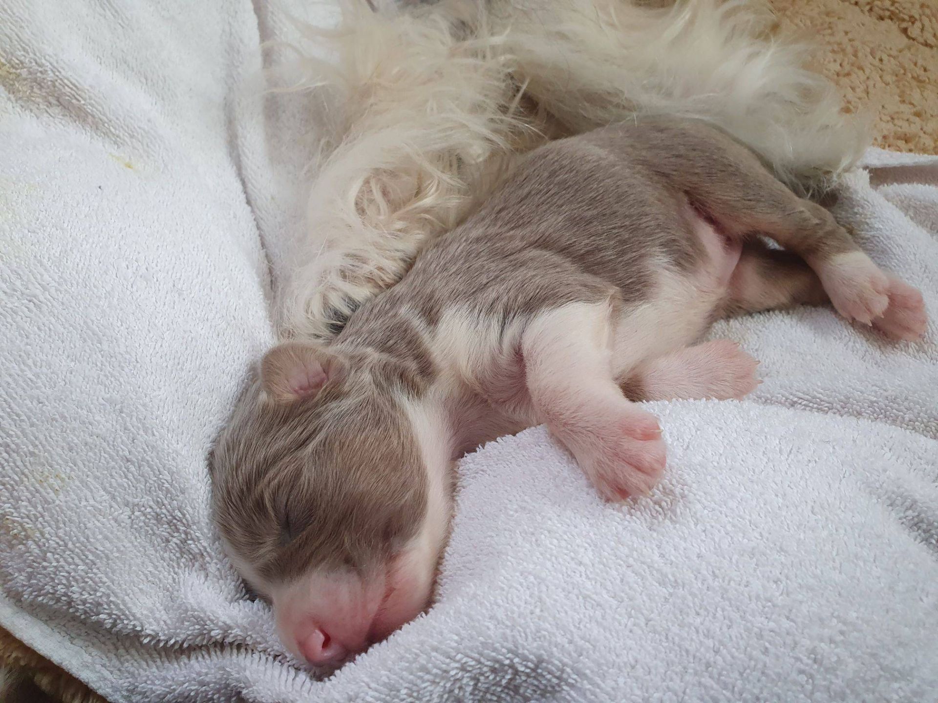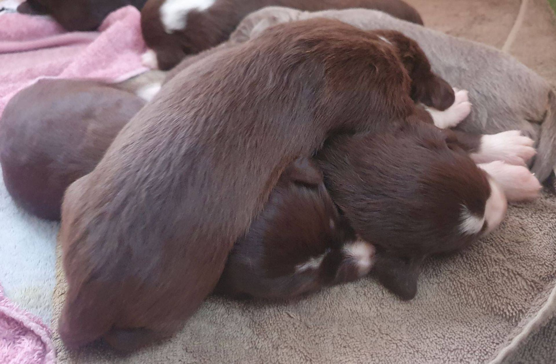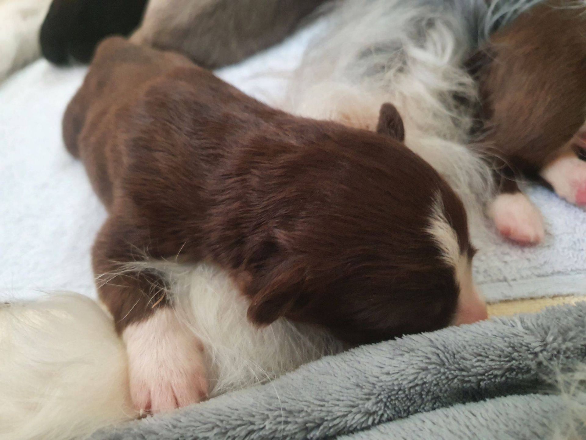 Blaze hält ihren 2-Stundenrythmus bei, liegt jetzt aber nach dem Säugen und Putzen außerhalb der Wurfbox. Tagsüber geht sie wieder mit ins Büro, dann erinnere ich sie, dass es wieder Zeit für die Babies ist. Nachts ist es andersrum, da weckt sie mich :-) Man kann die Uhr danach stellen.