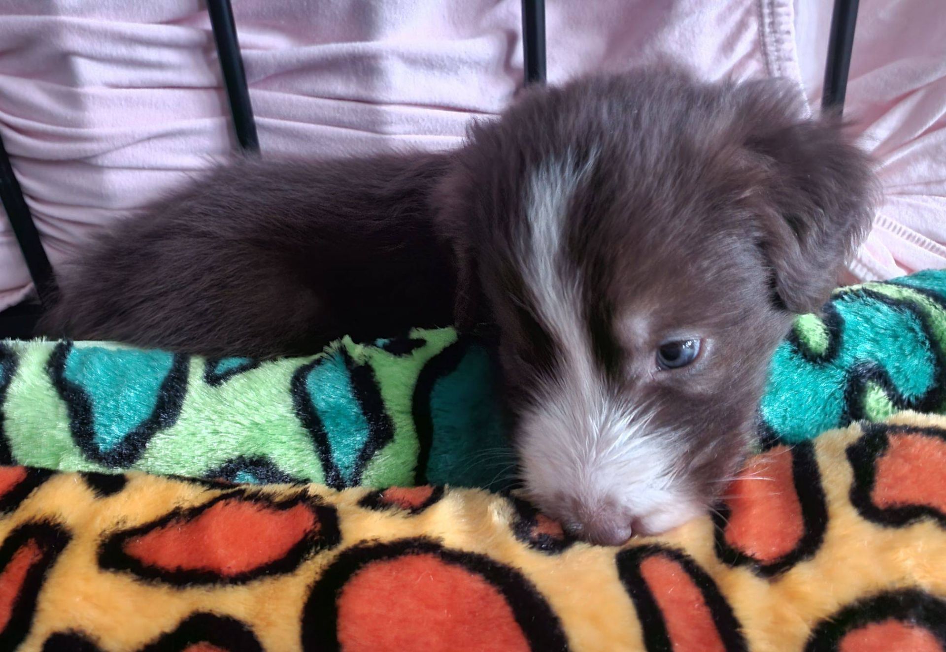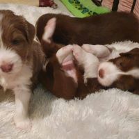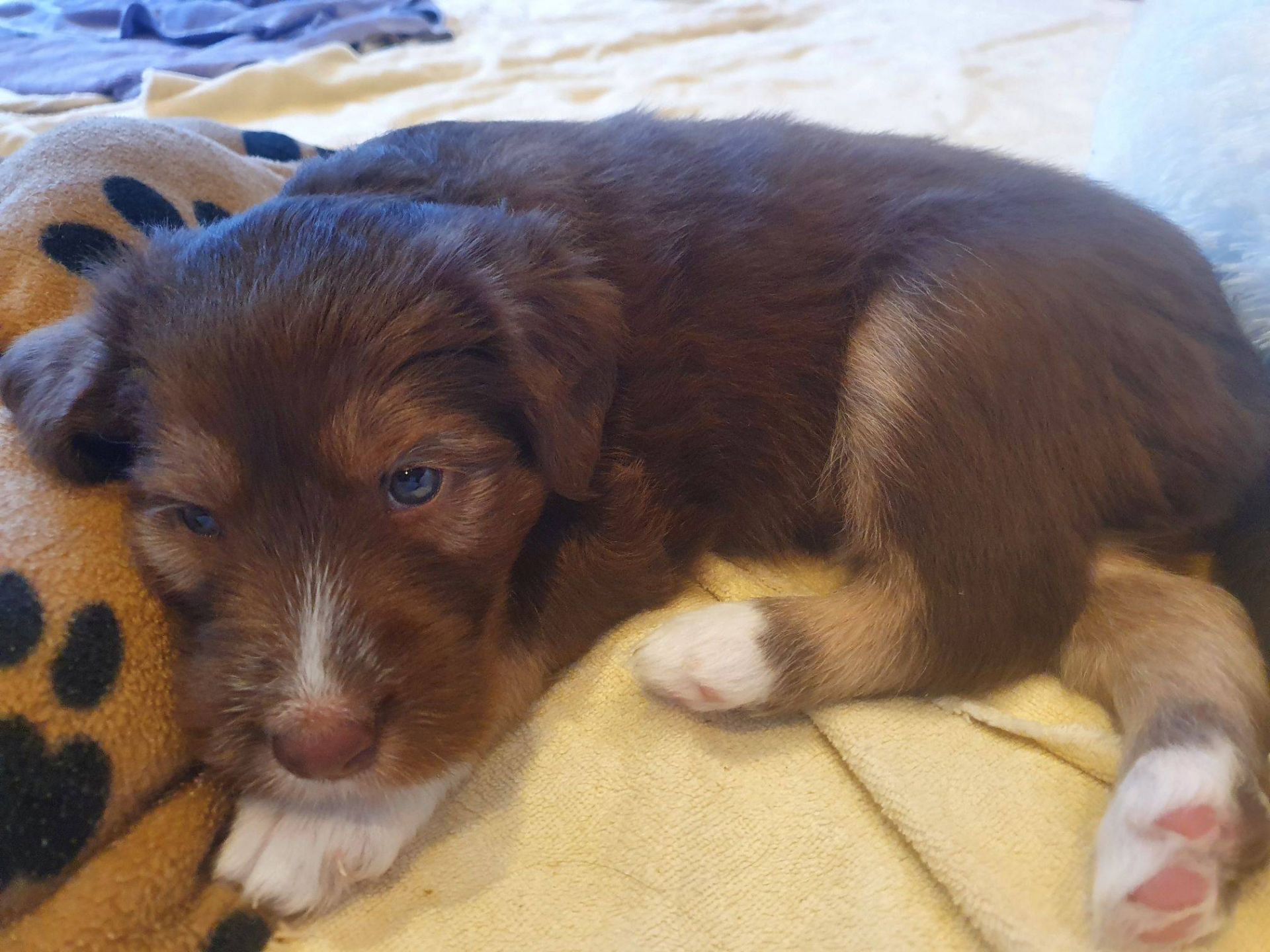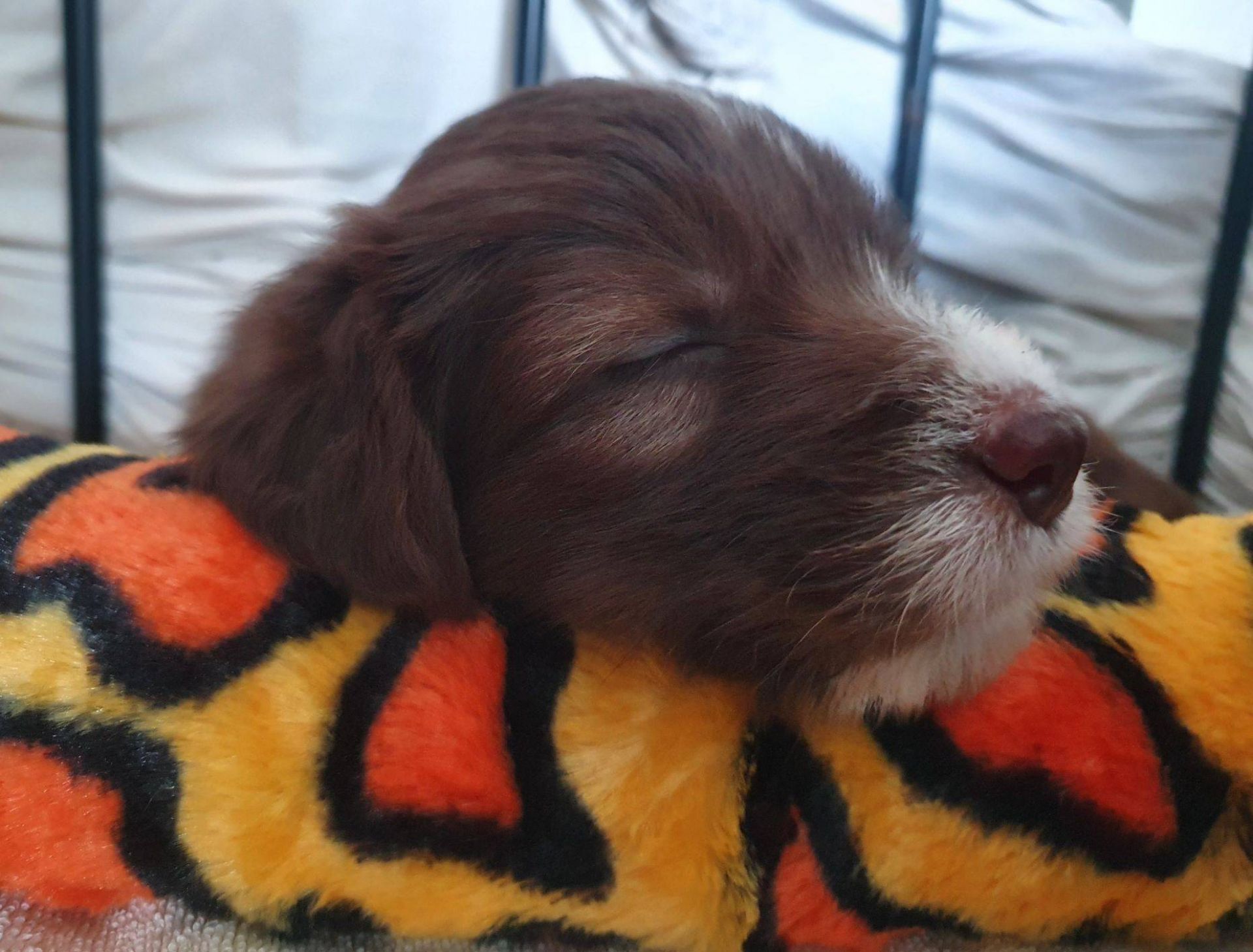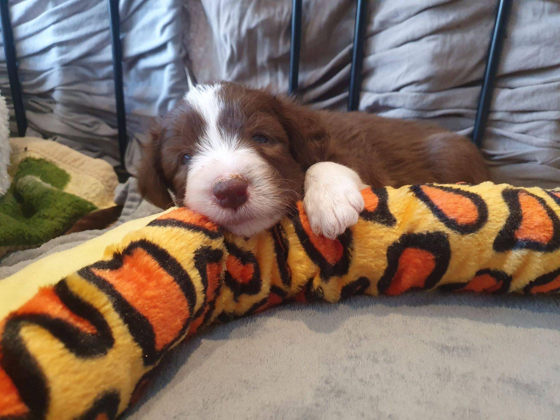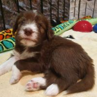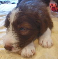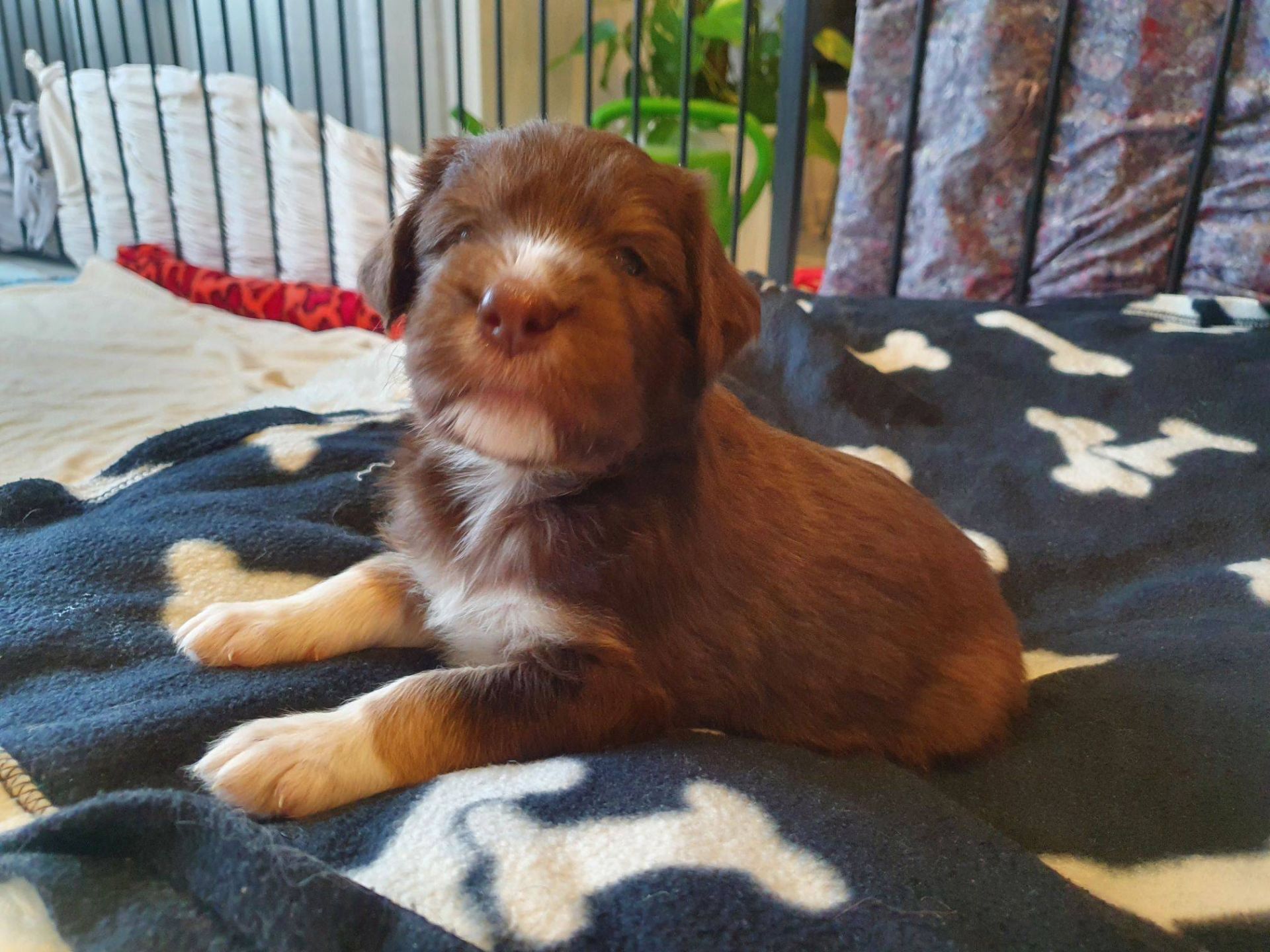 Die Babies schlafen nach wie vor im Welpenzimmer. Da Blaze nachts nicht mehr säugt, bekommen sie ihre letzte Mahlzeit gegen 21:30 Uhr mit anschließendem Nachtisch bei der Mama. Kurz darauf fallen sie in den Tiefschlaf. Wir tragen sie dann unter den wachsamen Augen der Mama in ihre Welpenkiste. So gewöhnen sie sich schon an einen Rhytmus und schlafen tatsächlich bis 06:00 Uhr morgens durch. Und ich kann in Ruhe das Schlachtfeld im Auslauf putzen :-)