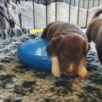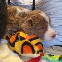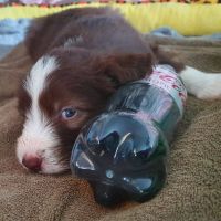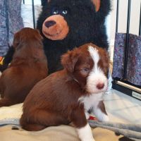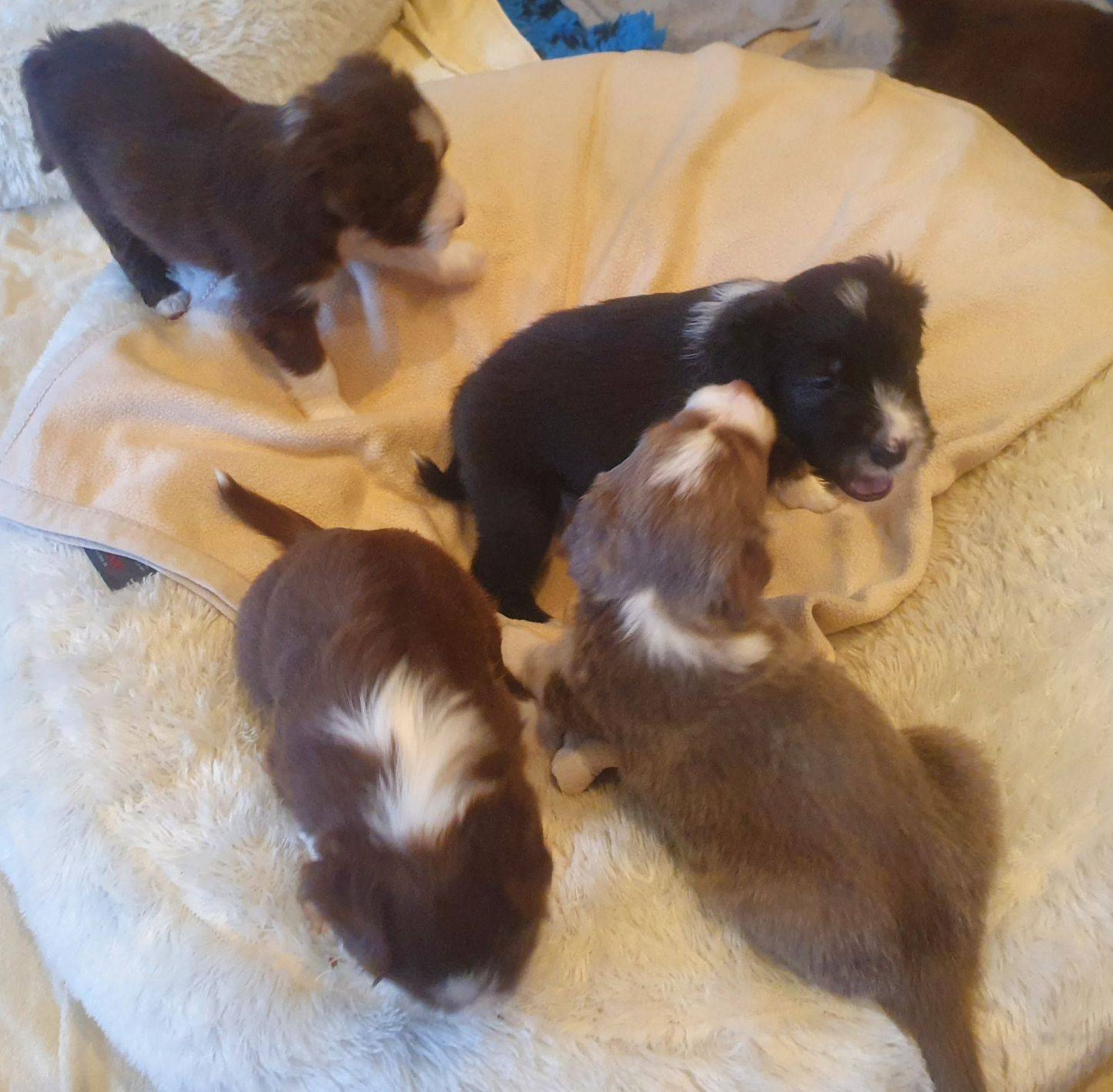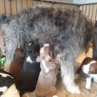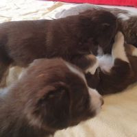 Die Zähne sind jetzt bei allen so ziemlich durchgebrochen und man spürt sie, wenn sie zubeissen. Das merken auch die Geschwister untereinander. Was vorher ein Rumnuckeln und Kauen war, tut jetzt weh. Teilweise geht es hoch her, Blaze hat das aber mega im Griff. Sie schaut genau, wer übertreibt und derjenige wird dann gemaßregelt. Sie zieht den gezielt raus und das mit so einer Ruhe und Sicherheit - man kann nur dabei sitzen und lernen. Teilweise lässt sie es auch laufen. Für uns nicht immer erkannbar, warum jetzt das und was anders nicht. Jedenfalls haben die Welpen Respekt vor ihr. Wenn sie kommt, geht es gesittet und anständig zu, denn wenn sie eins nicht leiden kann, dann ist das Unruhe.