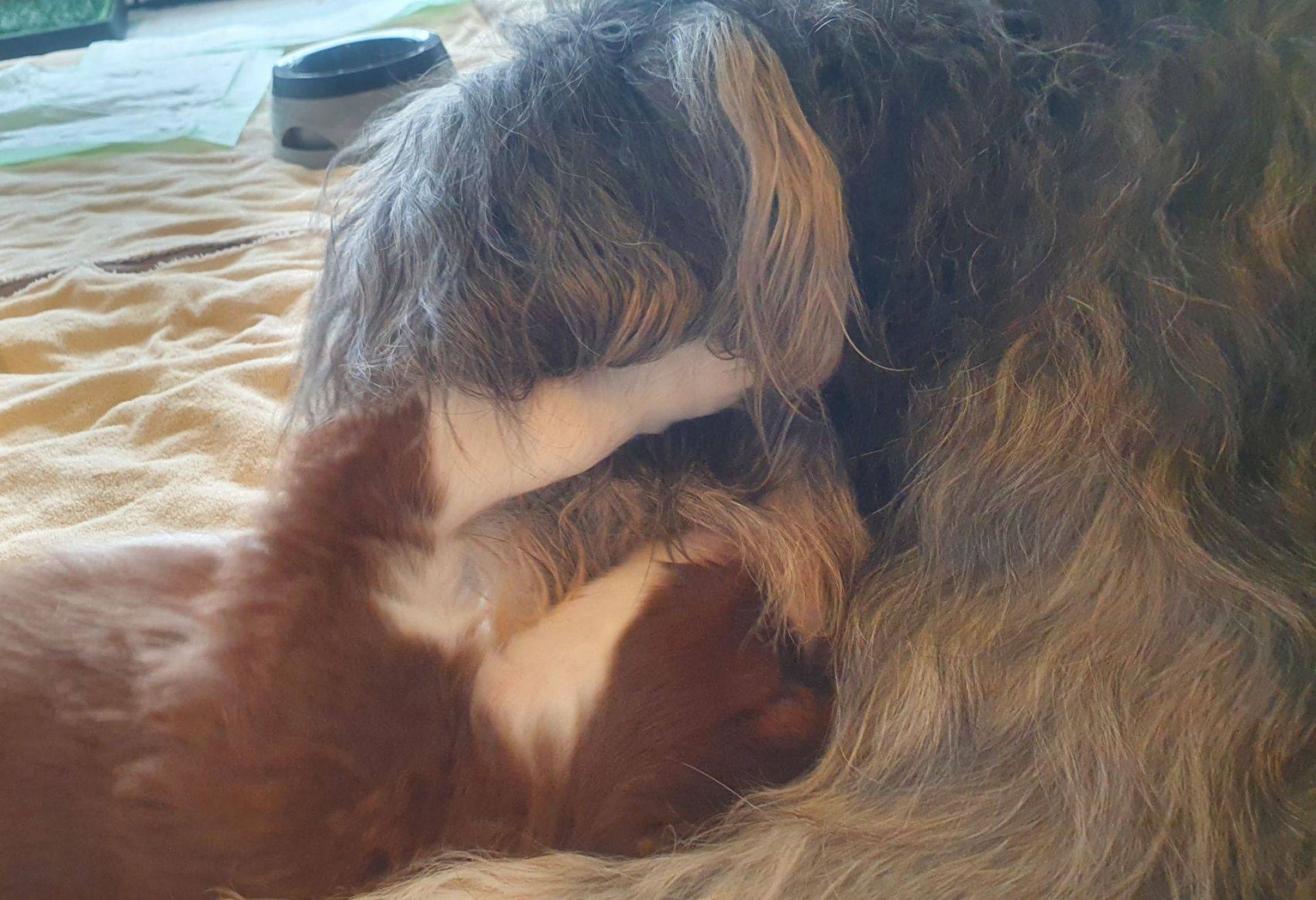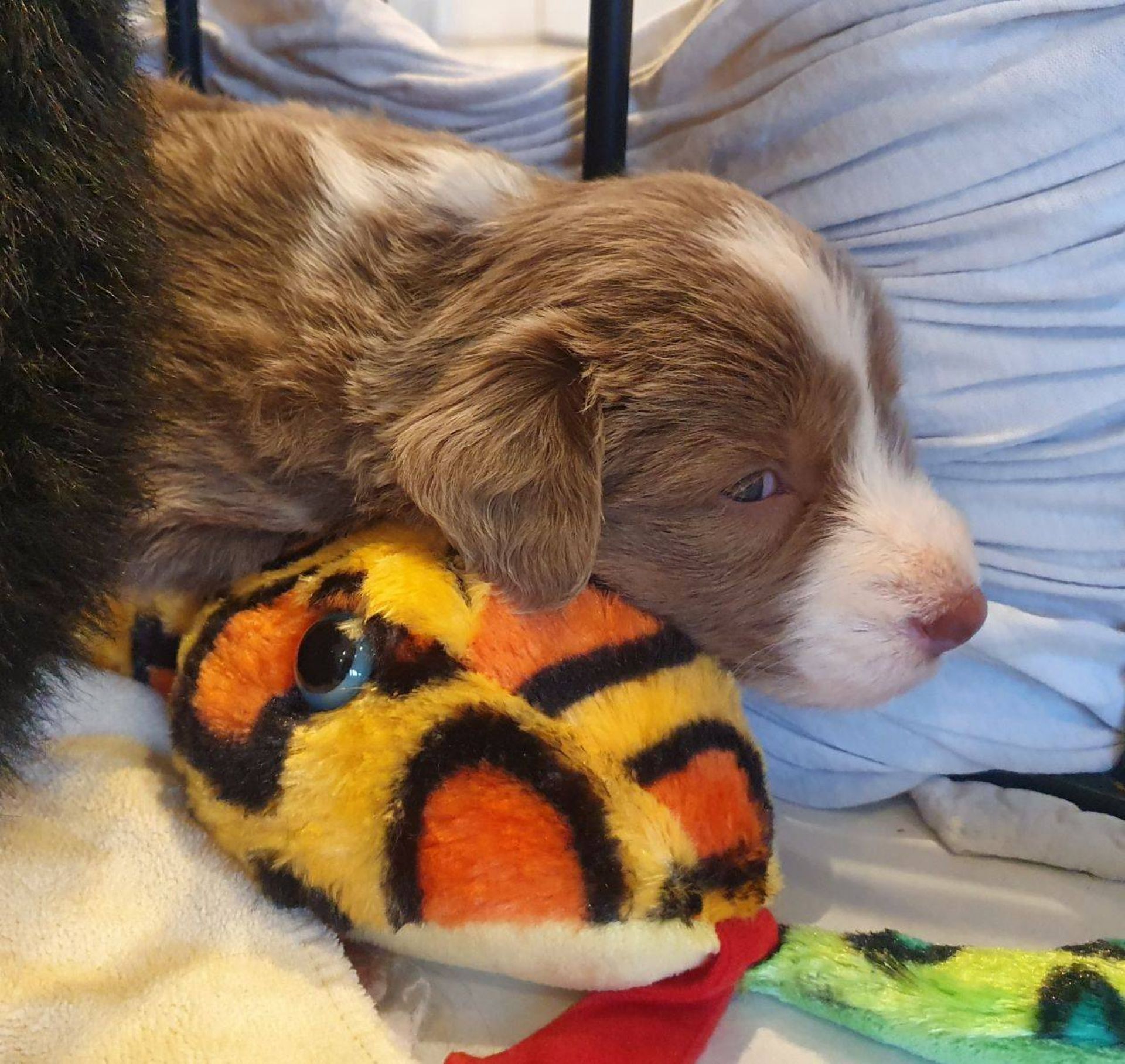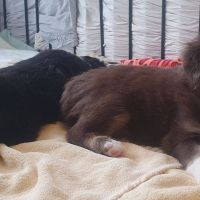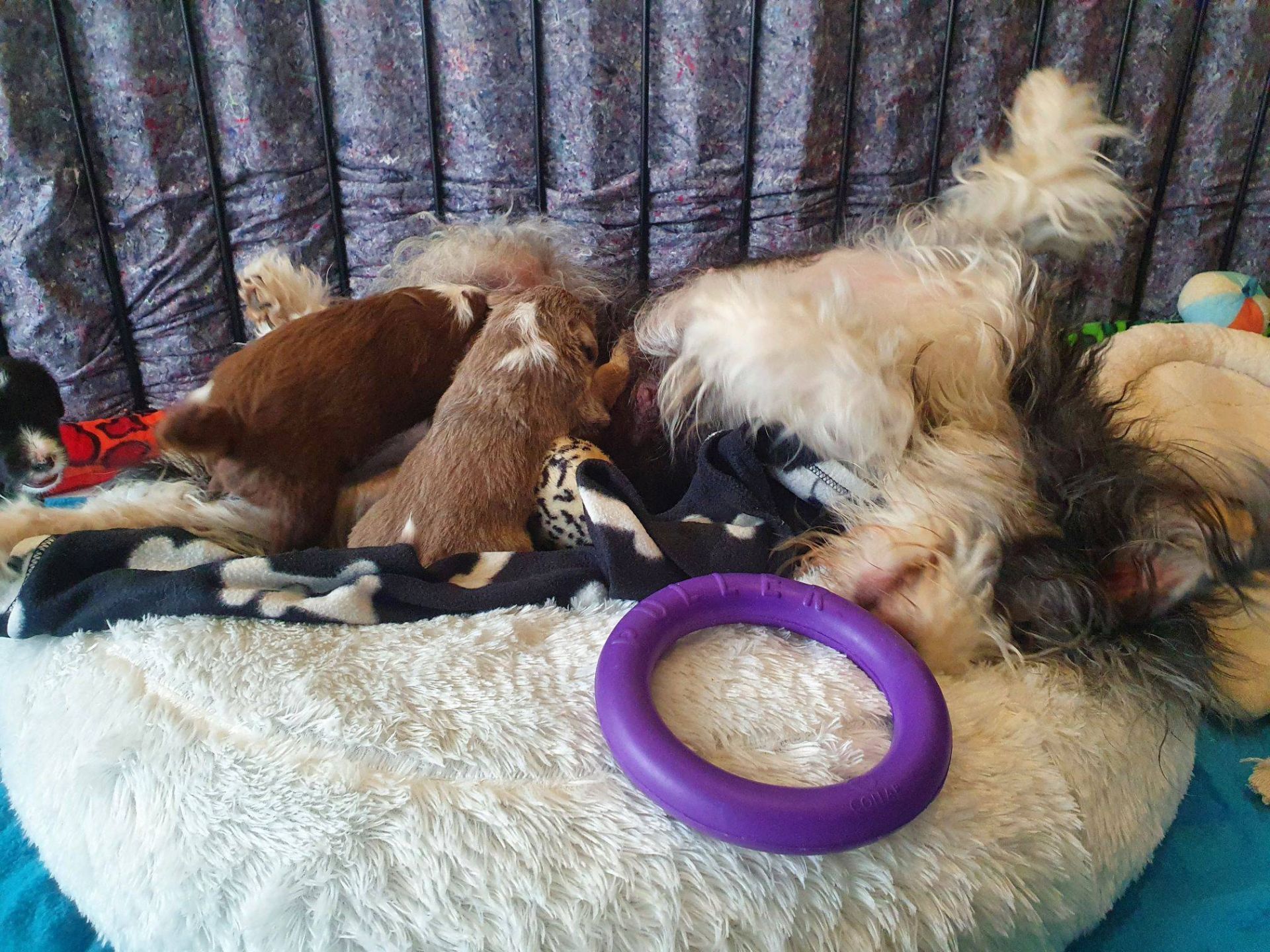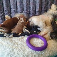 Es ist wieder Ruhe eingekehrt. Die Babies spielen ganz lieb miteinander, es wird sich zwar auch gekabbelt aber sie sind sich ganz schnell einig. Auch Blaze hat weniger zu tun. Sie isst die Reste, schaut, ob alles sauber ist, putzt die Babies und legt sich einfach zu ihnen. Entweder schläft sie oder spielt mit ihnen. Ab und zu wird noch kontrolliert, ob auch alle anständig sind aber auch das hat sie durchgesetzt. Selbst die 2 Aufsäßigen sind jetzt so, wie sie sie gerne haben wollte :-)