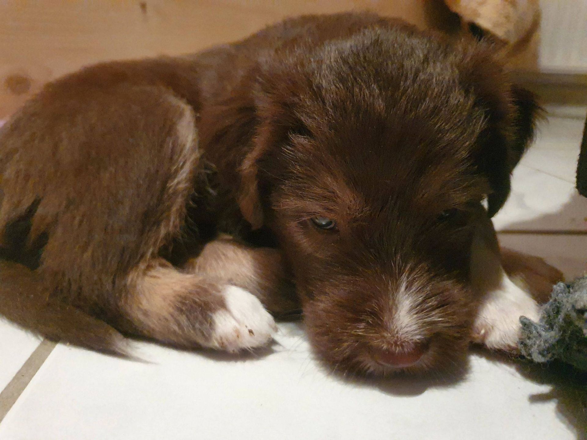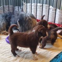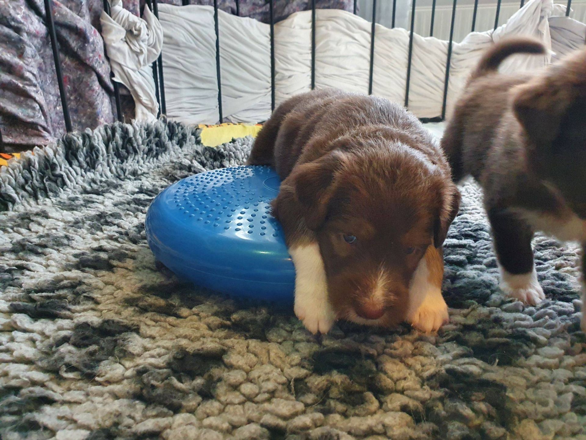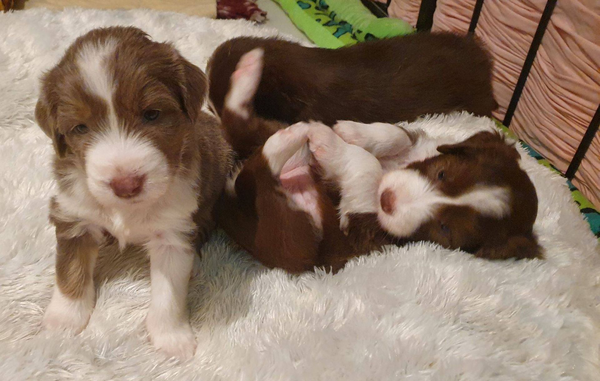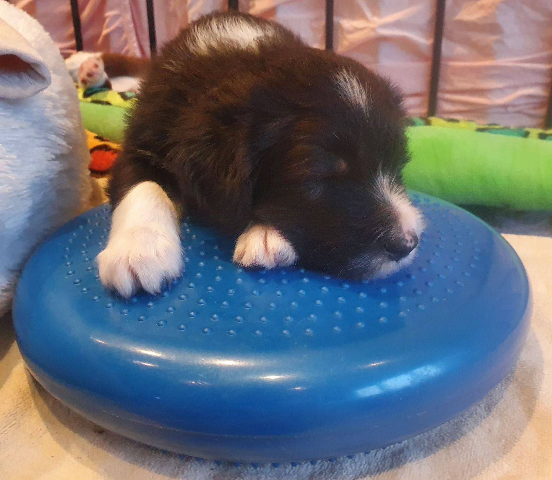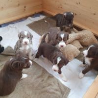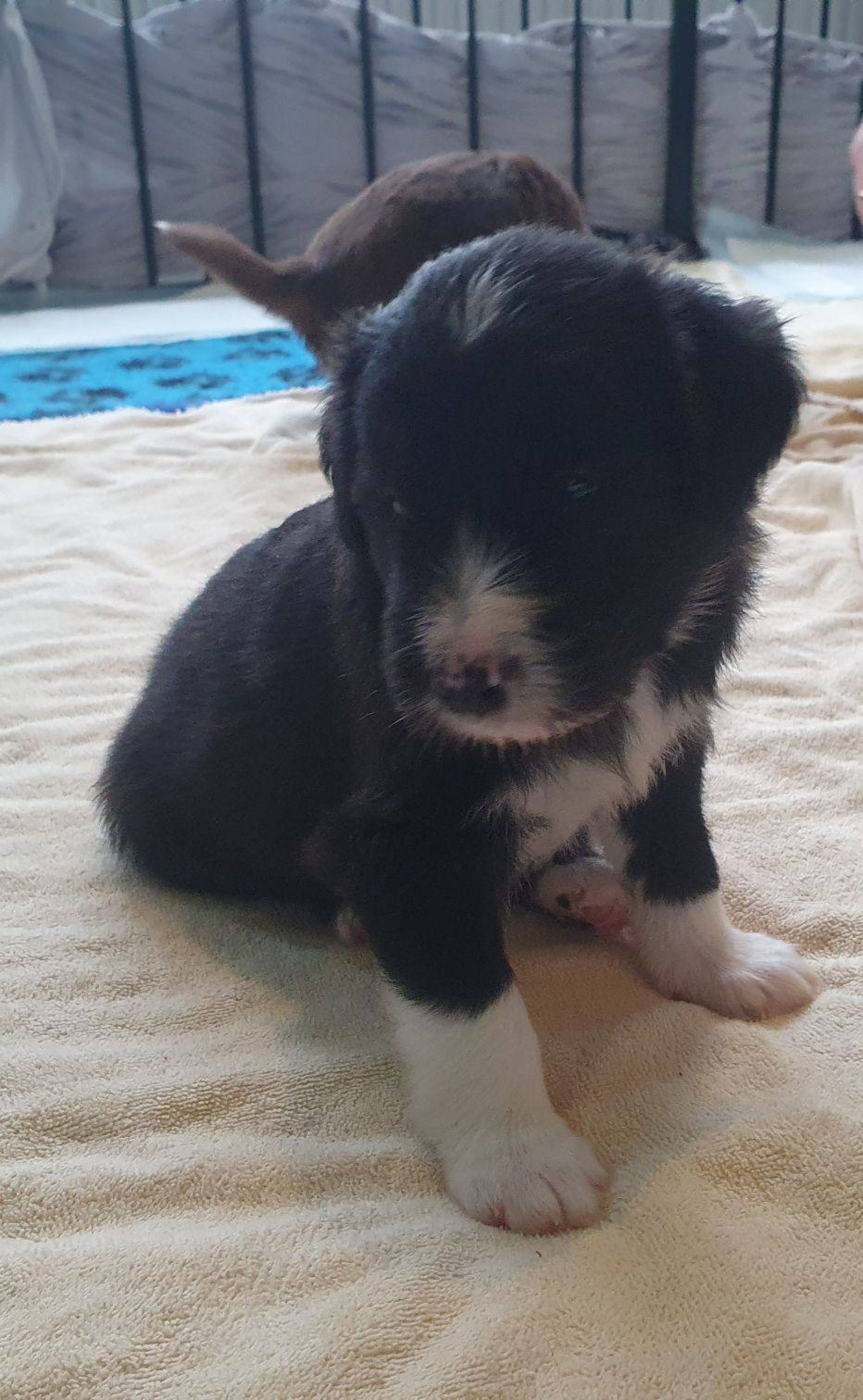 Die Babies haben ihre erste Schritte aus dem Welpenzimmer in den Auslauf gewagt. Seither haben wir sie rübergetragen. Sie blieben erst mal skeptisch an der Türe stehen, haben sich dann aber so nach und nach getraut. Das ist aber auch eine lange Strecke.