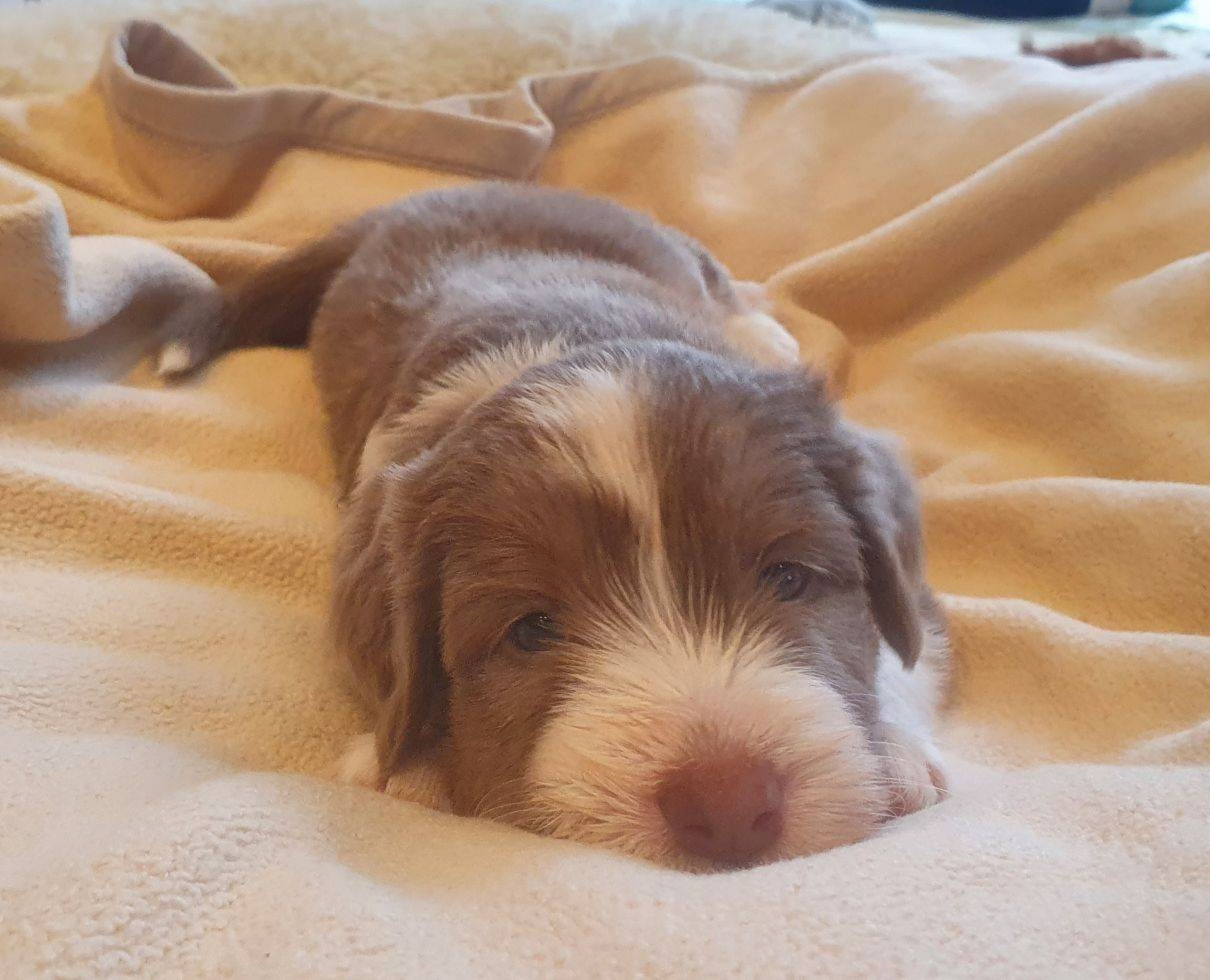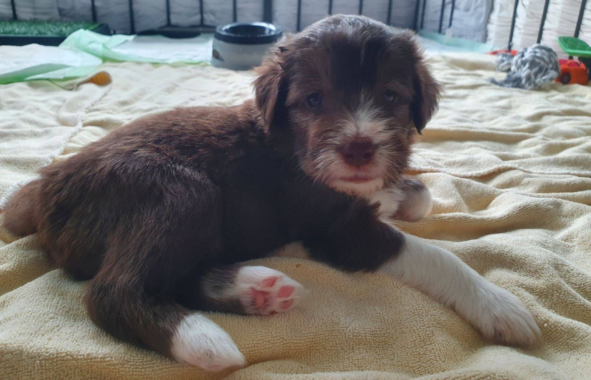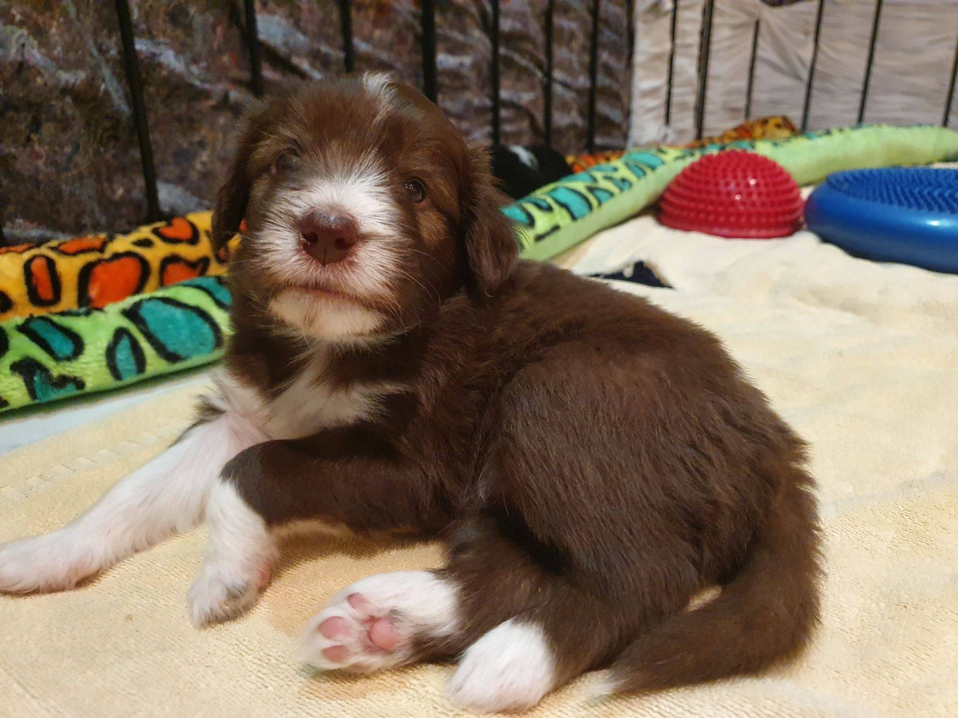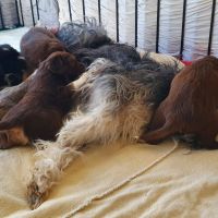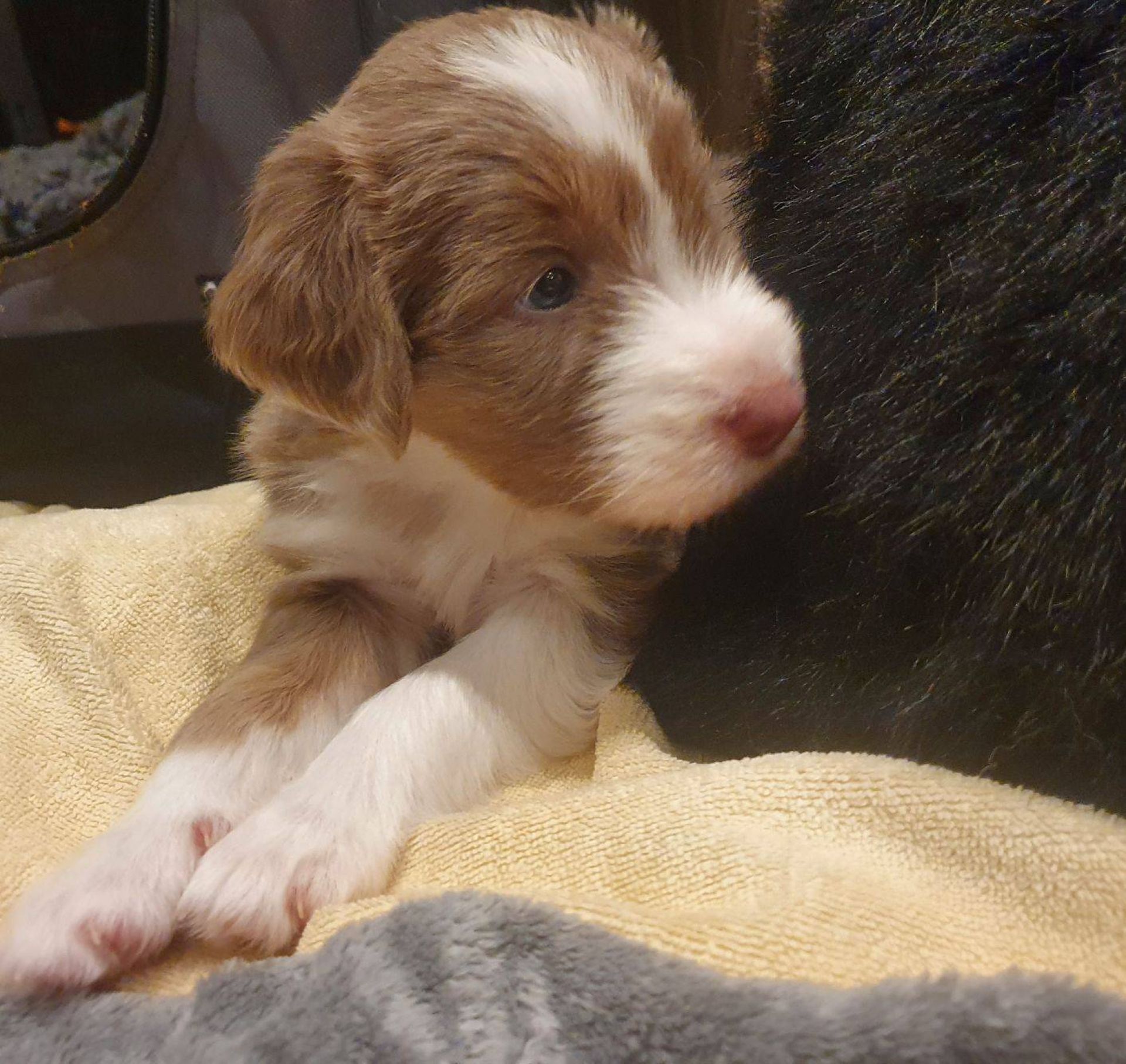 Die Babies haben ihre erste Schritte aus dem Welpenzimmer in den Auslauf gewagt. Seither haben wir sie rübergetragen. Sie blieben erst mal skeptisch an der Türe stehen, haben sich dann aber so nach und nach getraut. Das ist aber auch eine lange Strecke.