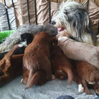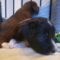 Gestern war irgendwie so was wie ein Meilenstein in der Entwicklung der Welpen. Es war schon echt krass, wie schnell die Stimmung gekippt ist, wenn einer angefangen hat, die Zähne einzusetzen. Ich hab dann Blaze dazugeholt, um zu sehen, wie sie reagiert. Sie hat es laufen lassen. Zwar kontrolliert aber war dabei gelassen. Also habe ich mich auch rausgehalten. Sie müssen einfach lernen, ihre Zähne dosiert einzusetzen und dazu eignen sich nun mal ihre Geschwister. So hart sich das auch anhört. Allerdings fordert Blaze Respekt und das auf eine Art… ich kann immer wieder nur staunen. Sie geht zu jedem Welpen, stupst ihn an, alle bis auf zwei, legen sich dann hin, drehen sich auf den Rücken, Blaze schleckt sie ab und geht dann. Bei diesen Zweien, die das nicht tun, bleibt sie dran. Fordert es konsequent ein, dass sie sich hinlegen aber das reicht ihr nicht. Sie stups und schaut, ob sie auch liegen bleiben. Tun sie das nicht, wird es zu Ende diskutiert. Und das so ruhig und bestimmt - es ist faszinierend. Heute gibt es zwar auch ab und zu ein Gerangel aber es geht sehr viel ruhiger zu und einer der Welpen geht dann, wenn es ihm zu viel wird und genau so soll es sein