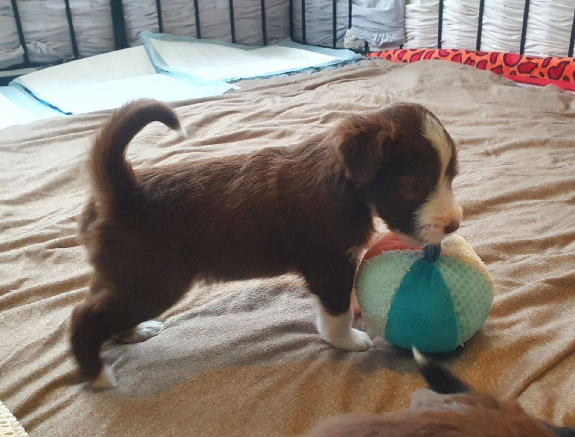 Die Wachphasen werden länger. Nach dem Fressen ist erst mal Party angesagt, alles unter genauer Beobachtung von Blaze. Wenn es ihr zu wild wird, schreitet sie ein und geht dazwischen, spielen die Babies lieb, lässt sie es laufen. Es ist faszinierend. Ich sitze da und lerne, auch ihr zu vertrauen, denn sie korrigiert auf eine andere Art als Pebbles zum Beispiel, die geknurrt hat. Blaze legt ihren Fang um den Nacken, schubst den Welpen um und das macht sie so lange, bis er Ruhe gibt oder sich trollt. Dann ist wieder alles gut und sie fordert ihn zum Spiel auf.