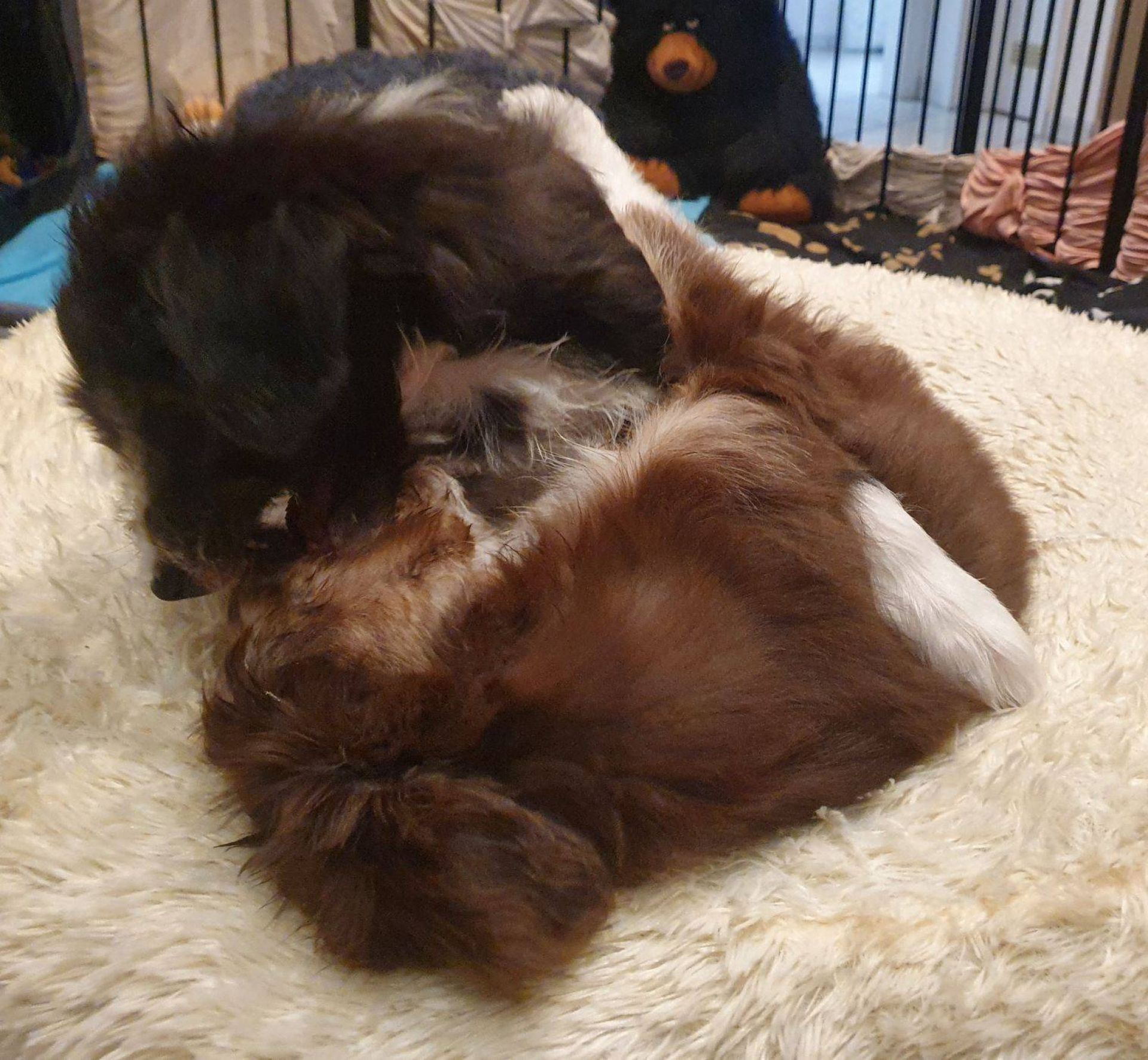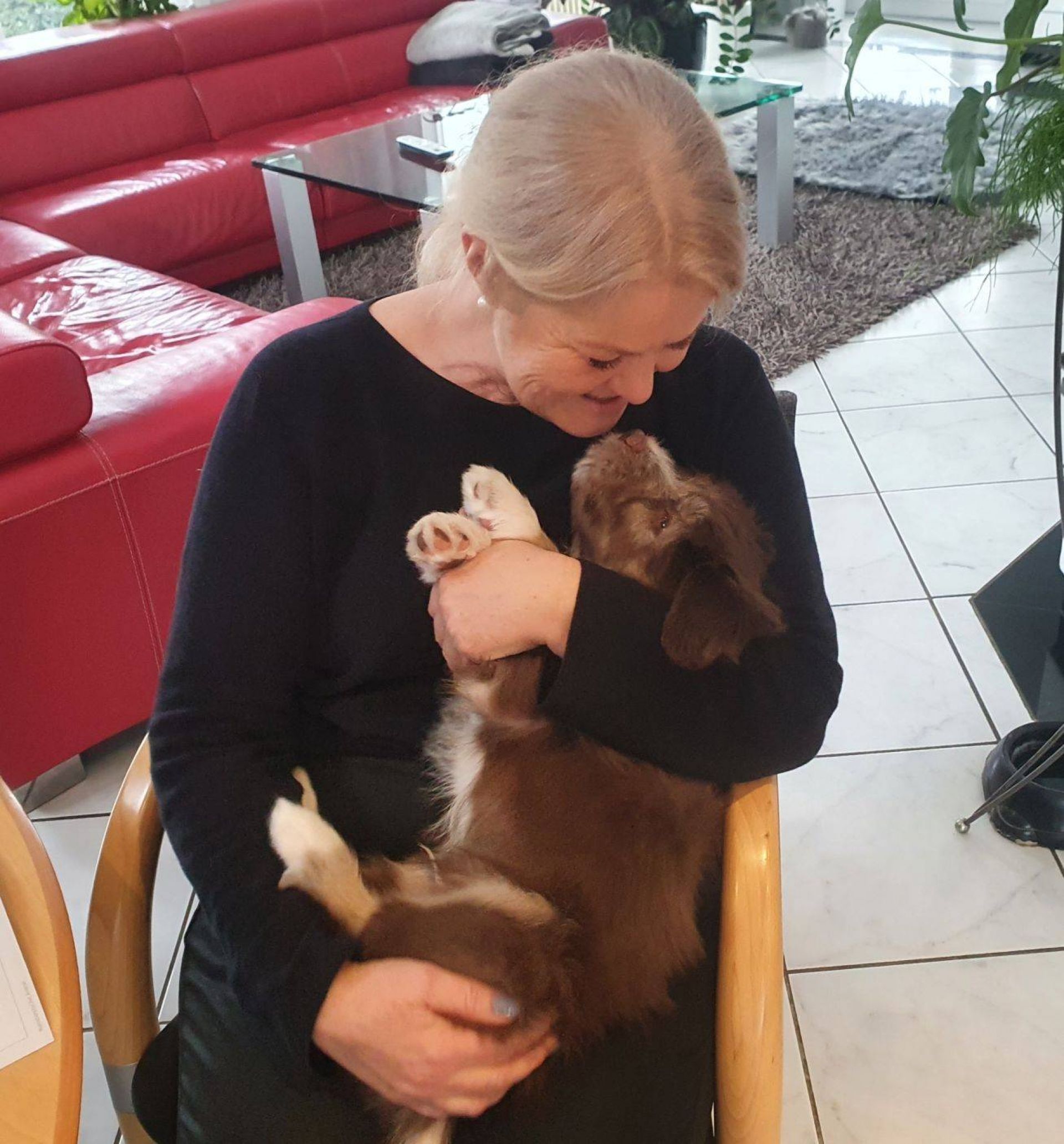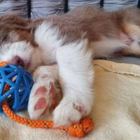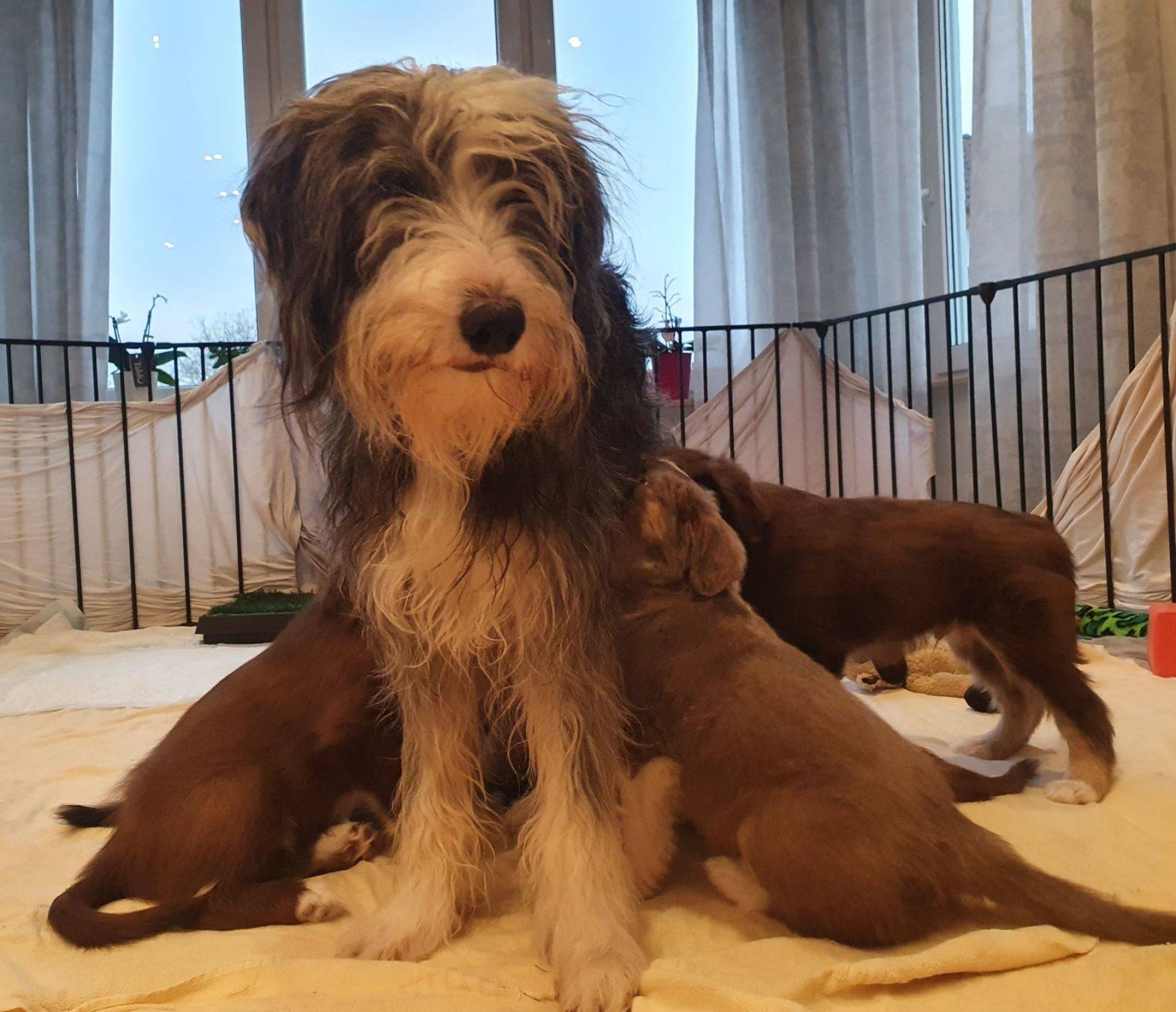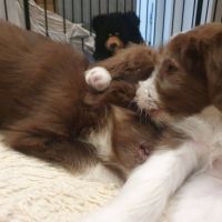 Gestern war Cleon zu Besuch. Wie jeden Tag seit seinem Auszug, Blaze hat ihn seit Freitag zum ersten Mal wieder gesehen und sich so gefreut, dass sie richtige Luftsprünge gemacht hat. Die anderen Welpis waren erst Mal abgeschrieben :-) Sie ist die beste Mami auf der Welt, mein Herz läuft über. Ich weiss nicht, ob es möglich ist, sie noch mehr zu lieben als ich es eh schon tue.