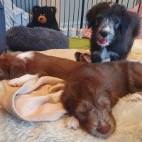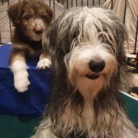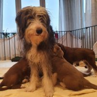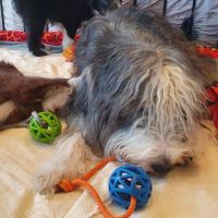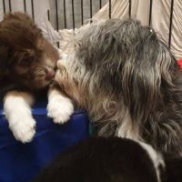 Heute sind Cody und Cleo zu ihren neuen Menschen umgezogen. Cody gehen zu lassen, war für mich besonders schwer. Mein geliebtes Flaschenkind, das mit ständig am Rockzipfel hing und so sanft schmusen kann. Seine neuen Besitzer haben es für Blaze leicht gemacht, sind in die Hocke, damit sie sich richtig verabschieden konnte. Sie hat ihn noch einmal geputzt, sich die Menschen angeschaut und dann war es ok für sie und auf ihre Einschätzung kann man sich verlassen. So hat sie es bei allen anderen Babies auch gemacht, die bereits ausgezogen sind. Clairechen ist am Freitag nach Weiblingen gezogen. Von daher war es nicht ganz so hart, weil wir uns oft sehen können und sie eine ganz liebe Familie hat. Cleo zieht zur ihrer Tante Beamy und noch zwei weiteren Beardies. Da flossen bei Jochen die Tränen, sein kleines Mäuschen. Leider können wir sie nicht alle behalten aber durch die ganzen Videos und Bilder, die wir schon vom neuen Zuhause bekommen haben, wurde der Abschiedsschmerz erträglicher. Alle wurden liebevoll und herzlich in ihren neuen Familien aufgenommen.