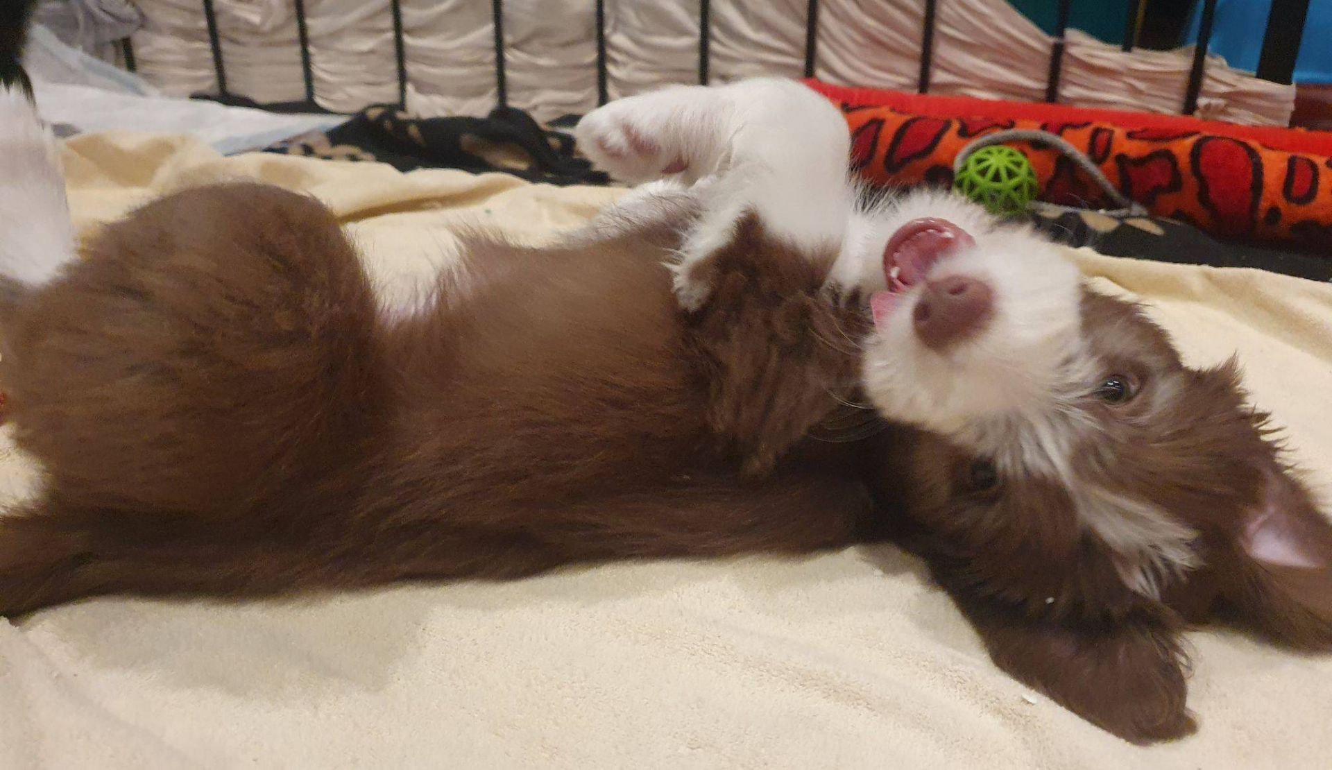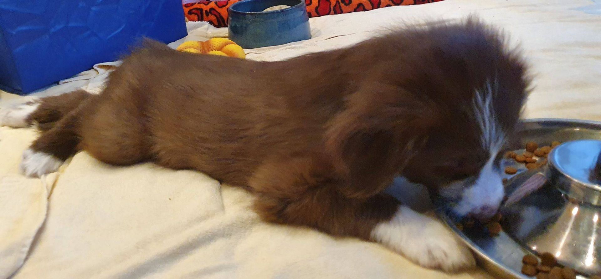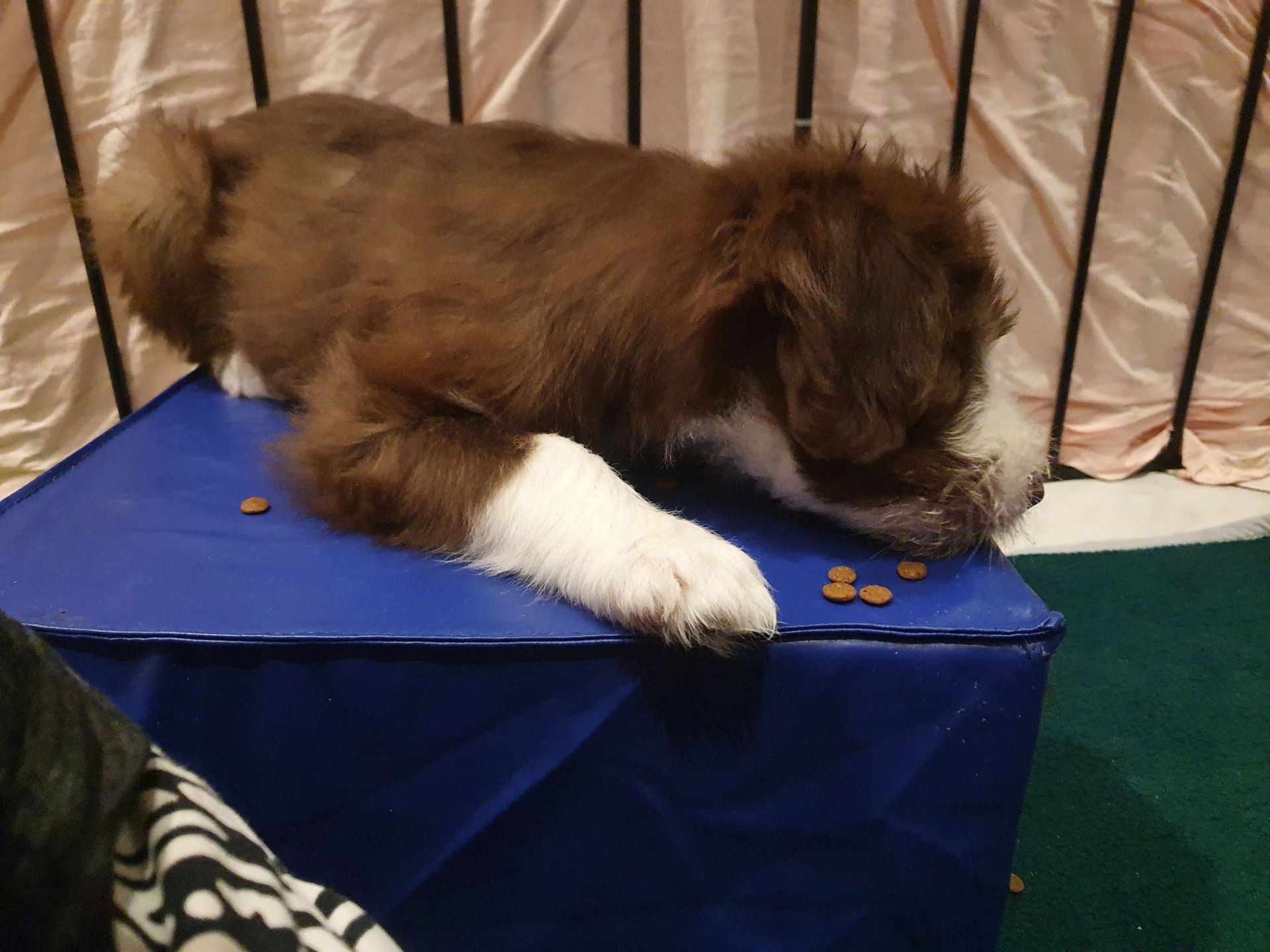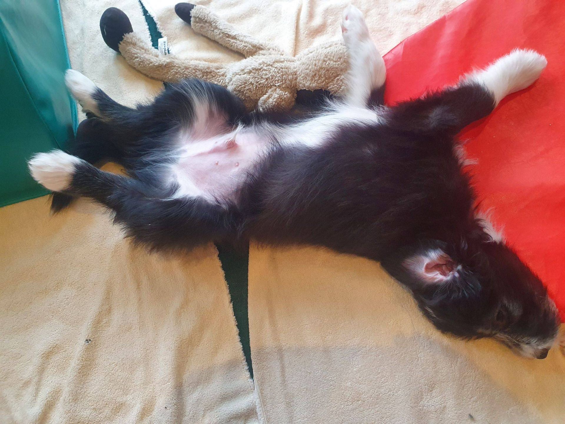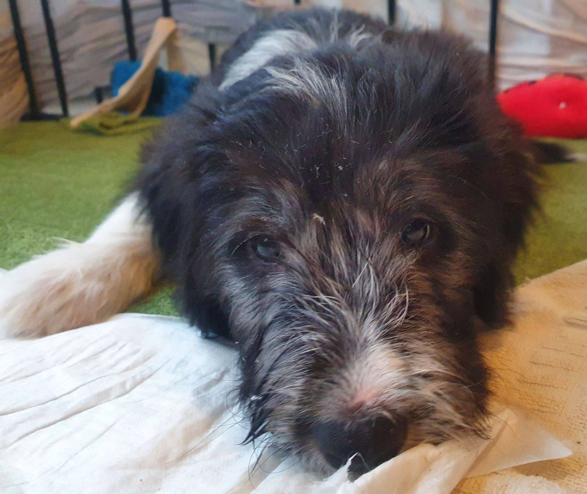 Anders erging es den Welpen. Es war so krass, ihr sicheres Gefüge wurde auseinander gerissen. Sie waren so ein eingespieltes Team, dass ihnen jetzt wirklich was fehlt. Sie haben den ganzen Tag fast nur geschlafen und waren irgendwie niedergeschlagen, dabei hat Blaze ihr bestes gegeben, um sie zum Spielen zu animieren. Aber keine Chance, heute Abend gab es keine Party mehr. Normalerweise drehen sie da nochmal richtig auf. Sie müssen sich erst daran gewöhnen, dass sie nur noch zu 5. sind. Nach jedem gegangenen Welpen hatten sie wohl Angst, wir verlassen sie auch noch. Sobald ich nur aus dem Auslauf raus bin, sind sie alle hinterher und haben gejammert. Es war wirklich herzzerreissend. Da konnt ich gar nicht anders als sie in den Arm nehmen und kuscheln. Sie haben sich dann auch beruhigt.