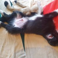 Heute war der große Tag - zum ersten Mal Autofahren, zum ersten Mal zum Tierarzt und zum ersten Mal impfen. Nach anfänglichem Jammern, waren sie im Auto ganz ruhig, bis... auf die Glucksgeräusche. Es hat jeder gekotzt, was ihnen aber den Appetit nicht verschlagen hat. Beim Tierarzt gab es zur Ablenkung Futter, was alle mit Begeisterung gefressen haben. Während dem Chippen/Impfen hat einer von vorne gekrault, einer von hinten und so haben sie den Picks gar nicht mitbekommen. Auf der Rückfahrt dann wieder gleiches Spiel, es kam alles wieder vorne raus :P Wir mussten sie erst mal trocken legen. Alle waren vollgespeichelt, ansonsten aber gut gelaunt. Sie waren jedoch sehr froh, als sie wieder in ihrem gewohnten Auslauf waren. Und...sie hatten Hunger.