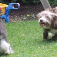 Da sag noch mal einer, dass sich die Hunde nicht wieder erkennen. Sie haben sich gesehen, kurz gestutzt und dann war die Freude gross. Nur lachende Gesichter :-)