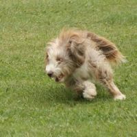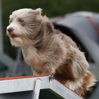 Pünktlich zum Turnierstart hörte der Regen auf und sollte entgegen der Vorhersagen auch nicht wieder kommen. Pebbles war erster Starter im A3 und ging ab wie eine Rakete. Das war mit 4,72 m/sec. glaub ihr schnellster A-Lauf. Die kleine Maus ist einfach nur goldig. Sie gibt immer alles. Bei ihr muss ich mir nie Sorgen um Stangen machen, weil sie es sogar in der Luft noch schafft, die Richtung zu ändern und dabei die Beine anzuziehen. Sie ist ein absoluter Verlasshund. Jedenfalls schafften wir den ersten Nuller und sind dann am Ende auf einem guten dritten Platz (von 27) gelandet.