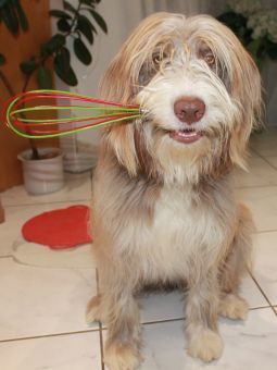 Um erst einmal die korrekten Wechsel aufzubauen, arbeitet man ohne Distanz, um besser korrigieren zu können. Der Tisch (oder bei uns die Palette) dient dazu, dass der Hund nicht nach vorne oder hinten ausweichen kann. Es erleichtert ihm die richtige Ausführung und er lernt, die Balance zu halten. Für einen jungen Hund ist das eine sehr schwierige Übung. Erstens muss er sich sehr konzentrieren und zweitens haben sie meist noch nicht die erforderliche Muskulatur.