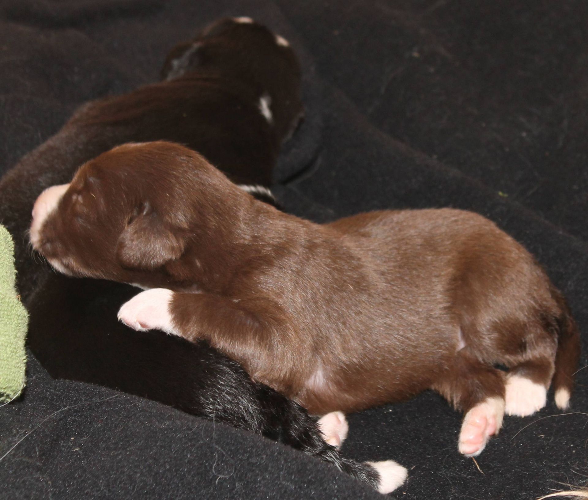 Nachdem mich Pebbles seit 4 Nächten ungefähr dreimal weckt (schön im Abstand von zwei Stunden :D ), hab ich gestern mehr oder weniger den ganzen Tag verschlafen ;-) Easy darf inzwischen in das Welpenzimmer aber immer noch auf Abstand. Das Bett ist die Grenze :D Und wehe sie guckt in Richtung Welpen. Gefällt der Mama gar nicht :-) Ausserhalb verstehen sich die Beiden aber nach wie vor super. Pebbles freut sich jeden Morgen riesig, wenn sie Easy sieht :-) Ach ja... Anthony hat die 1.000er Marke über Nacht geknackt :D