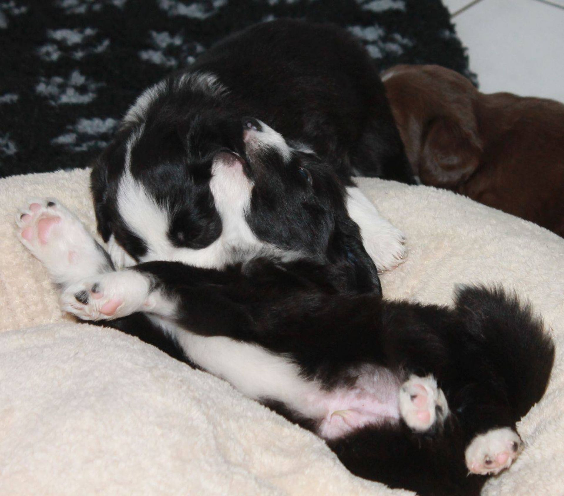 Heute war die Familie von Ylvie da. Die Welpies und Pebbles fanden es super. Endlich genug Aufmerksamkeit für alle :D Danach waren sie aber auch echt platt und haben vier Stunden durchgeschlafen.