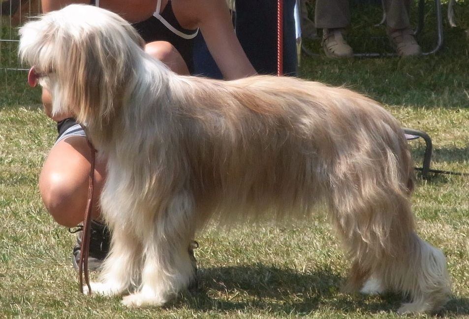 sehr schmal aufgebaute Hündinentsprechender Kopfgute Augenentsprechender Halsetwas weicher Rückenuntere Linie nicht ganz korrektWinkelungen sollten korrekter seinsehr wenige Haarein der Bewegung hinten etwas eng, vorne kreuzend