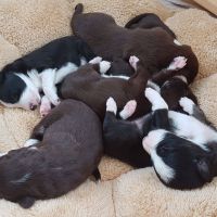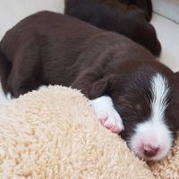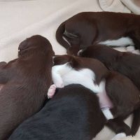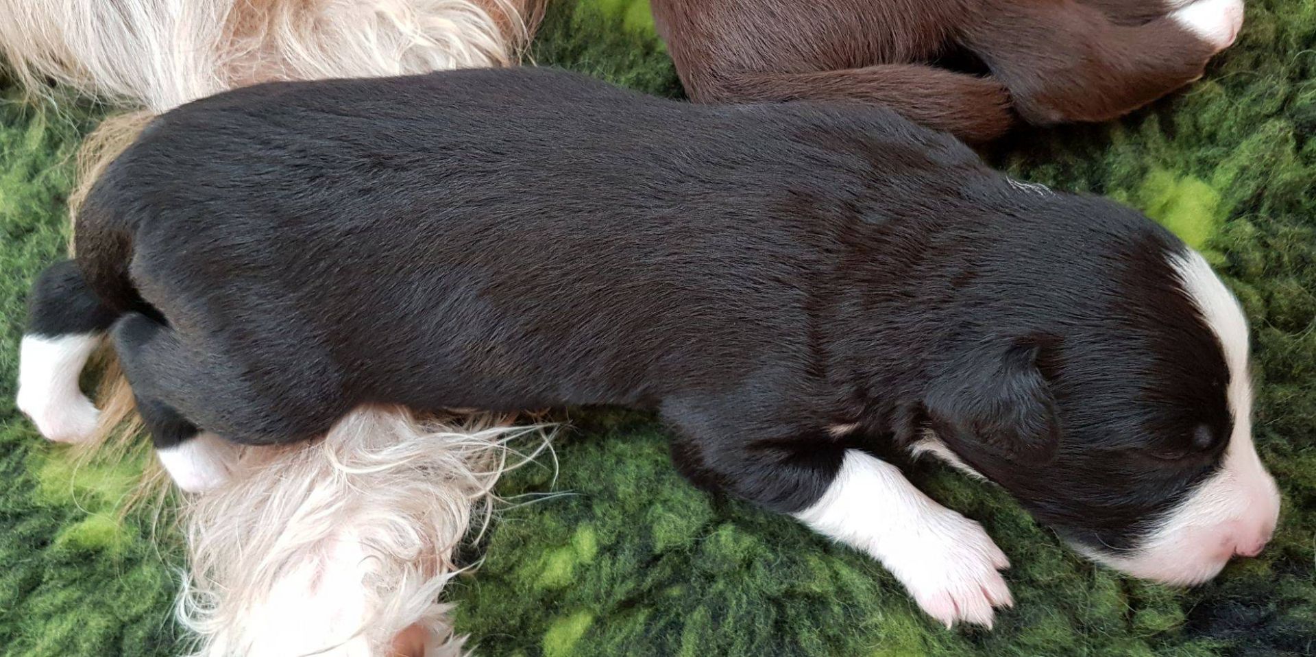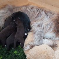 Es ist immer wieder auf´s Neue faszinierend, was wir eigentlich von den Hunden lernen können. Mr. Bigbang, der mit Abstand schwerste in dem Wurf, wollte trinken. Hat gemotzt, gejammert und gebohrt und was macht Aine? Legt sich gerade in die andere Richtung. Mein Herz hat geblutet, den armen Kerl so jammern zu sehen aber ich habe mich nicht eingemischt. Er hat noch ein bisschen gejammert und dann Ruhe gegeben. Aine ist so eine sichere Hündin, sie wird schon einen Grund dafür haben. Vielleicht teilt sie so die Nahrung zu, denn nachdem alle satt waren, durfte er anstandslos trinken. Sie hat ihm sogar Platz gemacht. Was lernen wir daraus? Nicht immer der, der am lautesten schreit, kommt ans Ziel. Ich hätte wahrscheinlich viel früher nachgegeben :-)