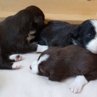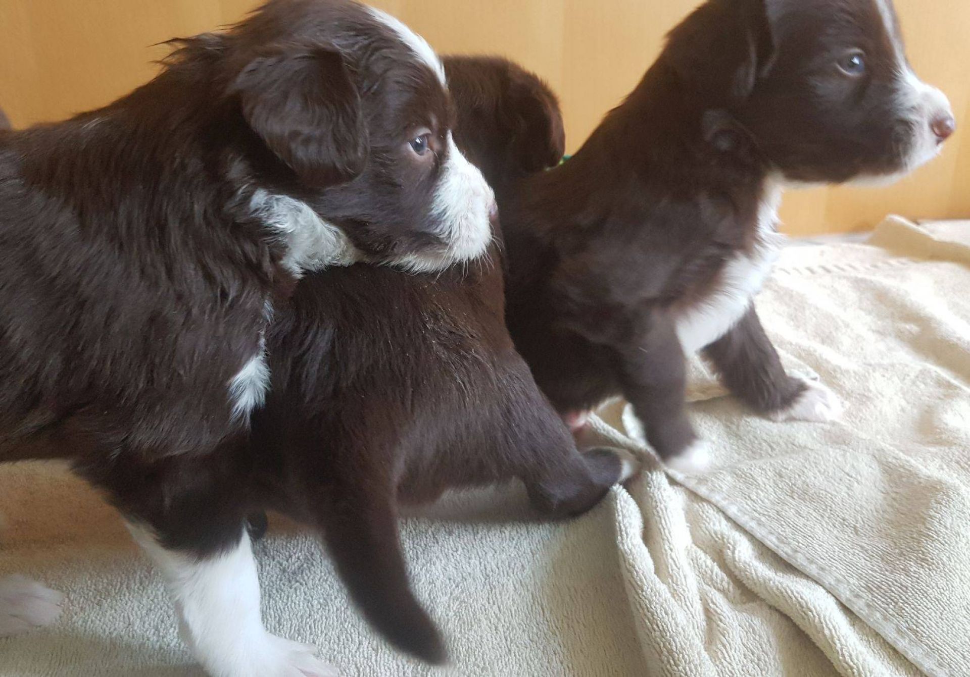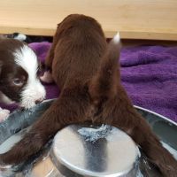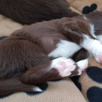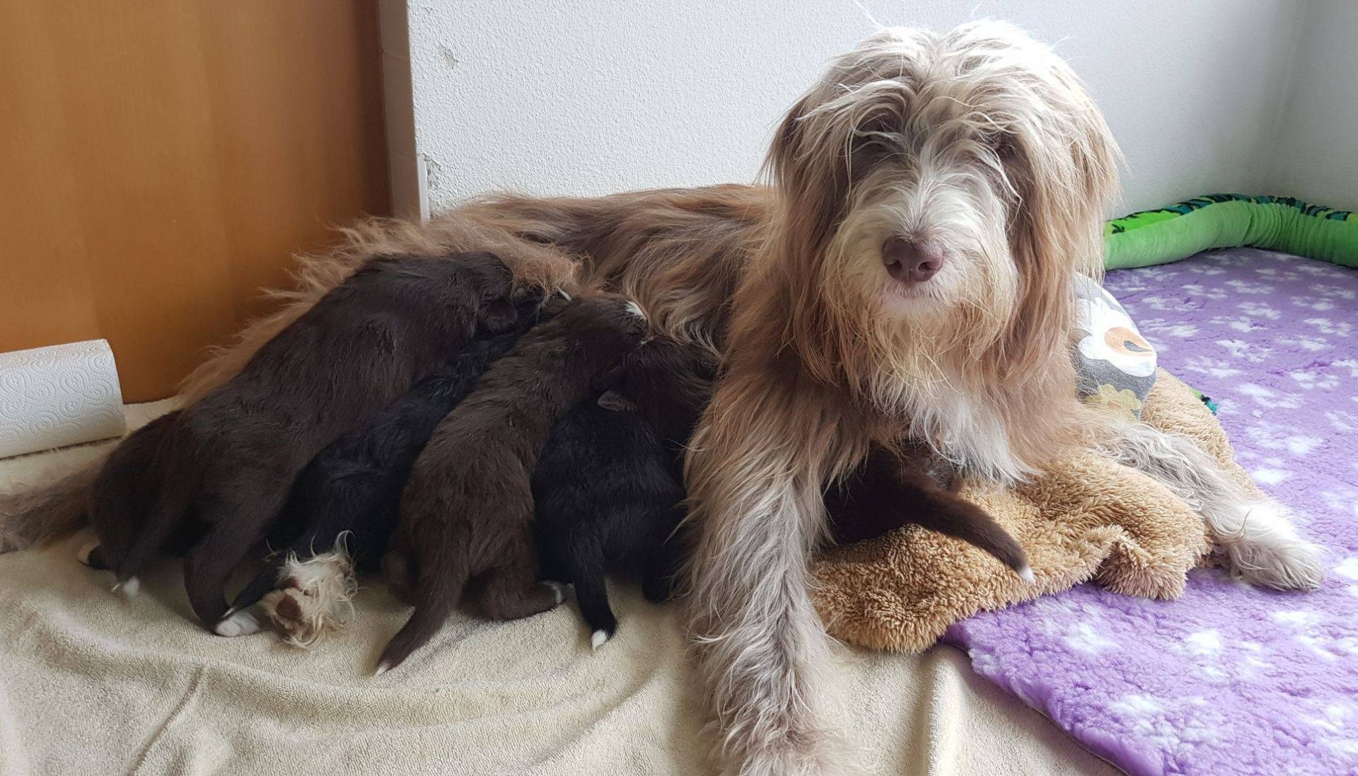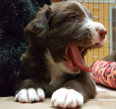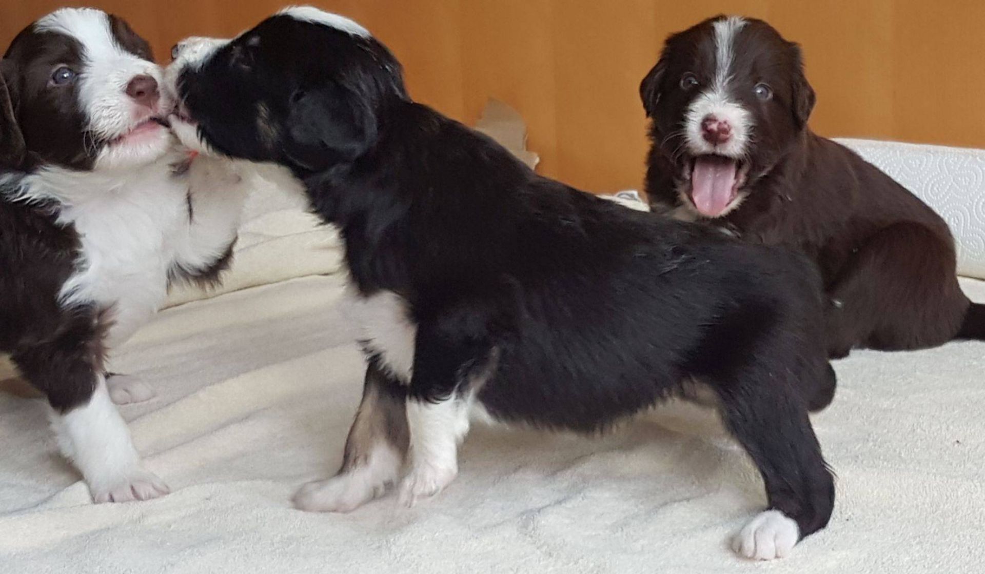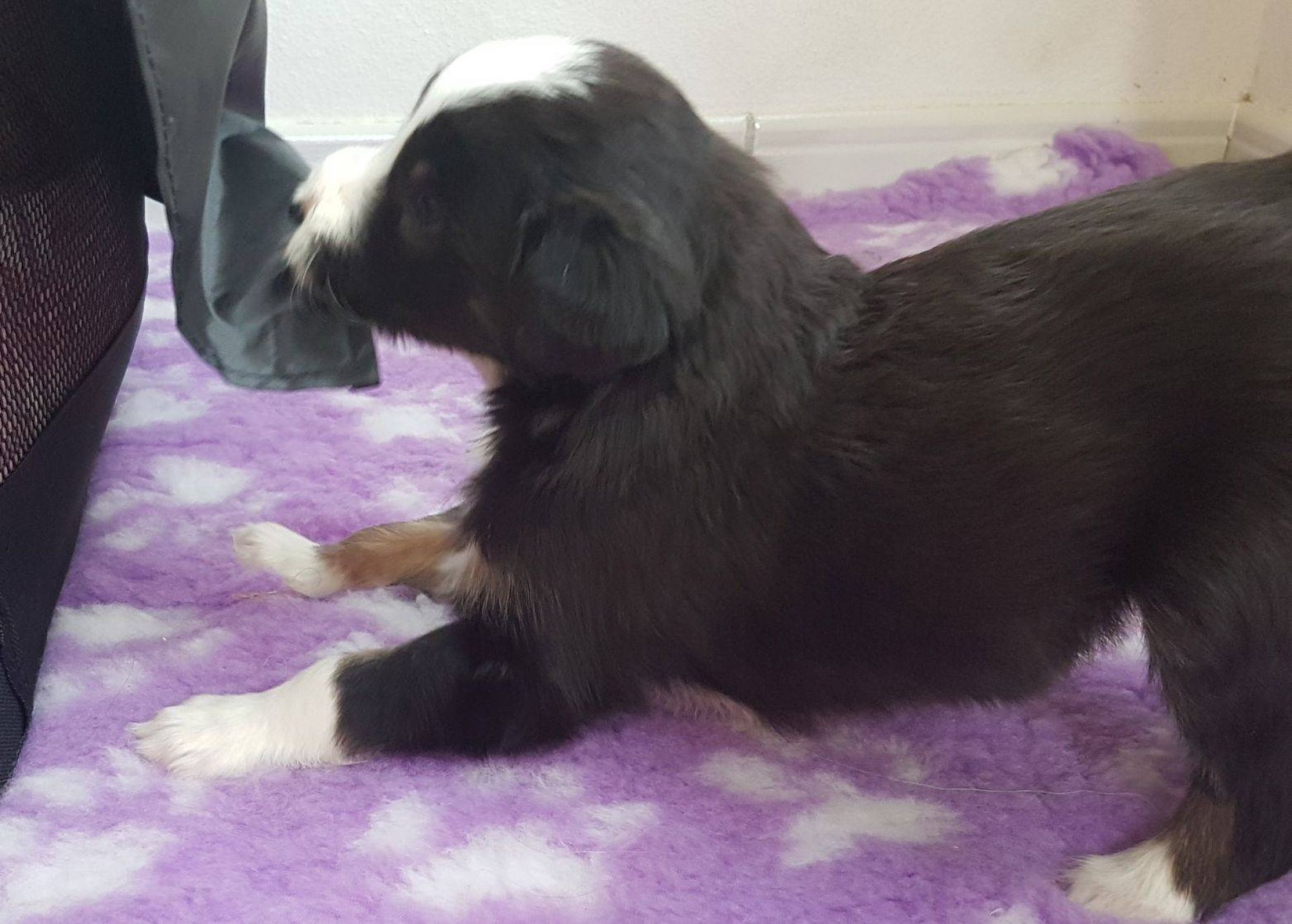 Heute ging es zum ersten Mal in den Auslauf im Esszimmer, den wir zunächst vorsorglich halbiert haben, da er im Vergleich zur Wurfbox riesig ist. Das Geschrei war auch anfänglich sehr groß. Die Nachbarn haben bestimmt gedacht, jetzt haben die auch noch einen Vogel bzw. eher eine Vogelschar. Sie haben in den höchsten Tönen gezwitschert. Auch Aine war kurz überfordert, weil sie am liebsten alle Babies um sich gehabt hätte, die aber alle in eine andere Richtung losgewandert sind. Alle waren dann sehr glücklich als sie sich wieder gefunden haben. Jetzt schlafen sie ganz friedlich. Witzigerweise komplett am anderen Ende als der A-Wurf :-)