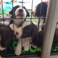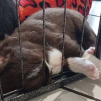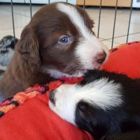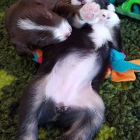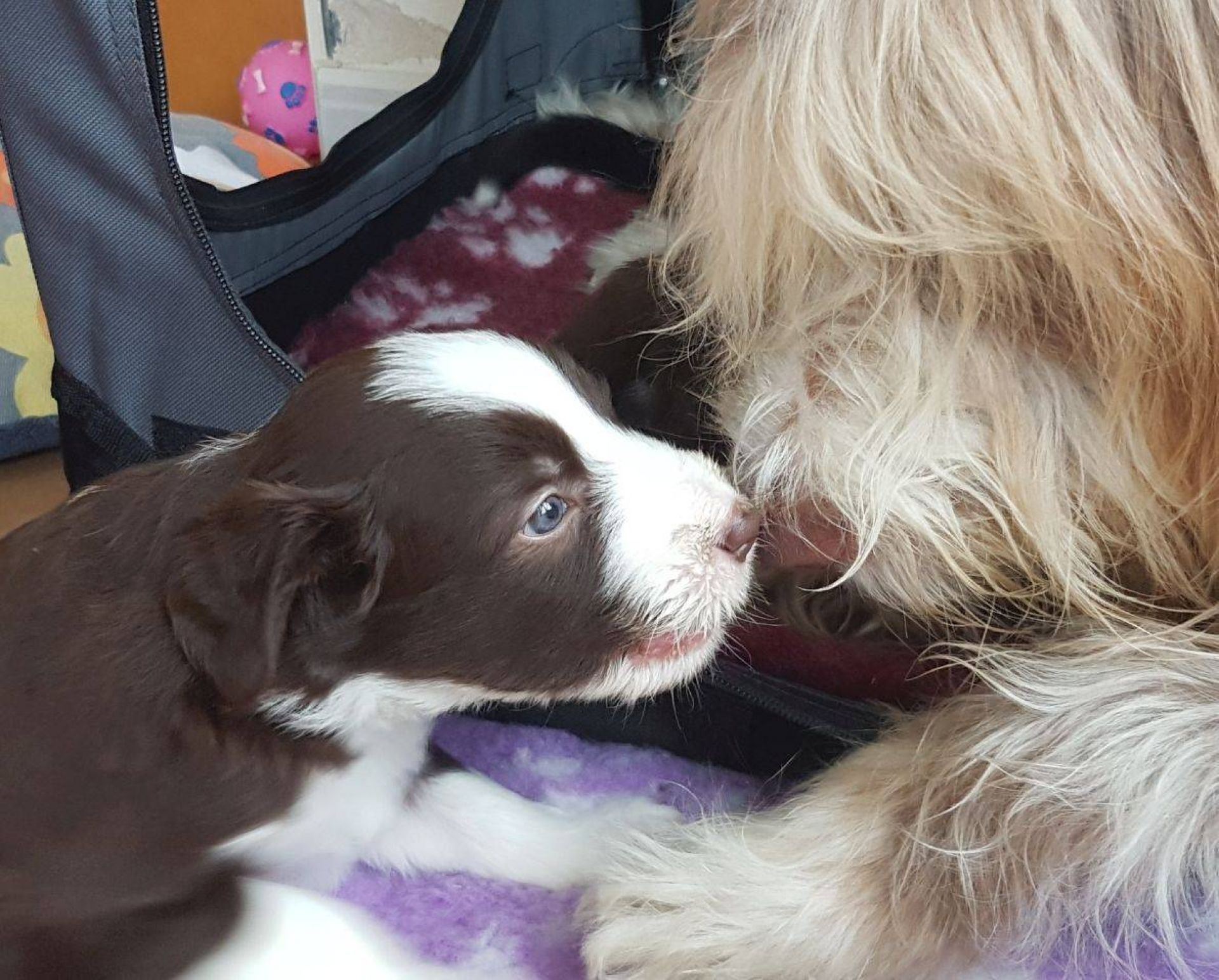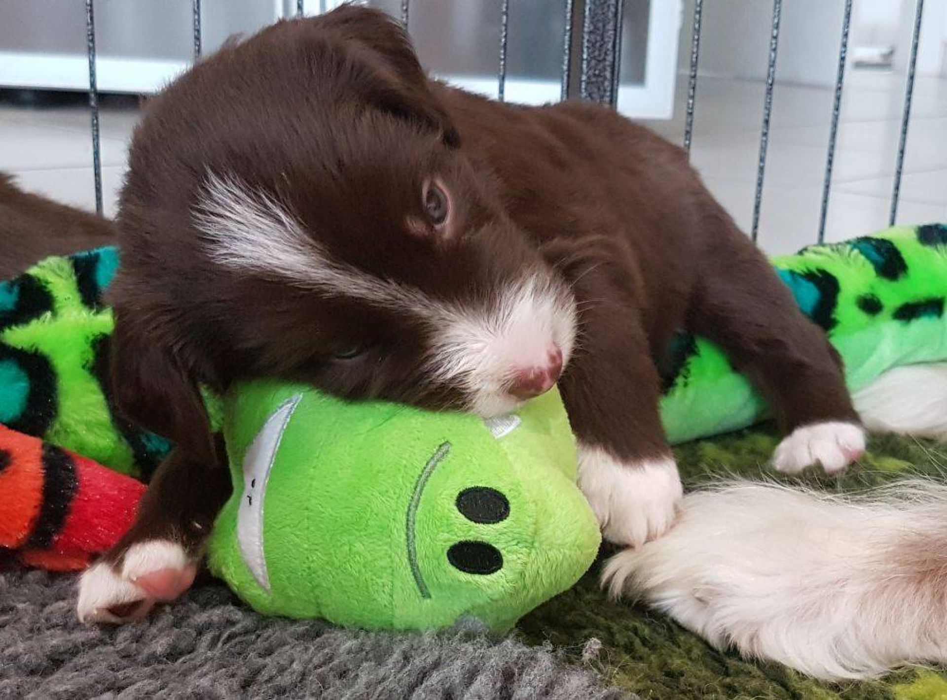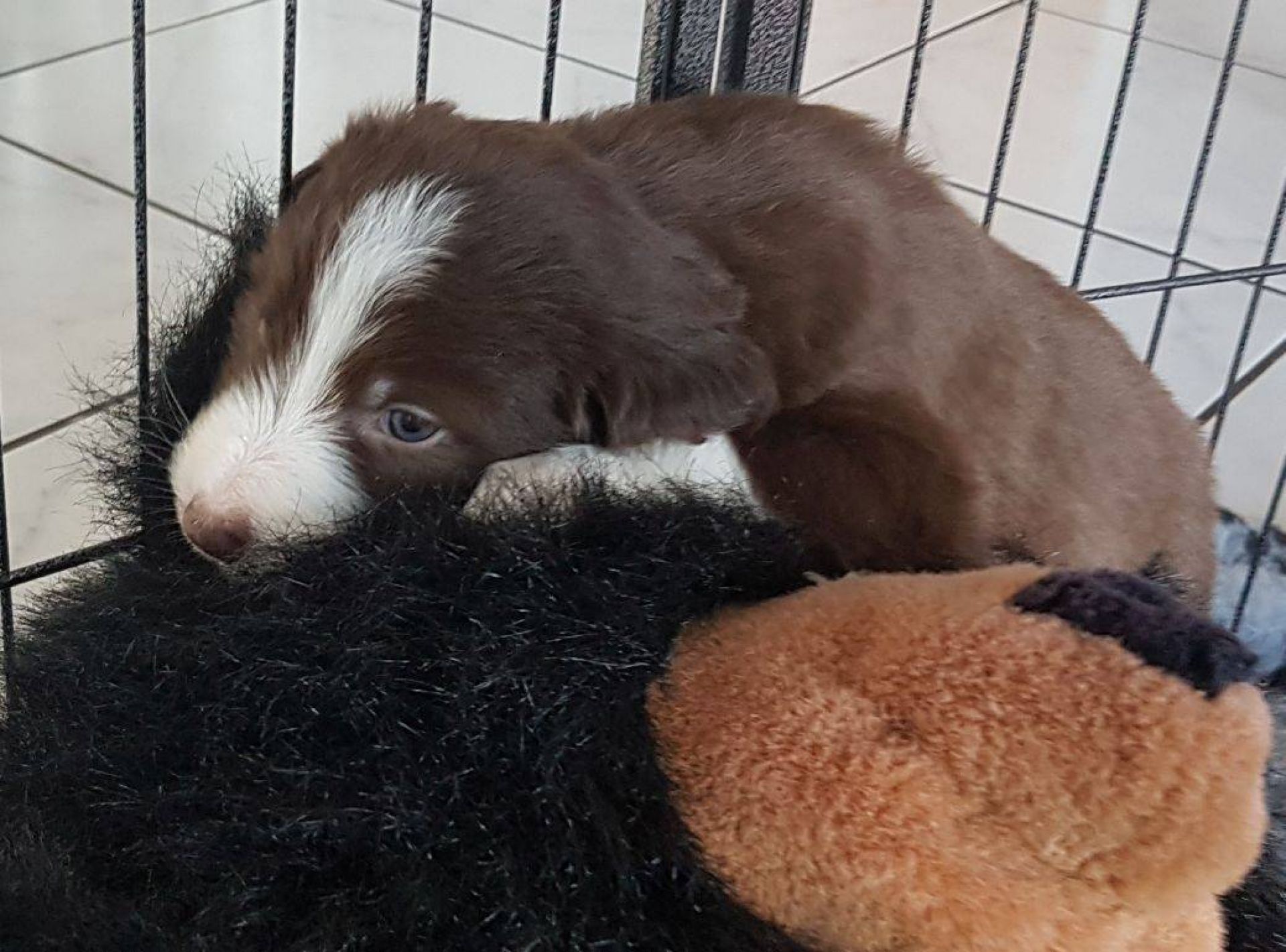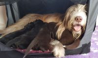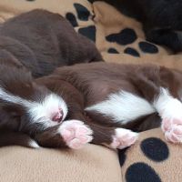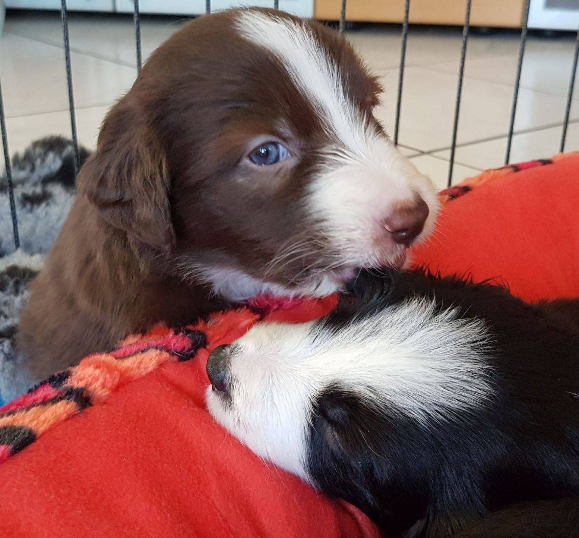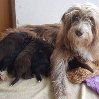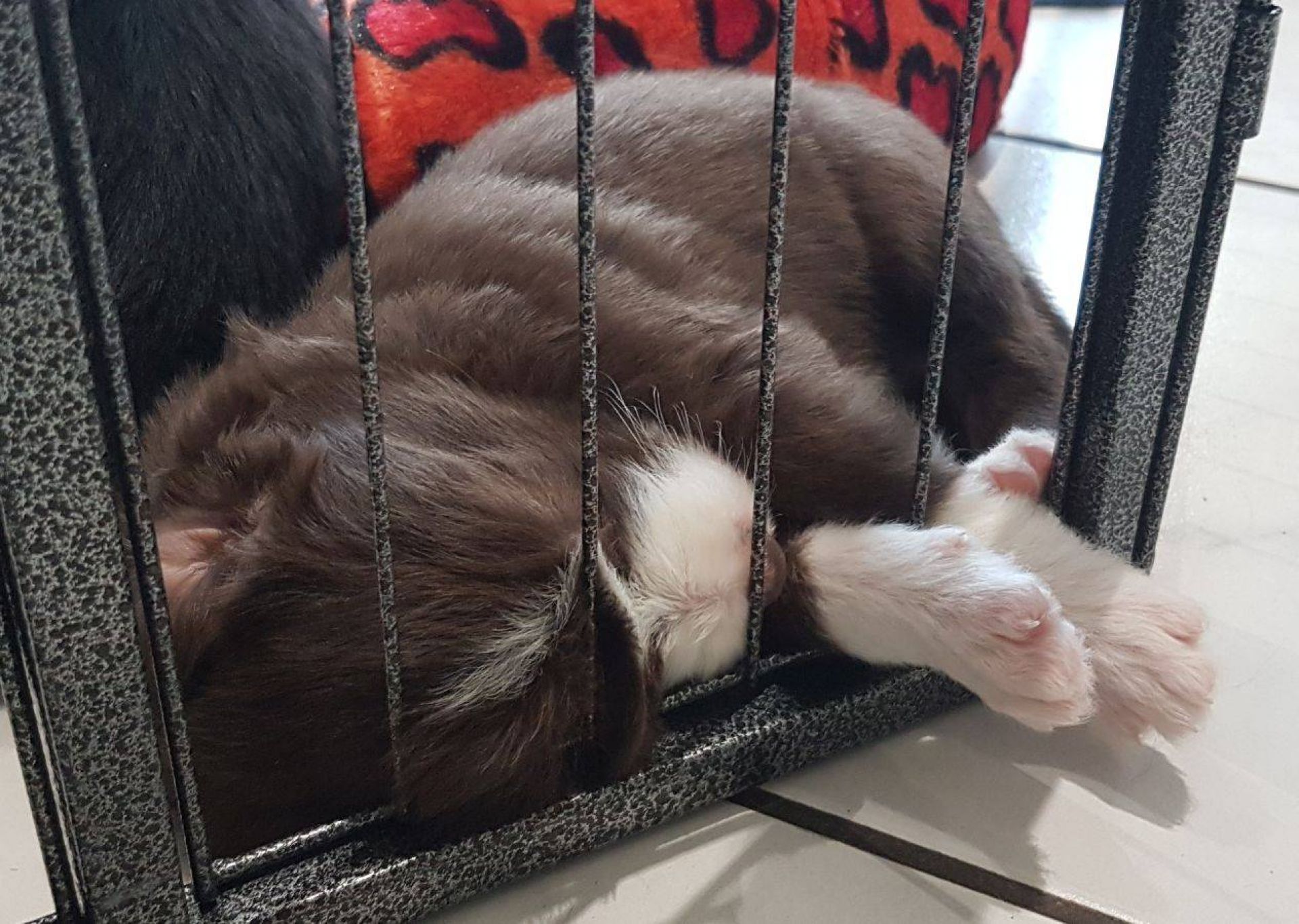 Heute ging es zum ersten Mal in den Auslauf im Esszimmer, den wir zunächst vorsorglich halbiert haben, da er im Vergleich zur Wurfbox riesig ist. Das Geschrei war auch anfänglich sehr groß. Die Nachbarn haben bestimmt gedacht, jetzt haben die auch noch einen Vogel bzw. eher eine Vogelschar. Sie haben in den höchsten Tönen gezwitschert. Auch Aine war kurz überfordert, weil sie am liebsten alle Babies um sich gehabt hätte, die aber alle in eine andere Richtung losgewandert sind. Alle waren dann sehr glücklich als sie sich wieder gefunden haben. Jetzt schlafen sie ganz friedlich. Witzigerweise komplett am anderen Ende als der A-Wurf :-)